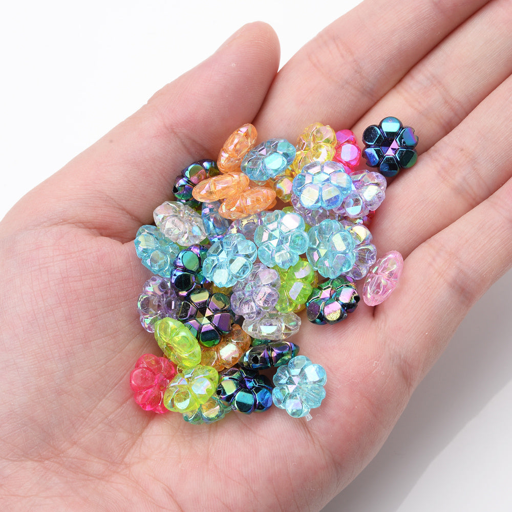 Create beautiful jewelry with this set of 50 multicolor acrylic flower beads. Perfect for bracelets, earrings, and other DIY projects at home.