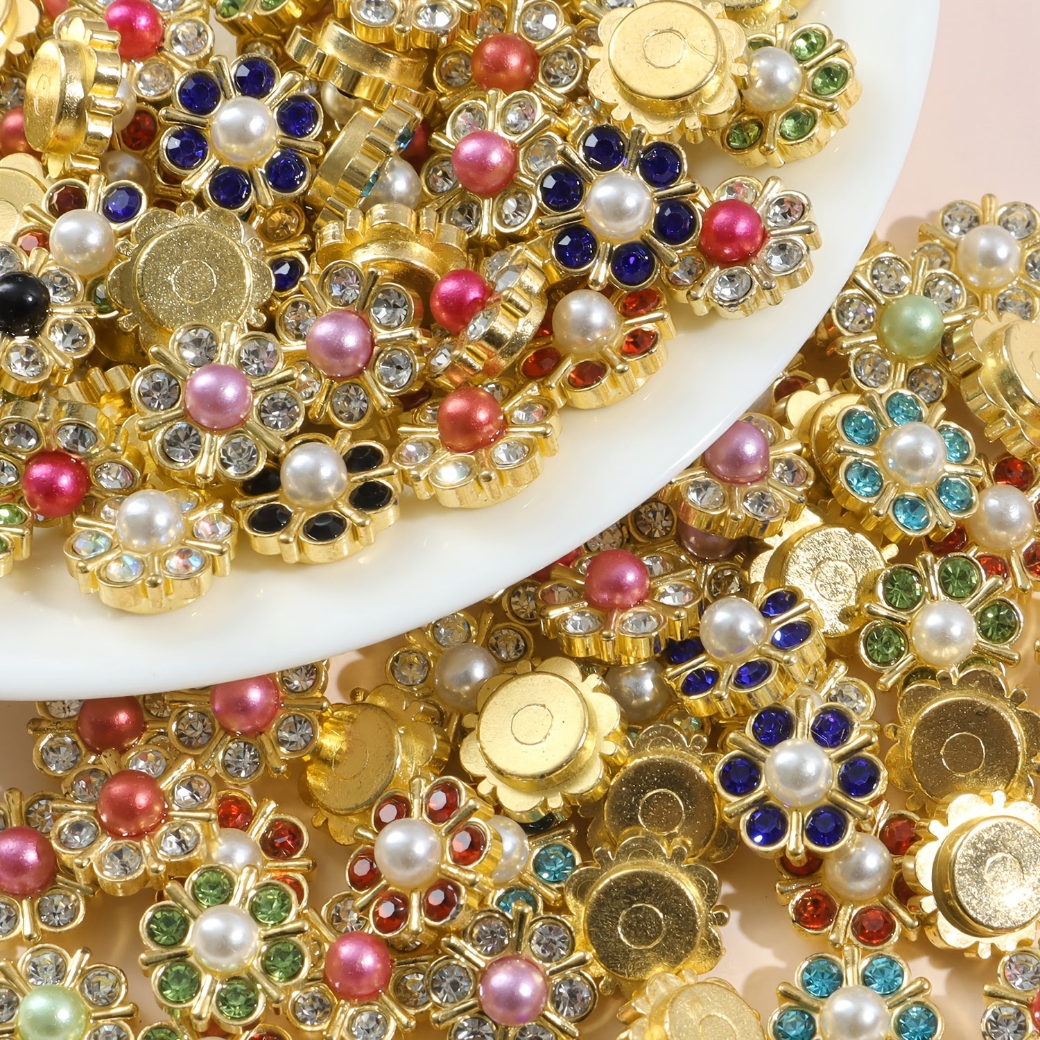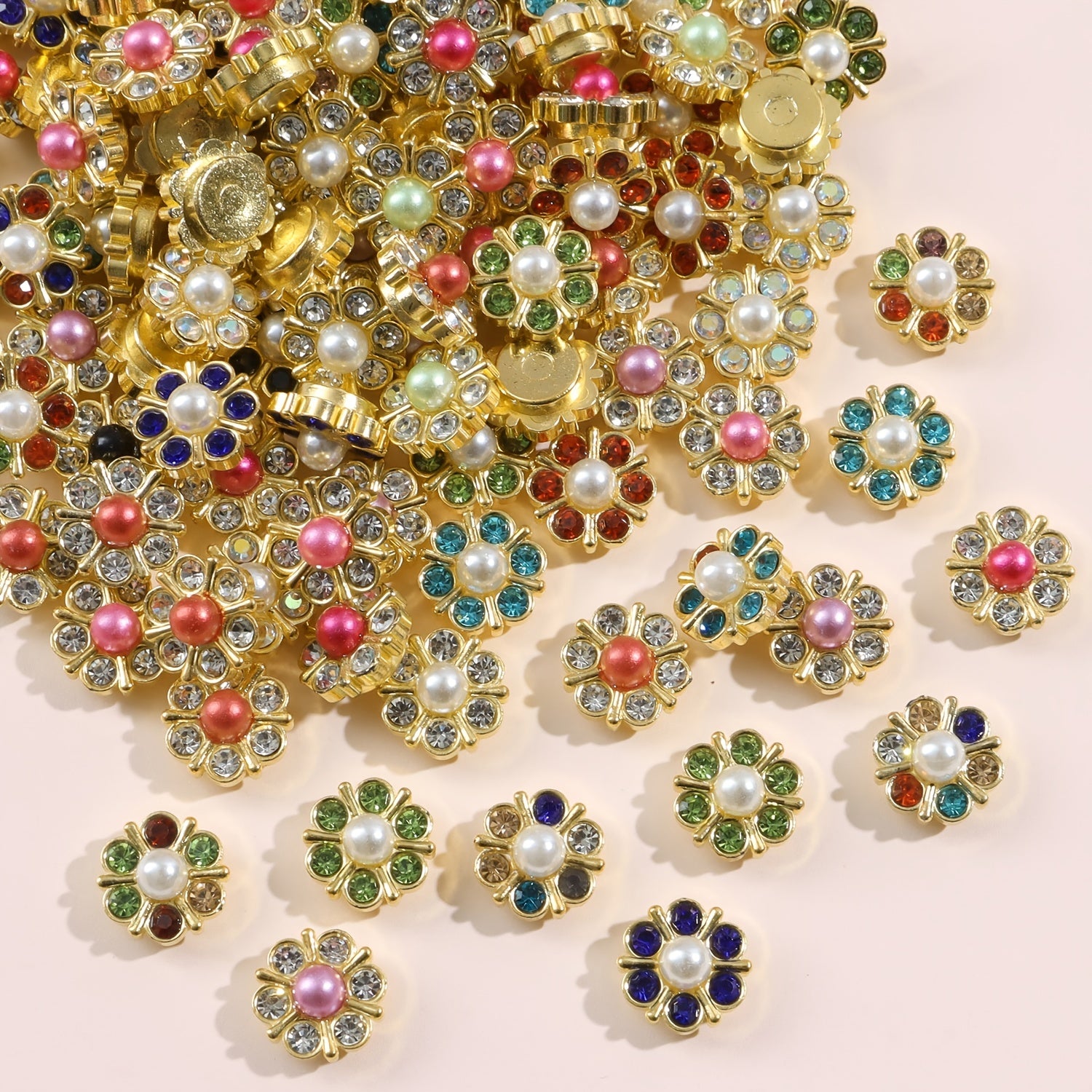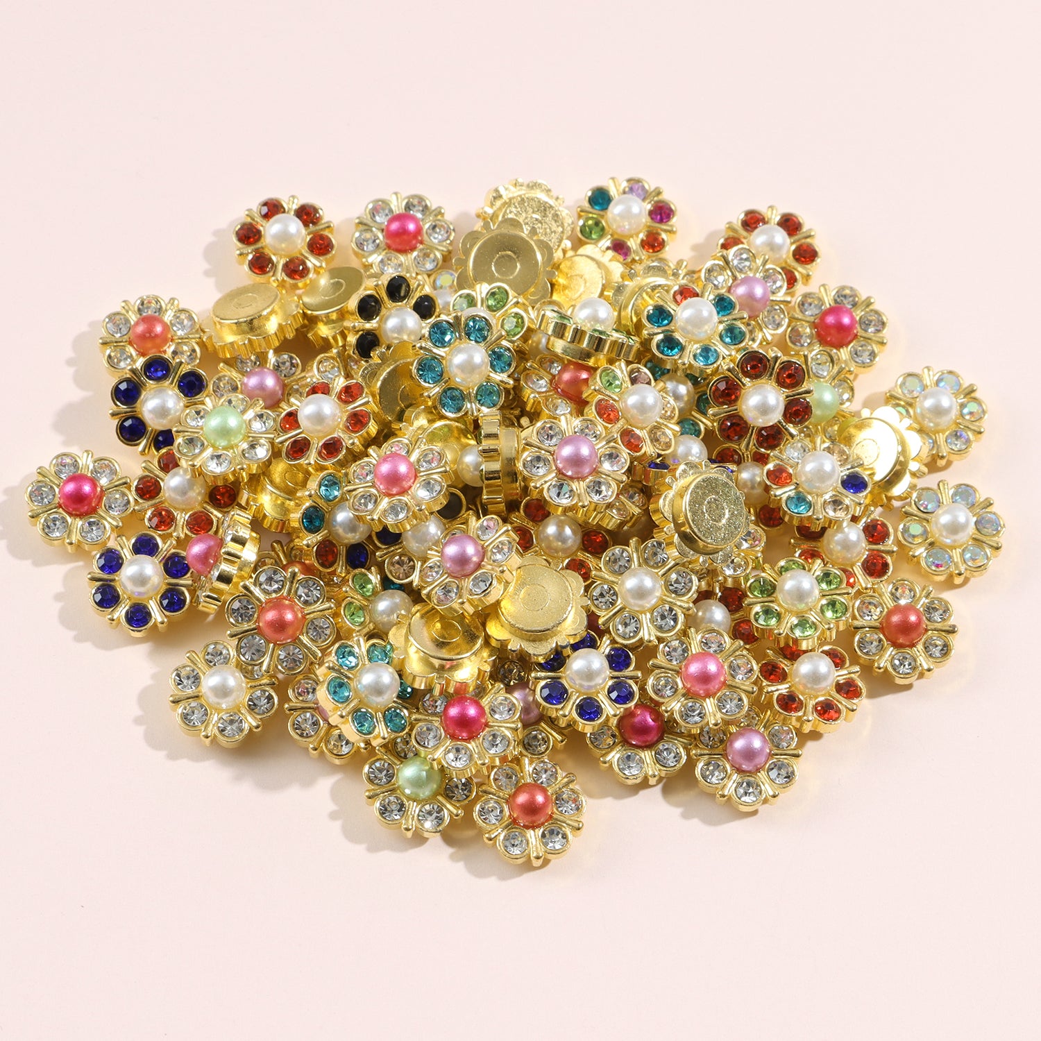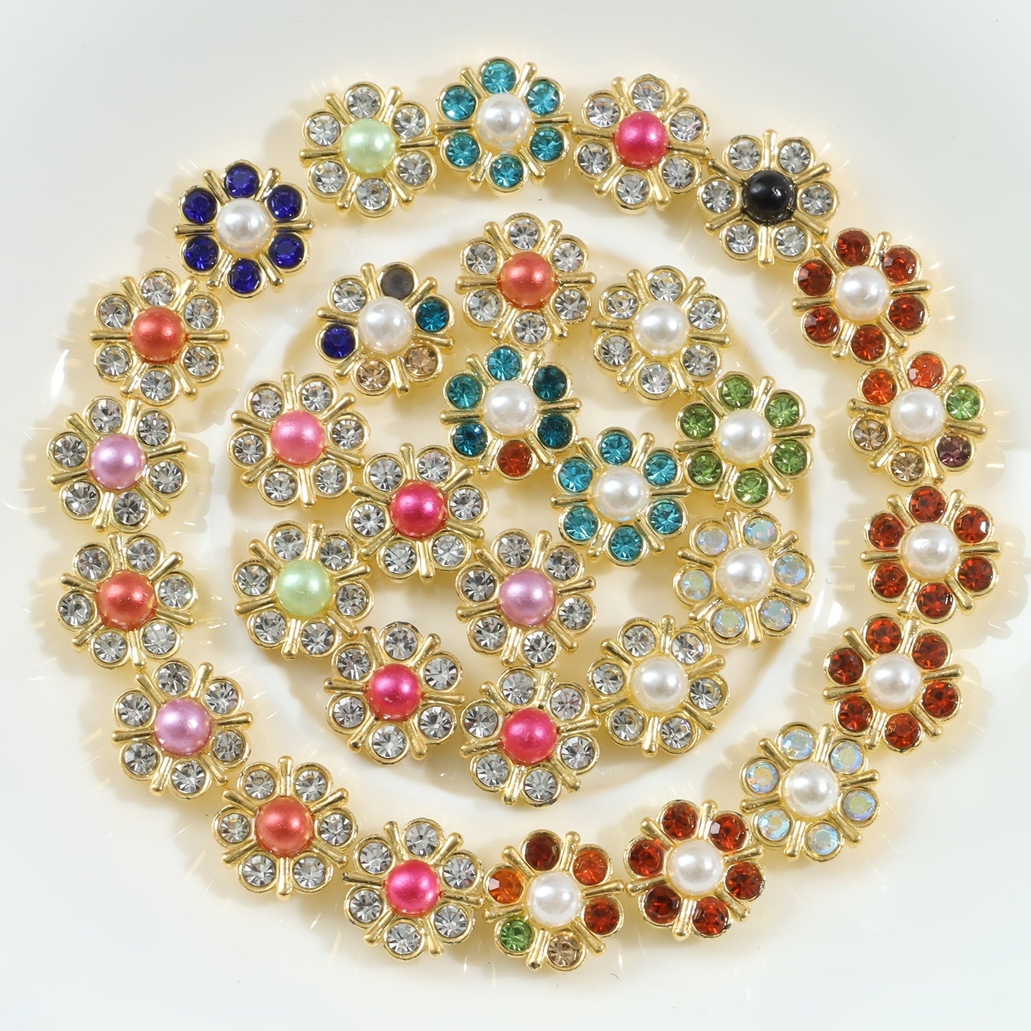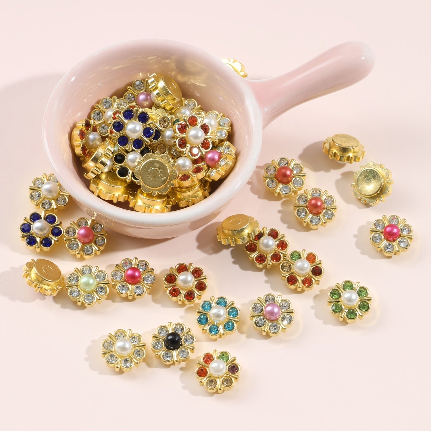Enhance your craft projects with these 50pcs pearl glass flower artificial diamond beads. These small full diamond plastic flowers are perfect for adding a touch of sparkle to your creations.