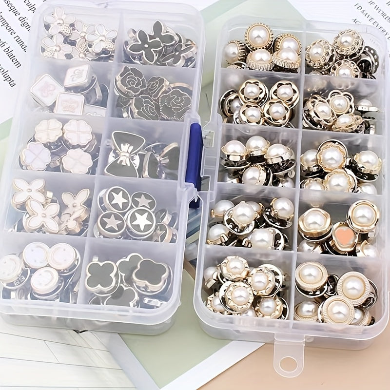 Enhance your clothing with this pack of 50 plastic and metal buttons. Perfect for DIY projects and decorations.