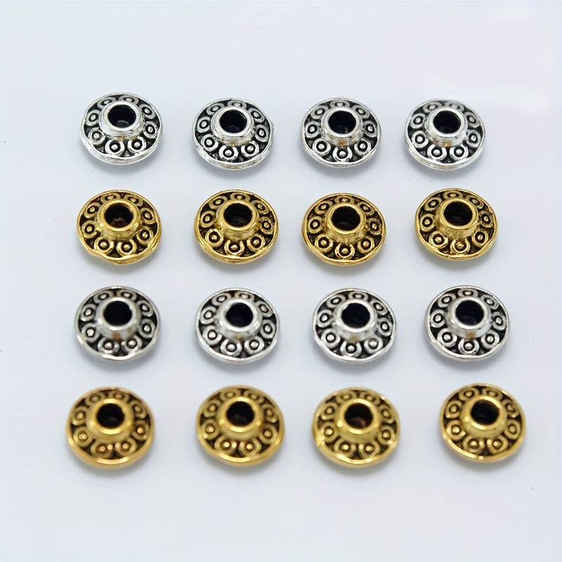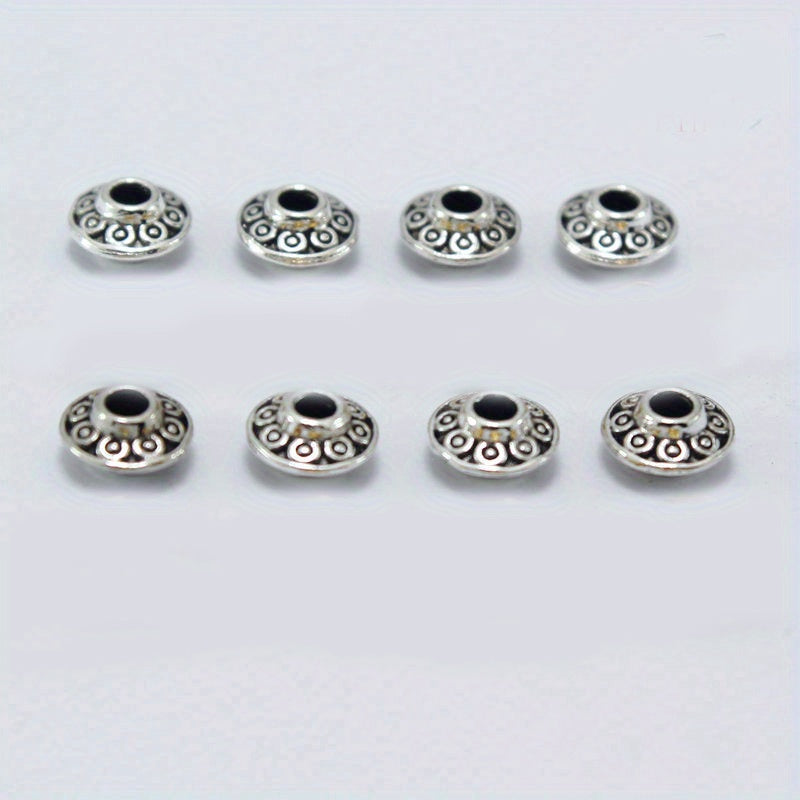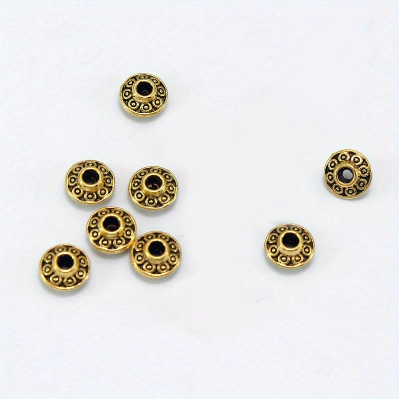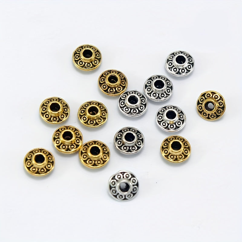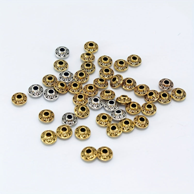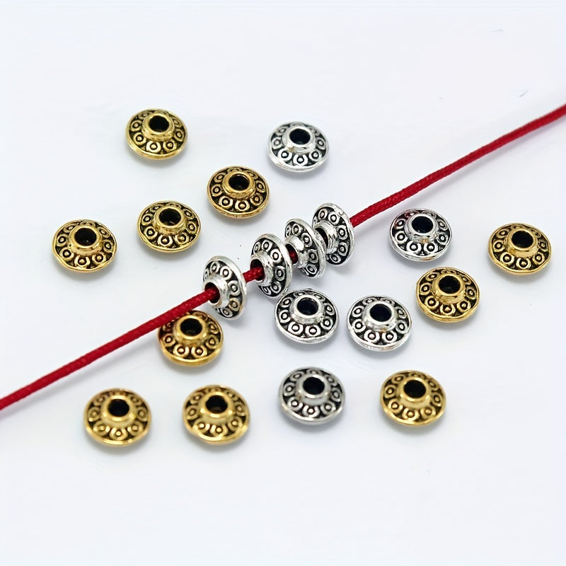 Enhance your jewelry projects with these 6mm retro alloy flat beads that resemble flying saucers. Perfect for creating unique jewelry pieces.