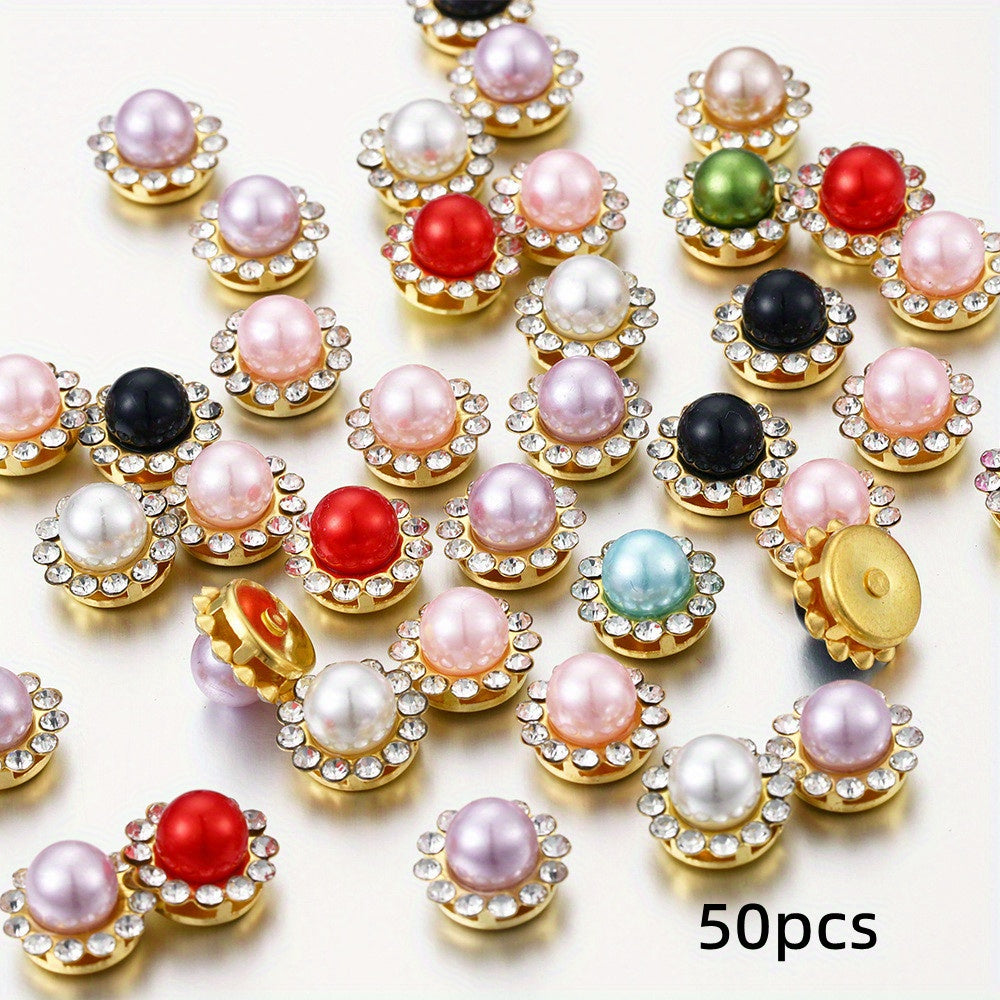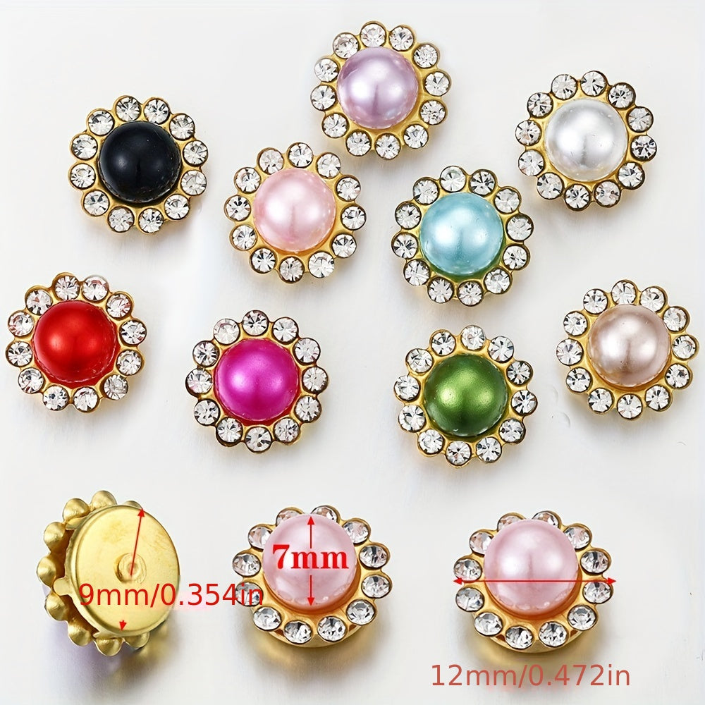 Add a touch of sparkle with these golden sunflower brooch buttons featuring rhinestones and faux pearls. Perfect for DIY projects on hats, clothes, shoes, and more.