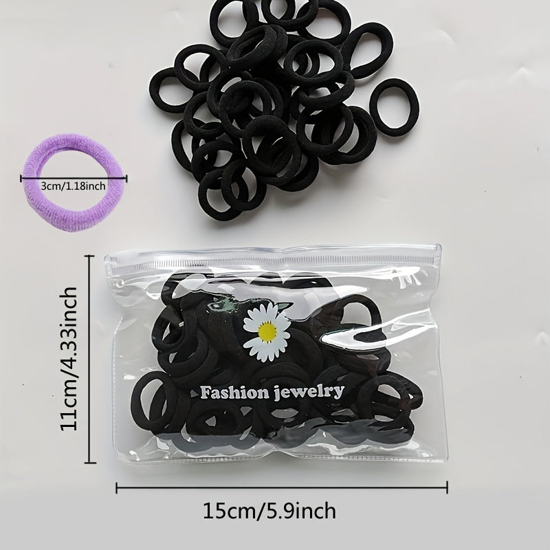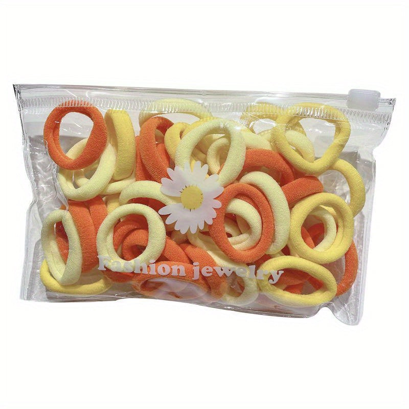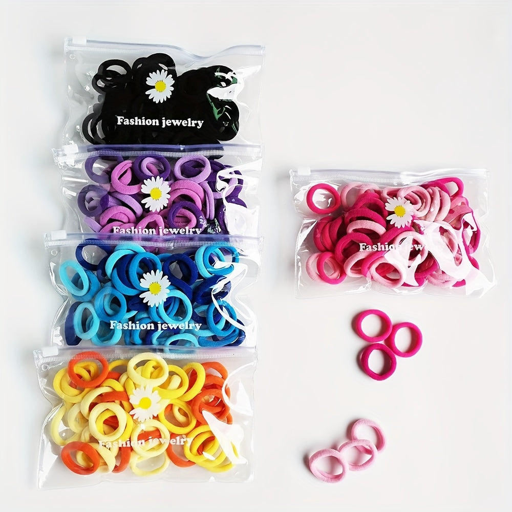 Keep your hair stylish with this set of 50 small hair rings in a variety of colors. Store them in the included daisy storage bag for convenient access.