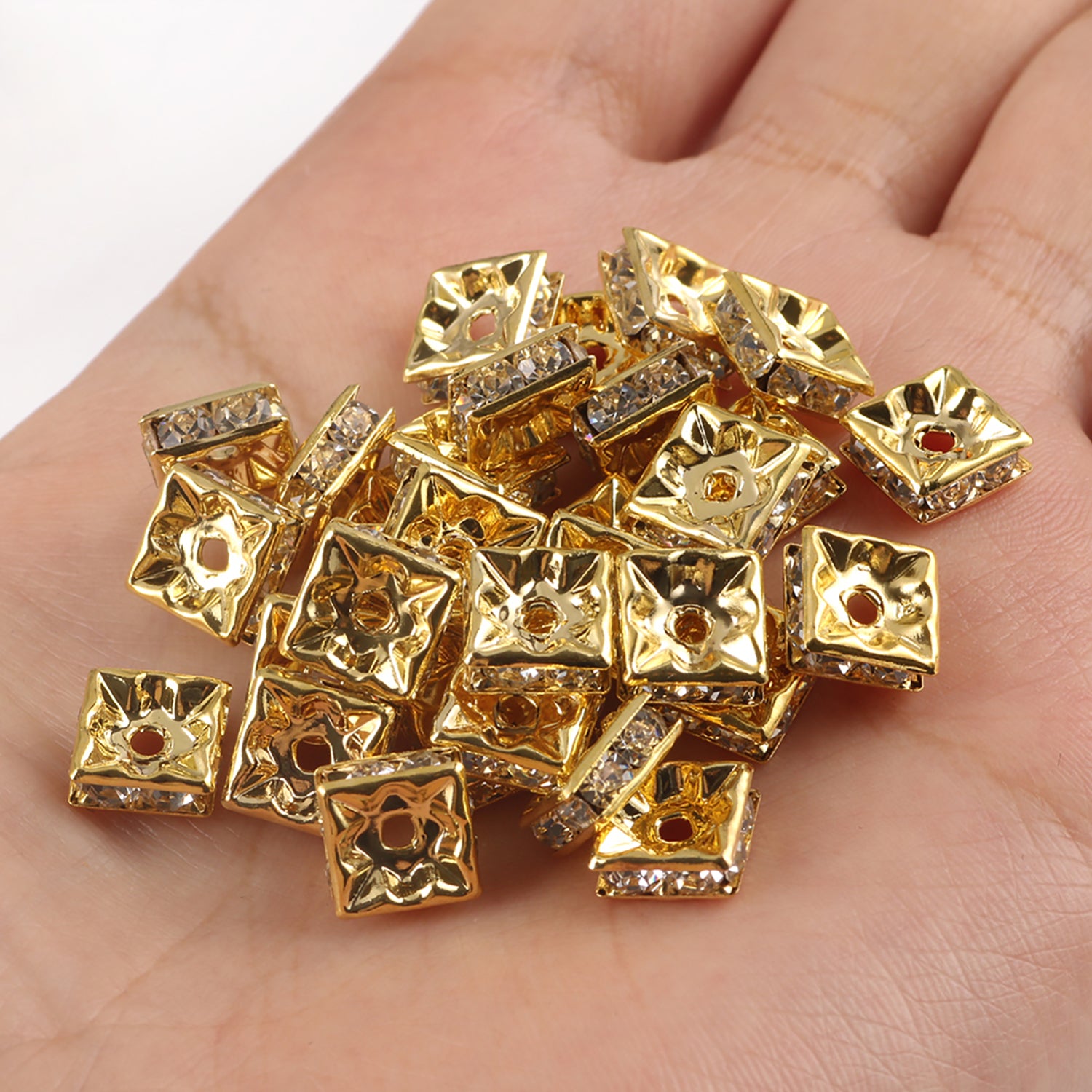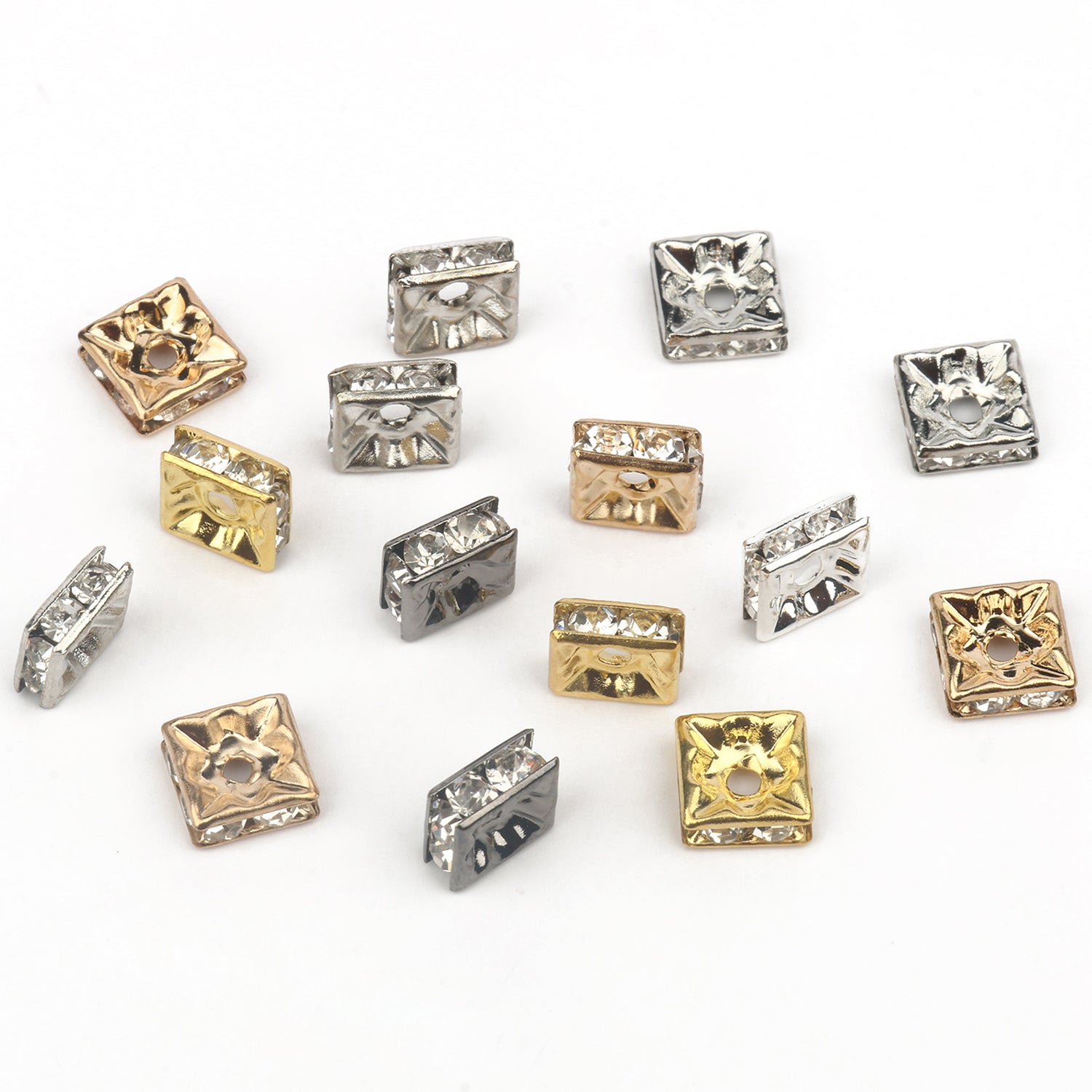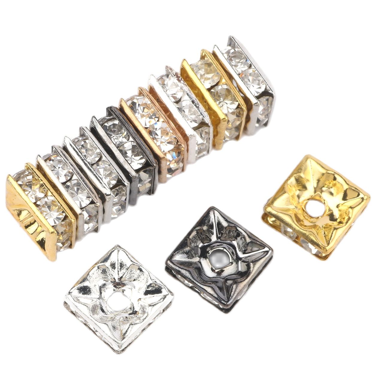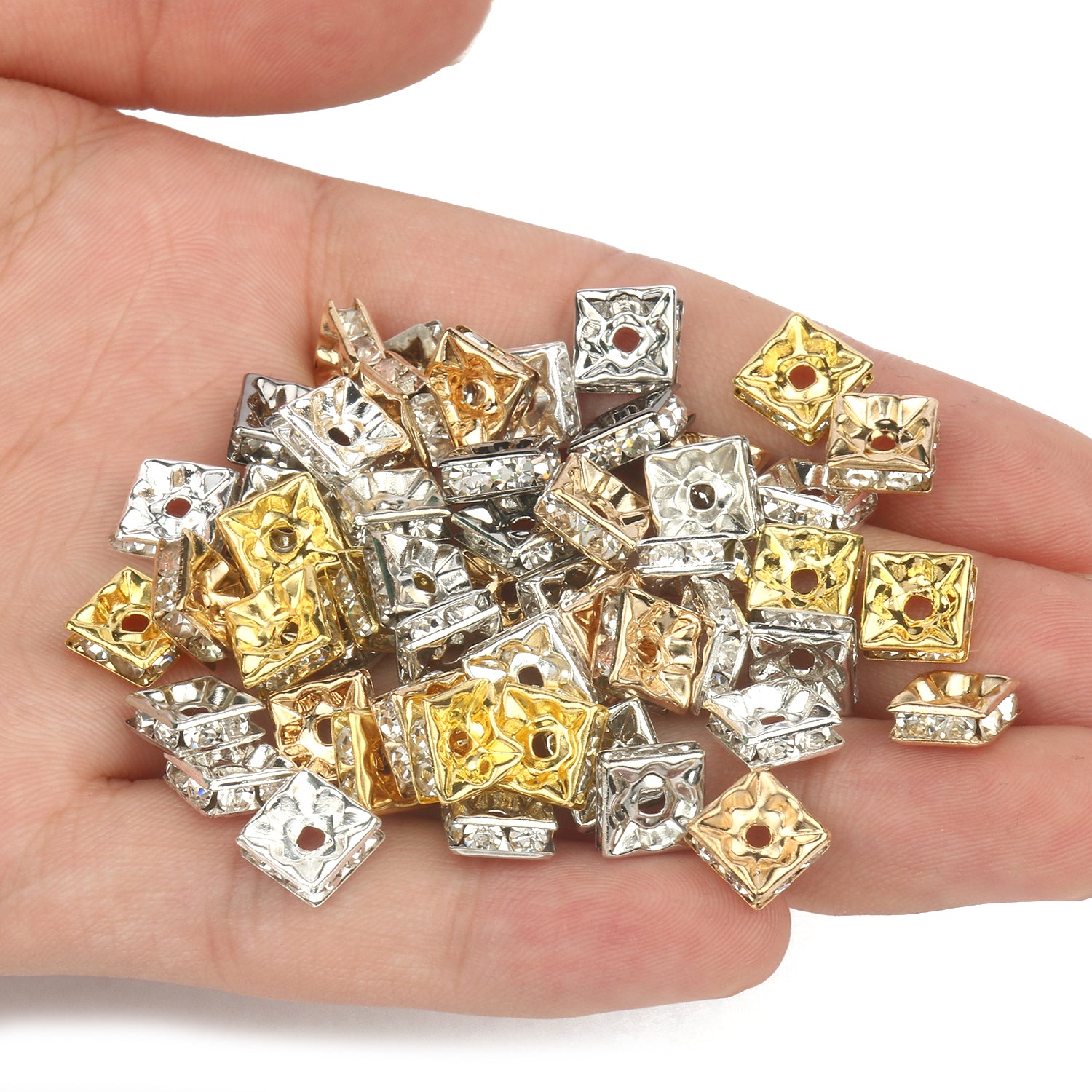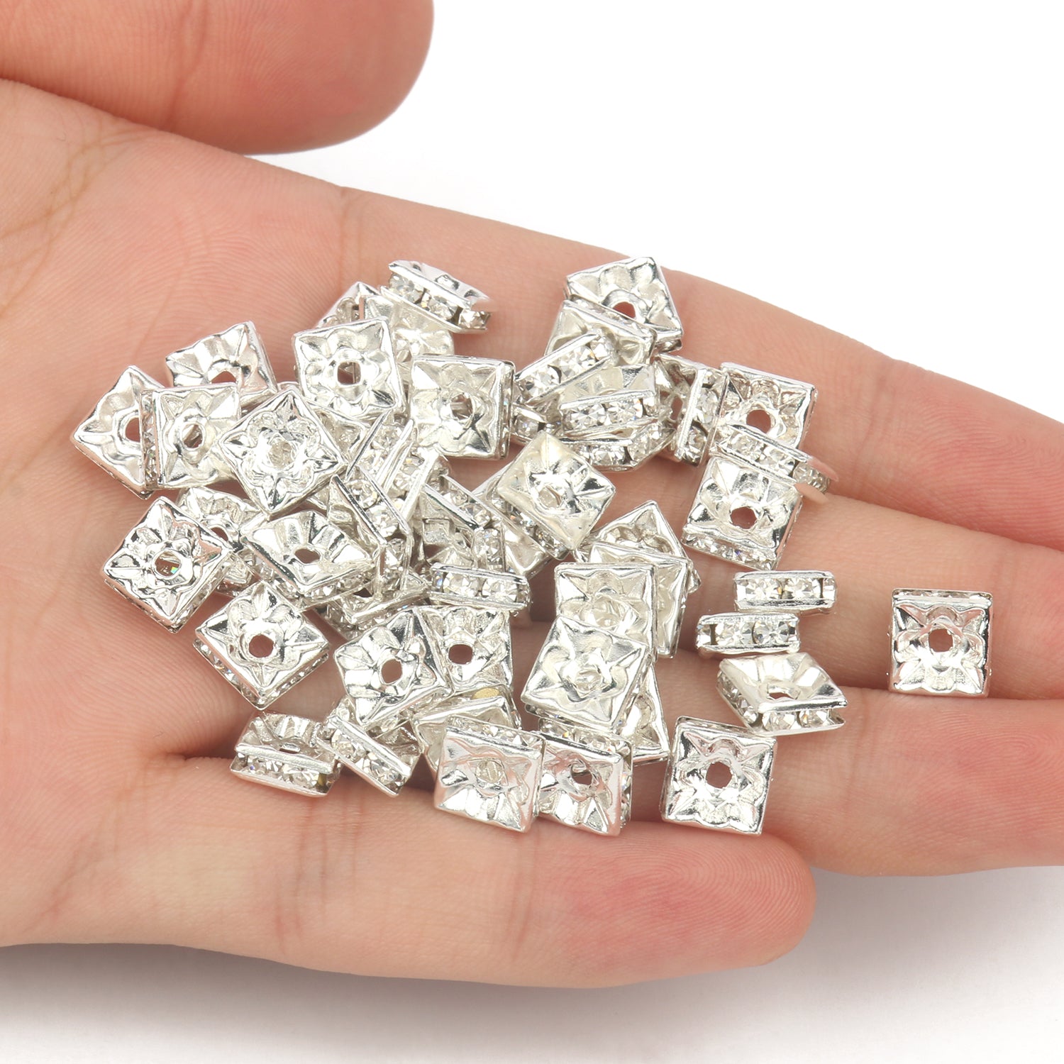 Add some sparkle to your jewelry projects with this set of 50 square rhinestone rondelet crystal spacer beads. These beads are perfect for creating bracelets, necklaces, and other accessories.