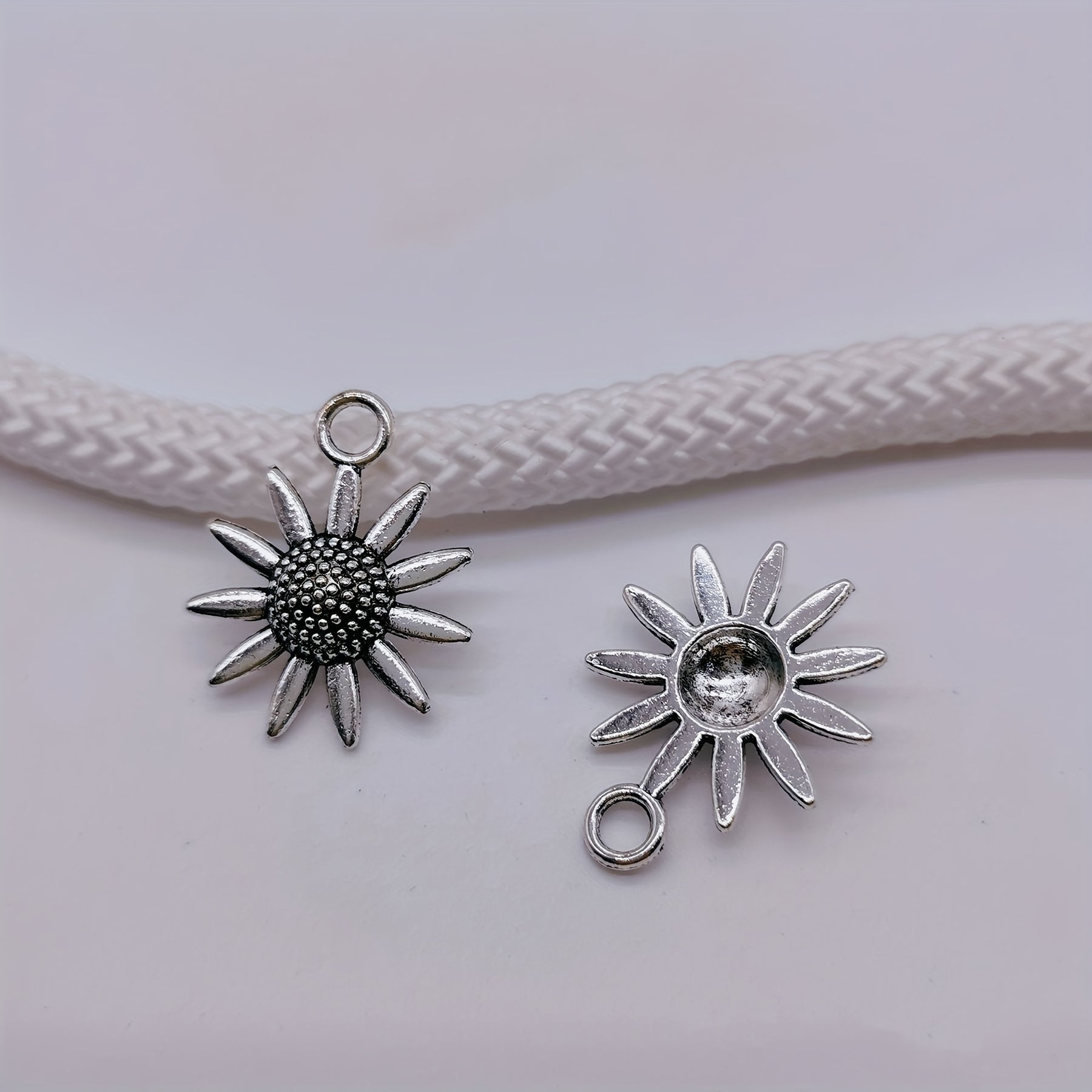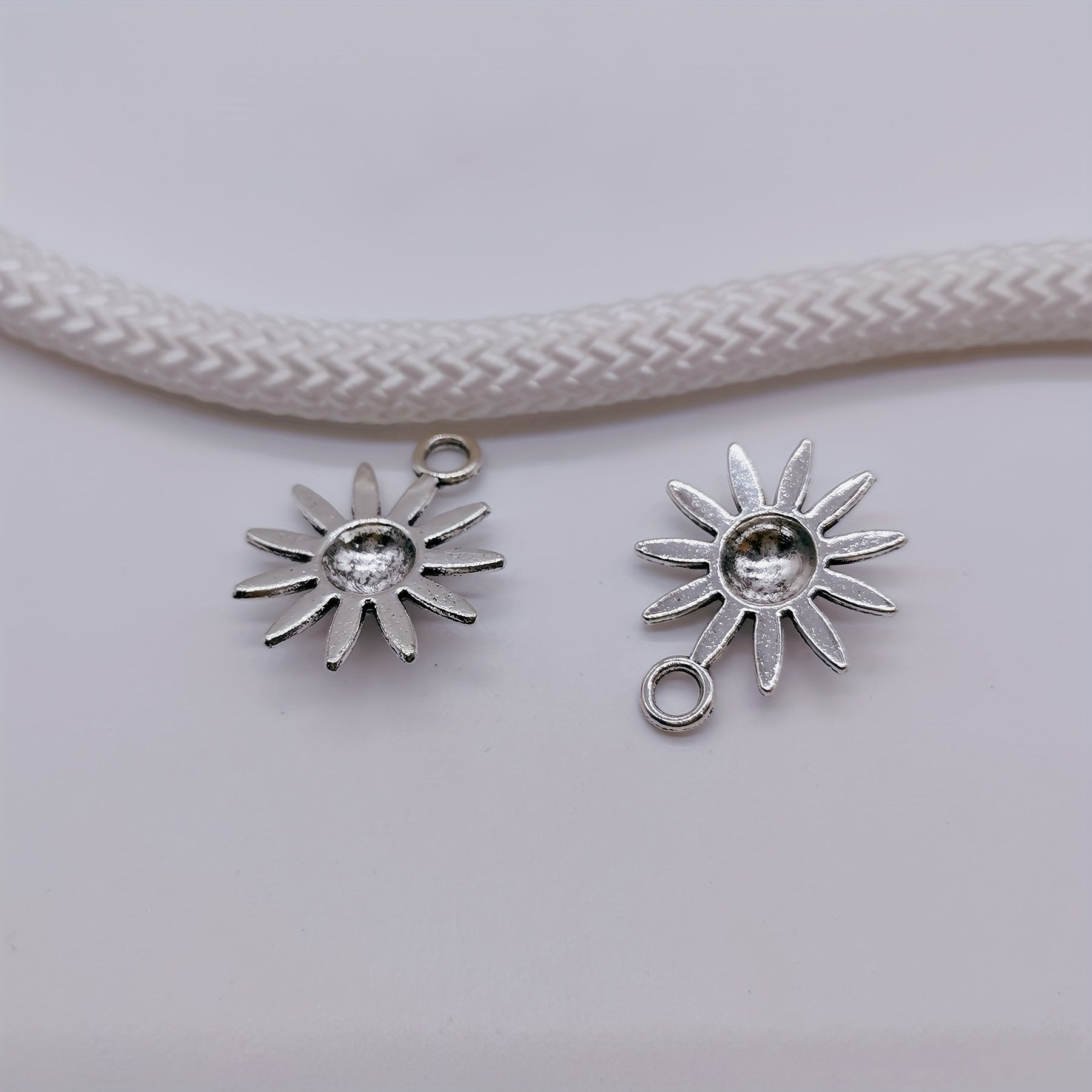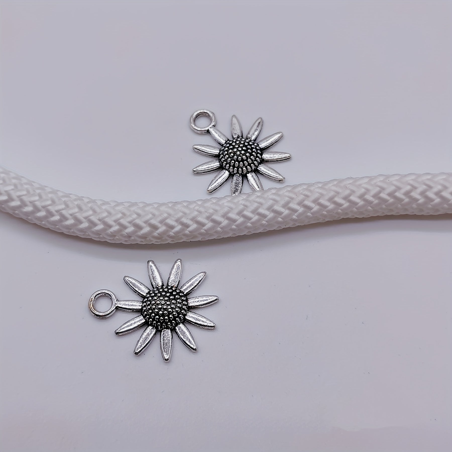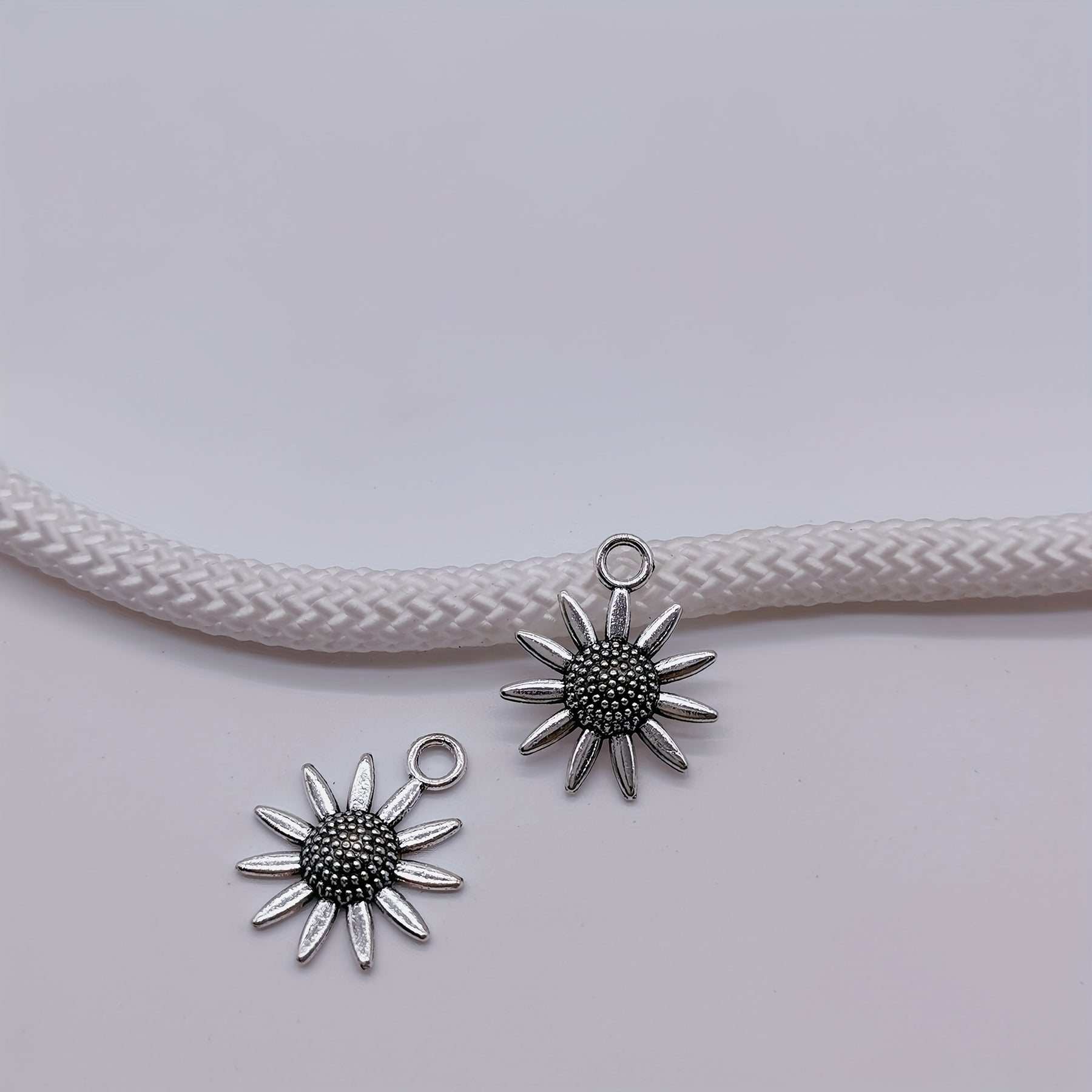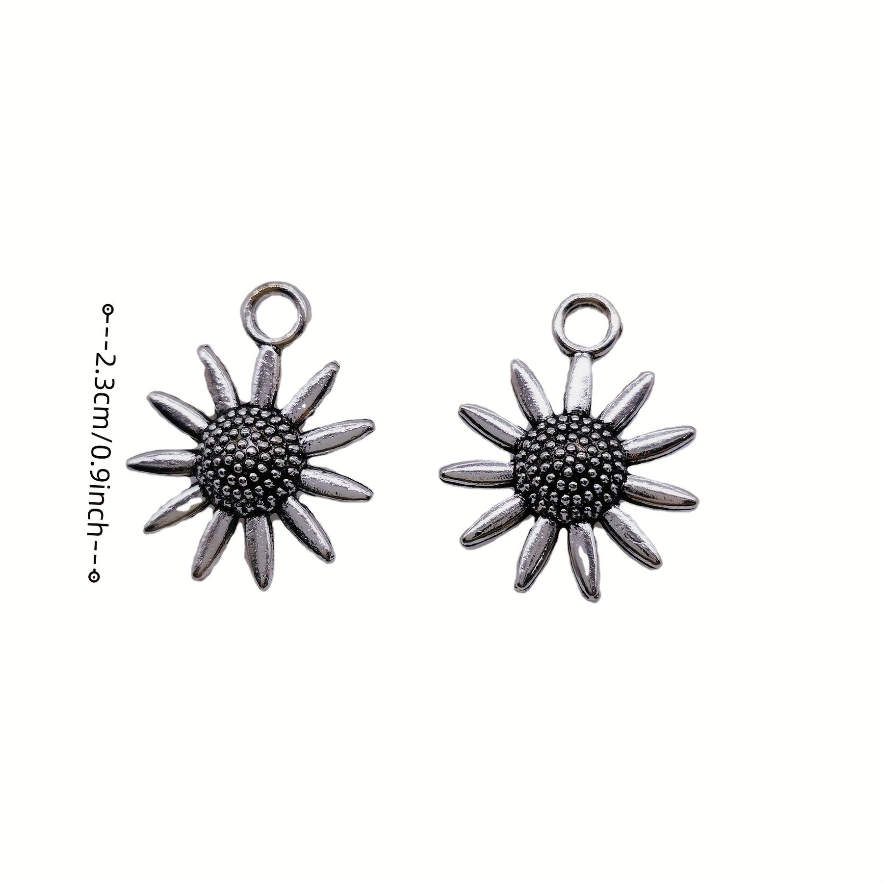 Add a touch of elegance to your jewelry-making projects with these 50pcs silvery sunflower flowers small daisies alloy pendants. Ideal for creating unique bracelets and necklaces.