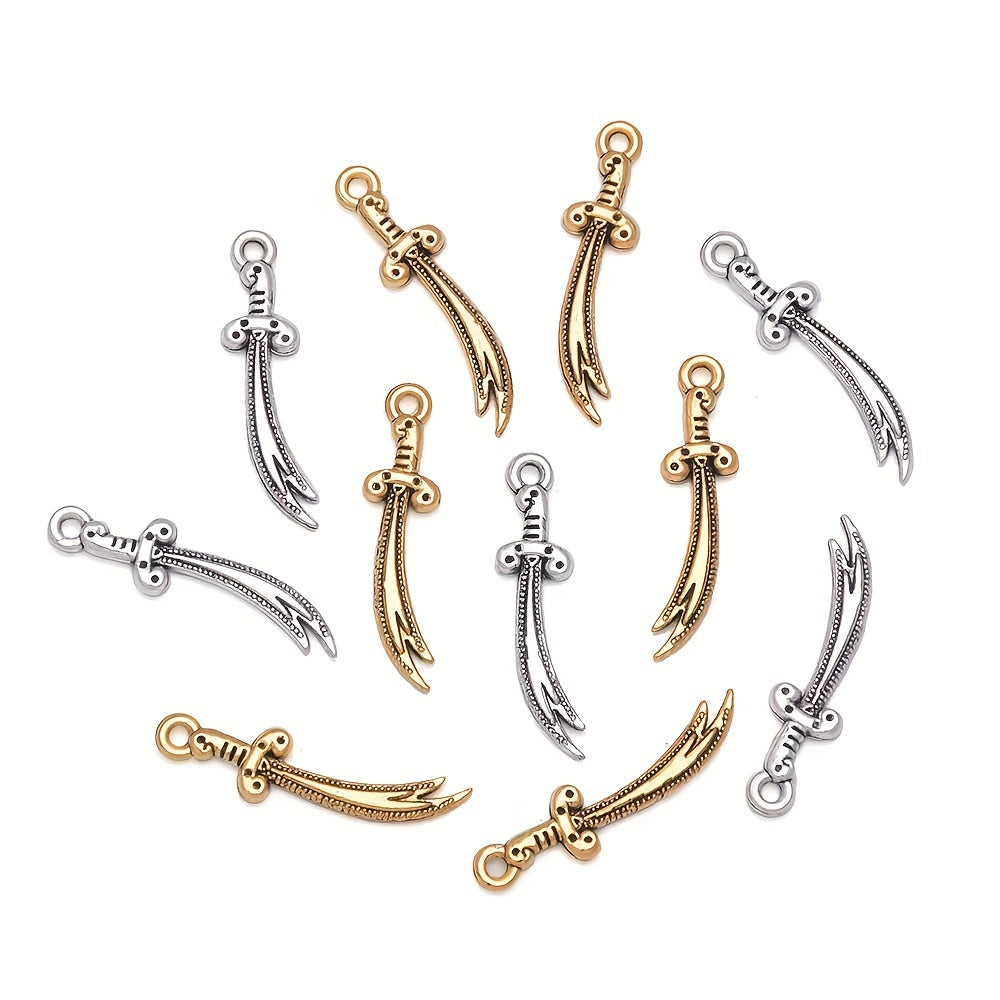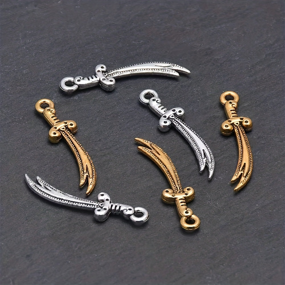 Enhance your jewelry collection with these 50pcs sword pendants. Perfect for bracelets, necklaces, and earrings. Great for DIY projects or gifts.