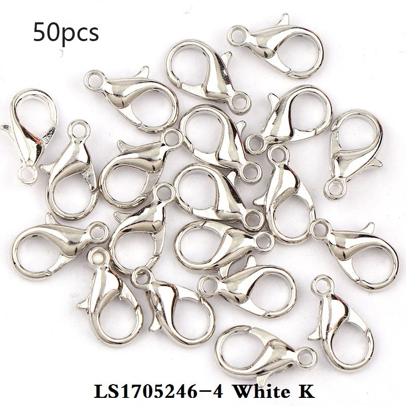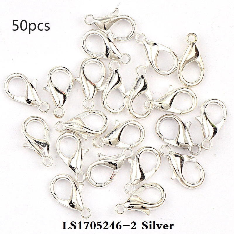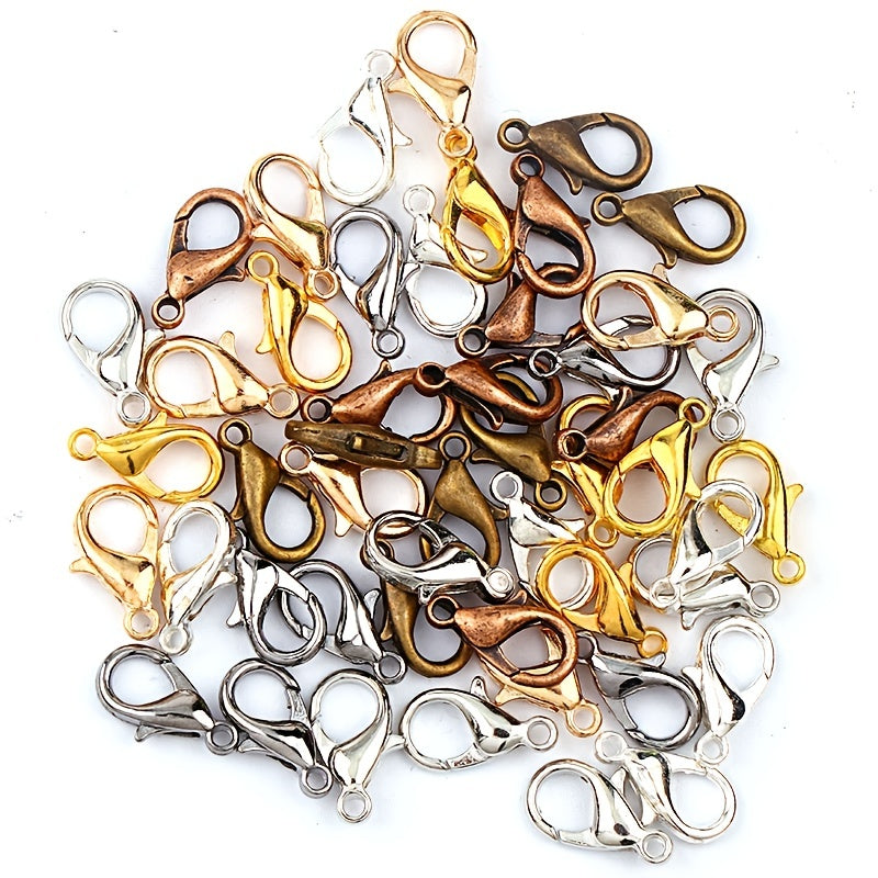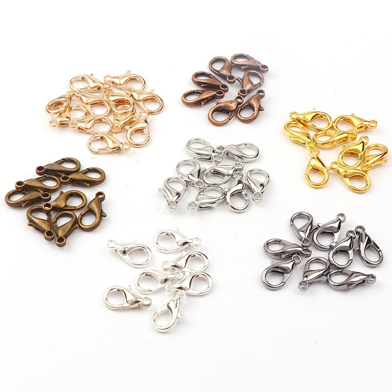 These lobster clasps are made of zinc alloy, perfect for making jewelry. Each pack contains 50 pieces of lobster clasps that measure 12mm x 6mm.