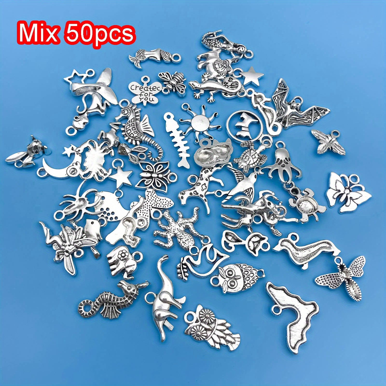 Create stunning jewelry with this set of 50 antique silver heart-shaped charms. Perfect for necklaces, bracelets, and earrings. These charms are made of zinc alloy and are great for DIY projects.