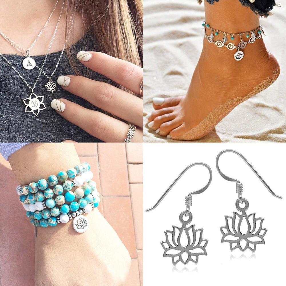 Create stunning jewelry pieces with these antique silvery or bronze lotus flower pendants. Perfect for DIY necklace and bracelet crafting.