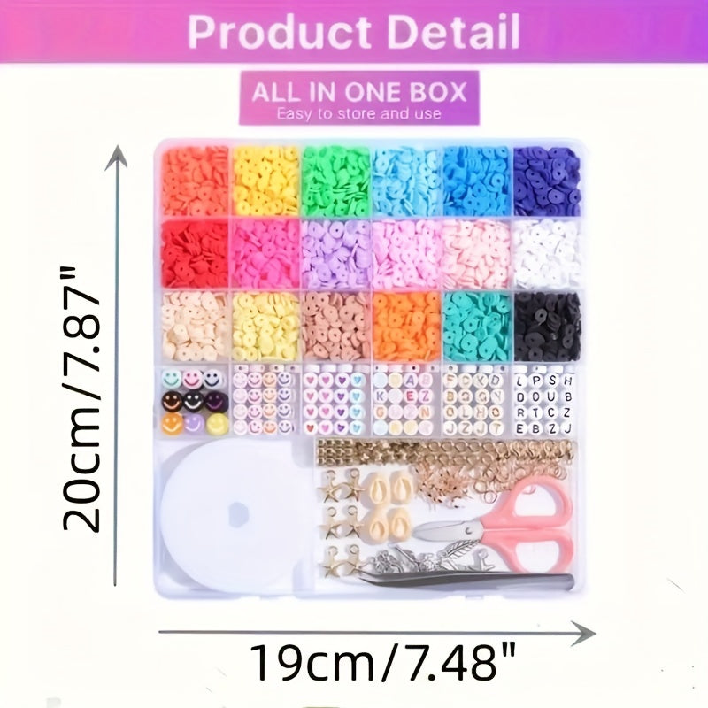 Create beautiful friendship bracelets with this kit that includes 5500 clay beads in flat round shapes. Perfect for jewelry making and a thoughtful birthday gift.
