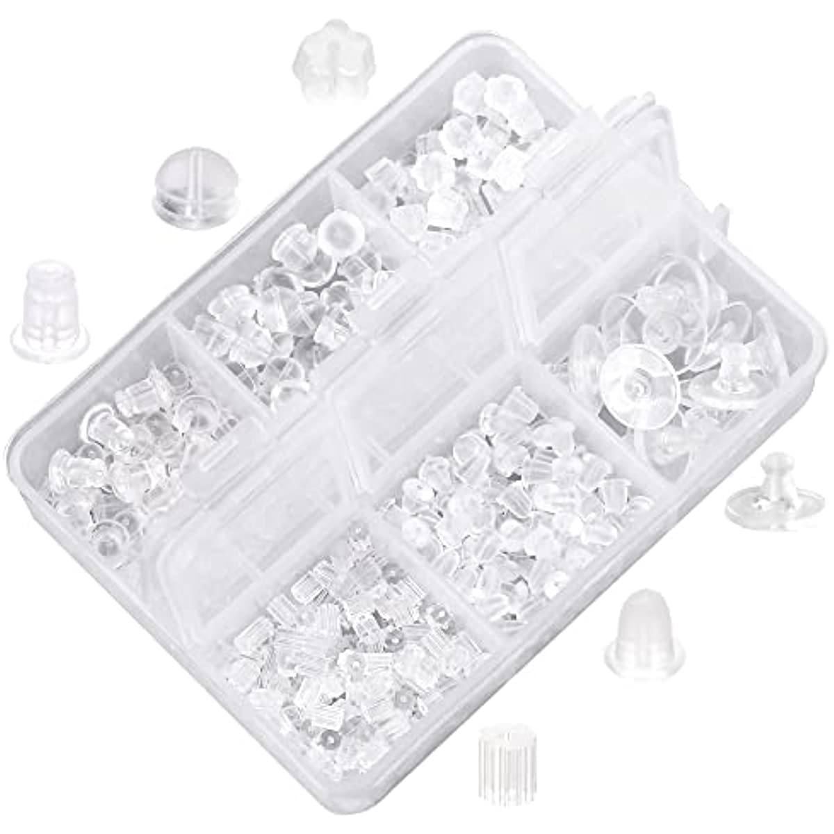 This set includes 550 silicone earring backs in 6 different styles, providing hypoallergenic and comfortable support for your earrings. Made of clear rubber, these backs ensure safety and security for your earrings.