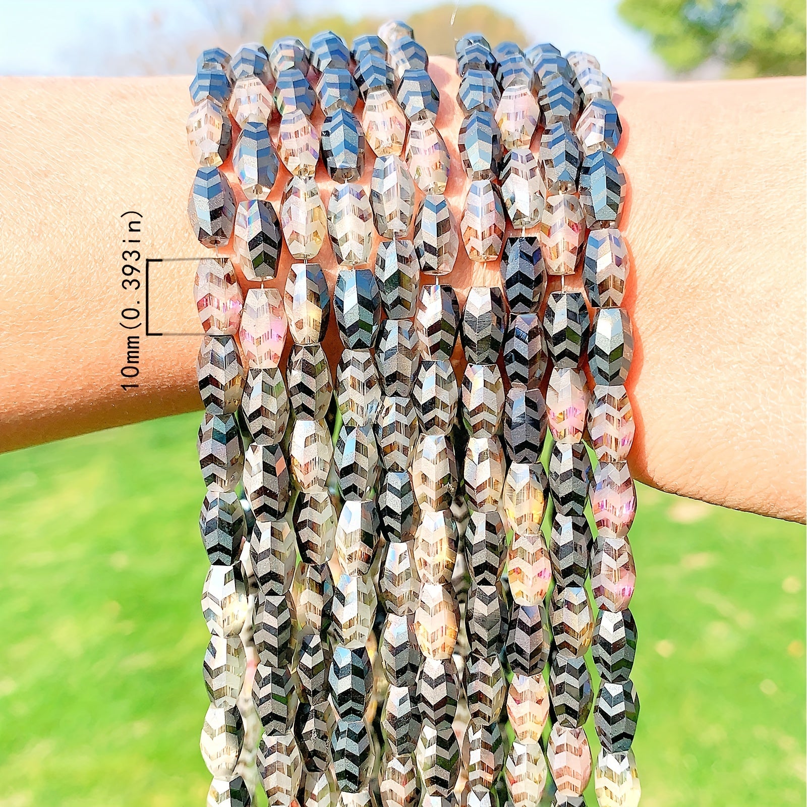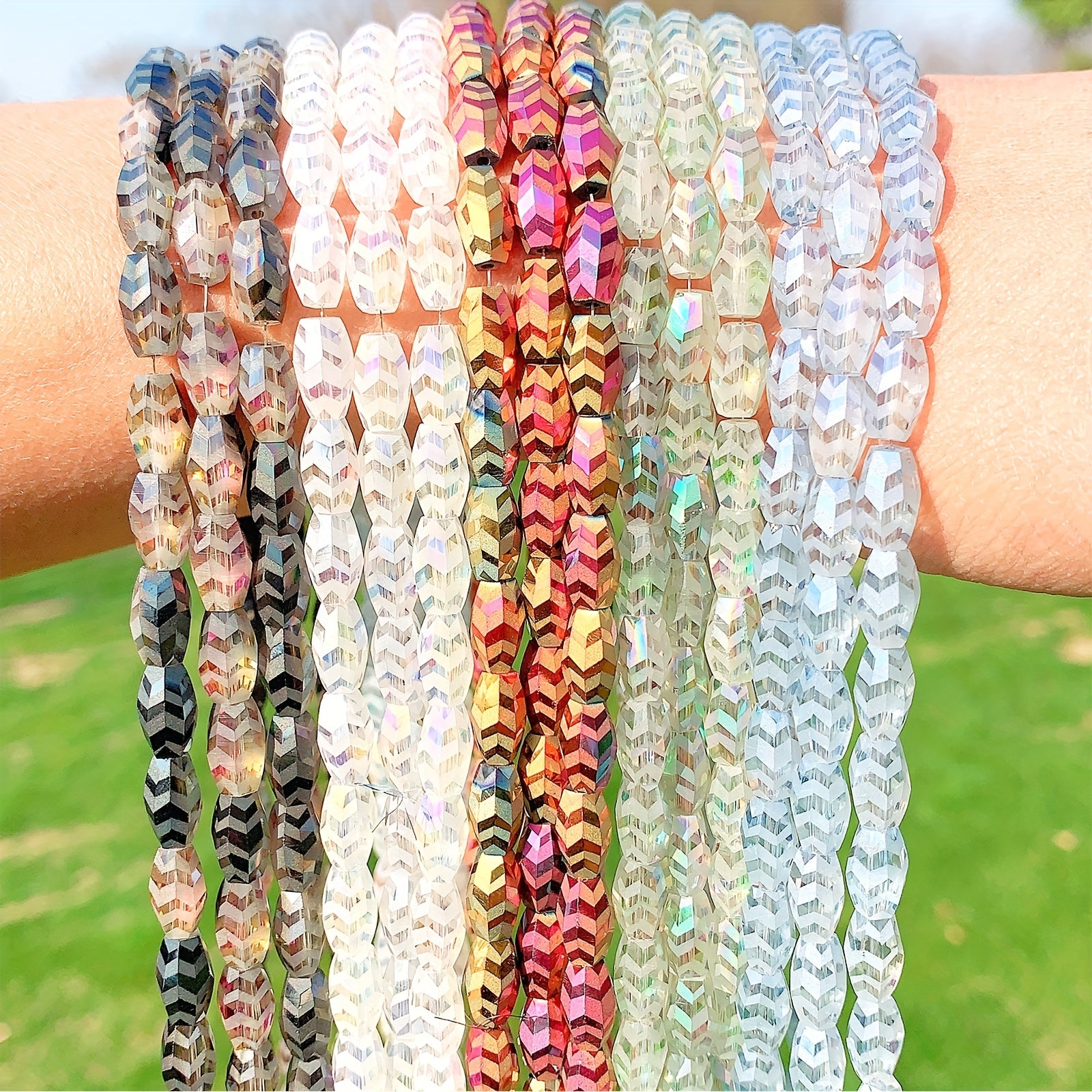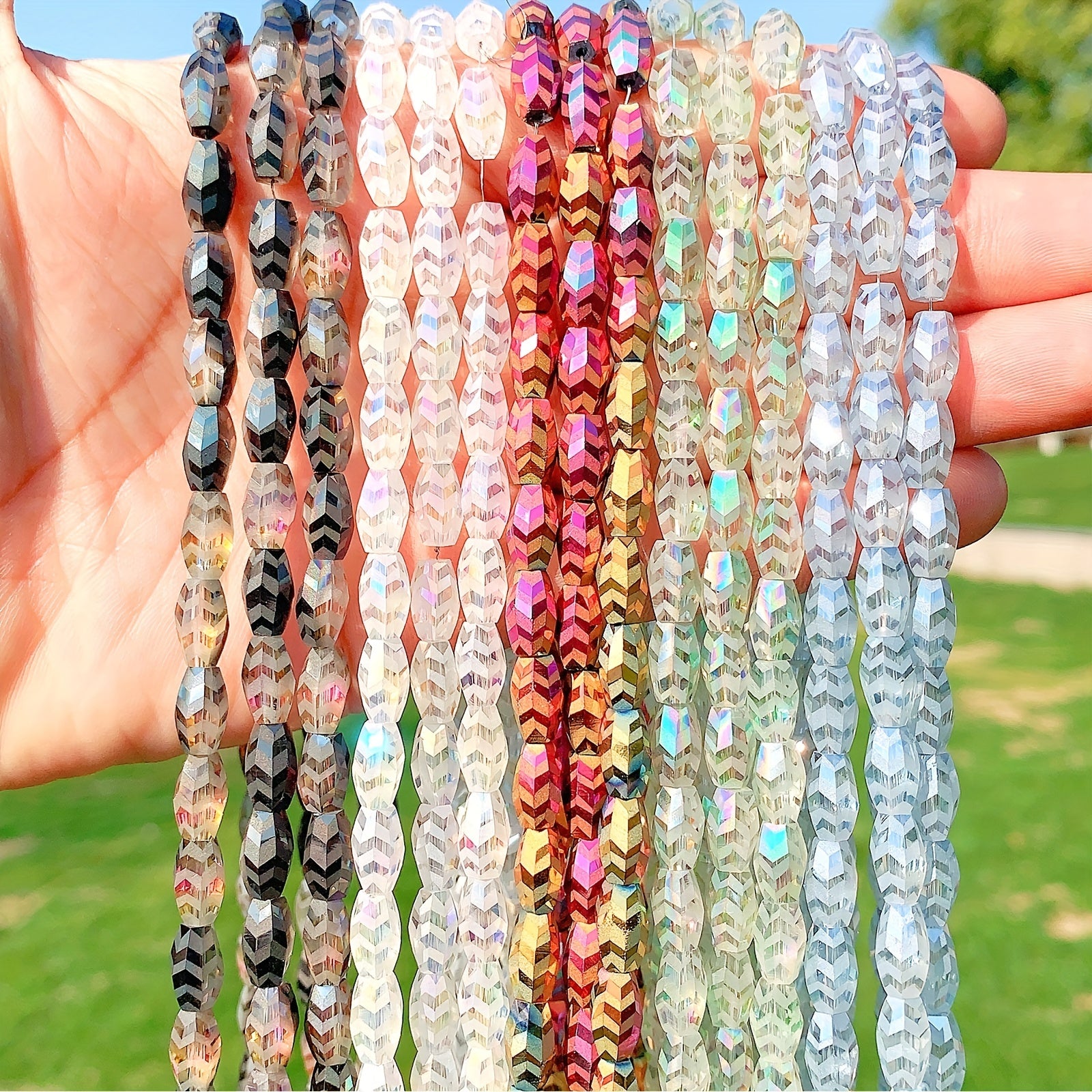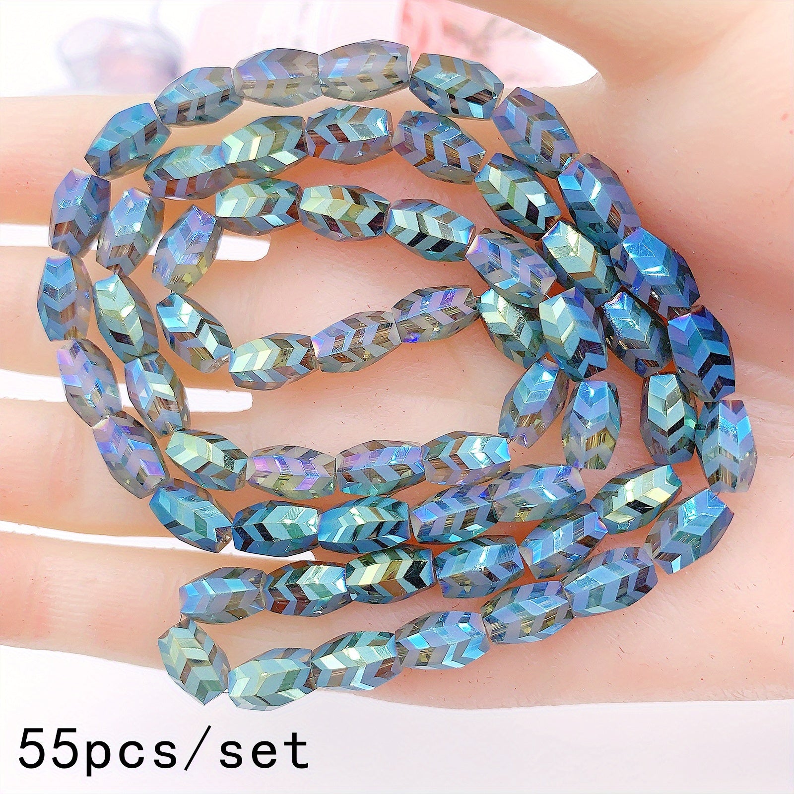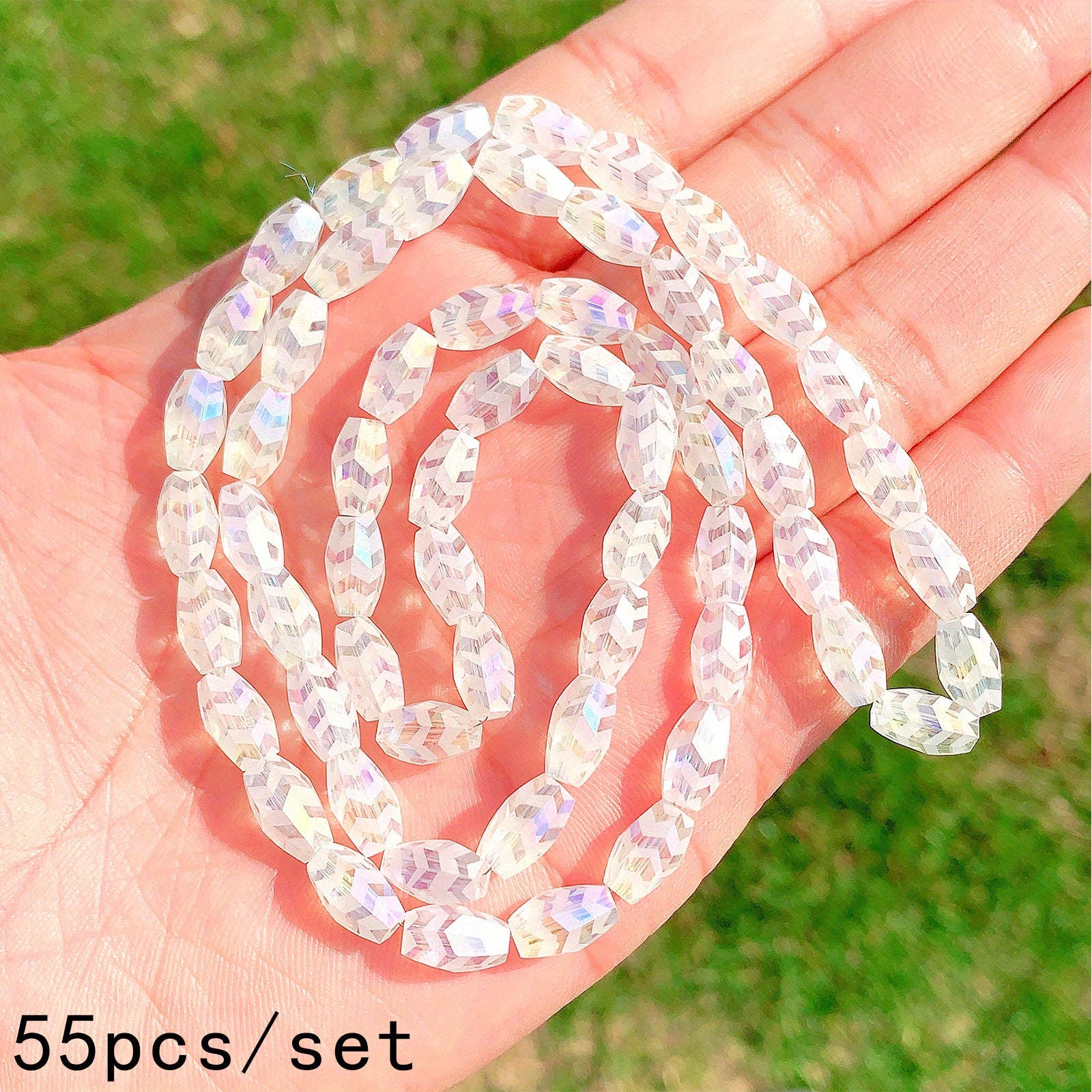 This set includes 55 pieces of AB plated crystal beads with faceted frosted glass design. Ideal for creating your own bracelets and jewelry accessories.