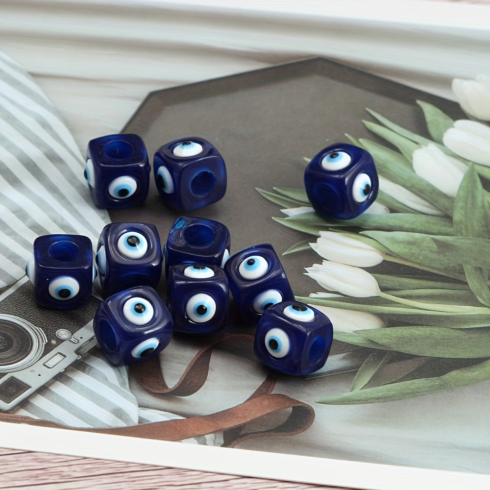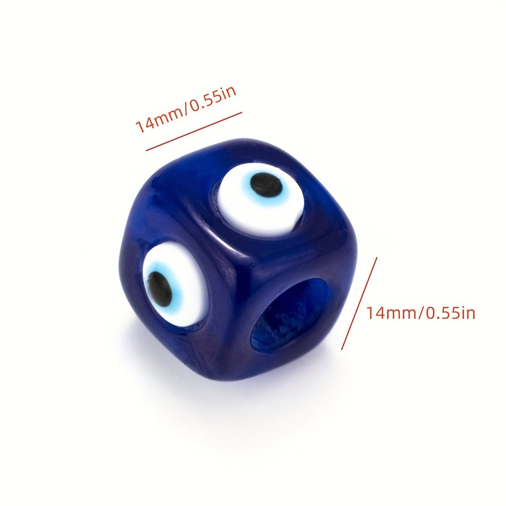 Enhance your necklace or bracelet with these 14mm Evil Eye resin square beads. Perfect for adding a touch of style and protection to your jewelry.