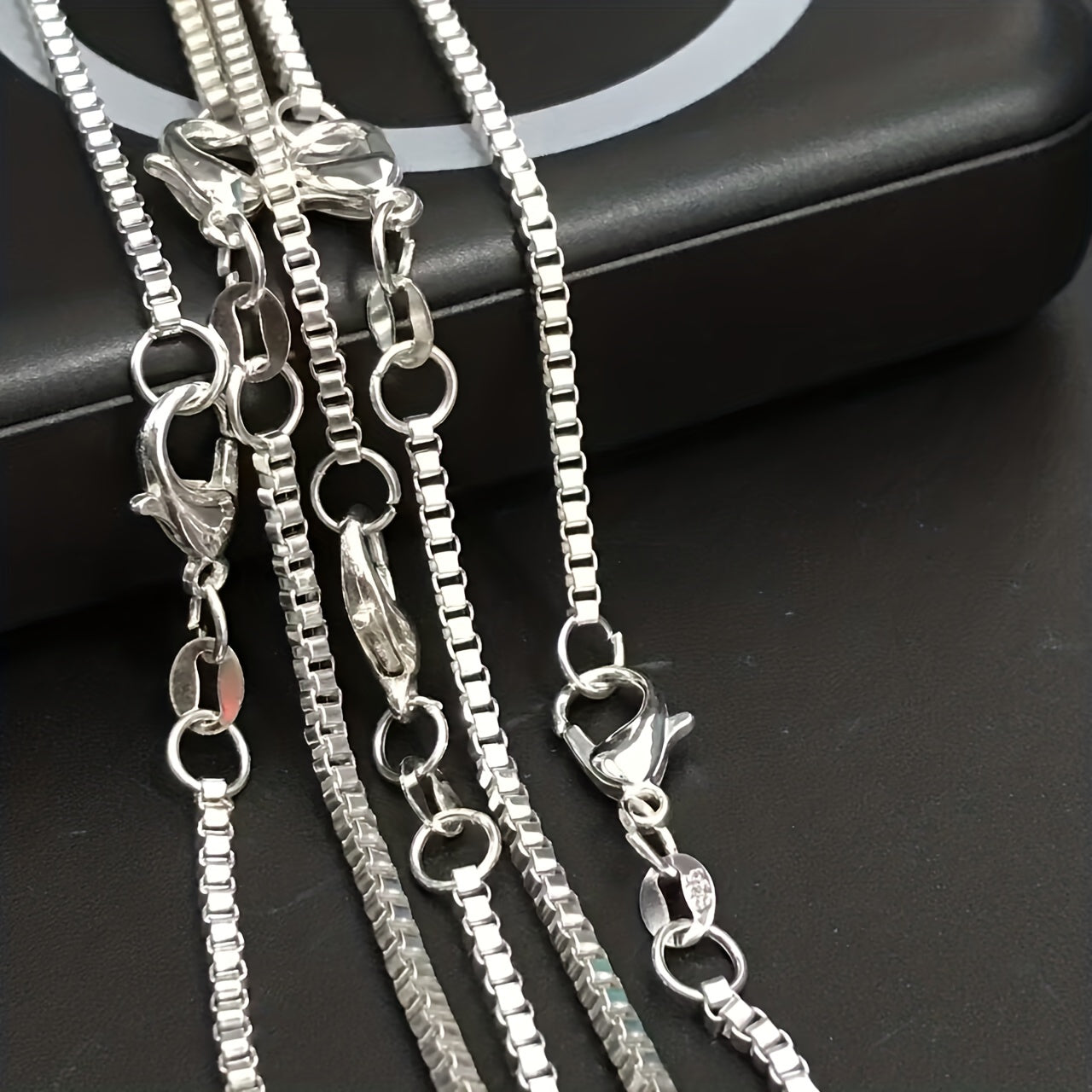 This pack includes 5 pieces of 16-30 inch box chain link chains with lobster clasps. Ideal for making DIY necklaces and other jewelry accessories.