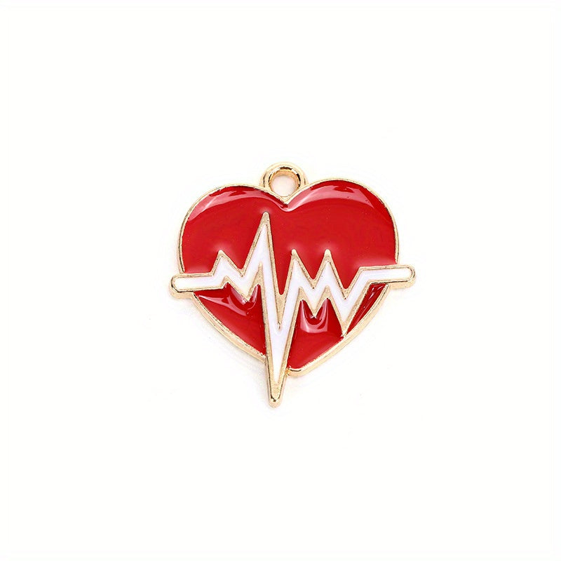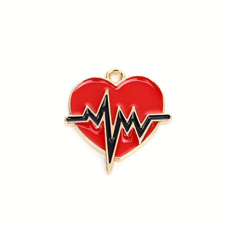 This set includes 5pcs of 21x20mm heart electrocardiogram alloy accessories, perfect for DIY jewelry making. These decorations can be used for necklaces, earrings, keychains, and more.