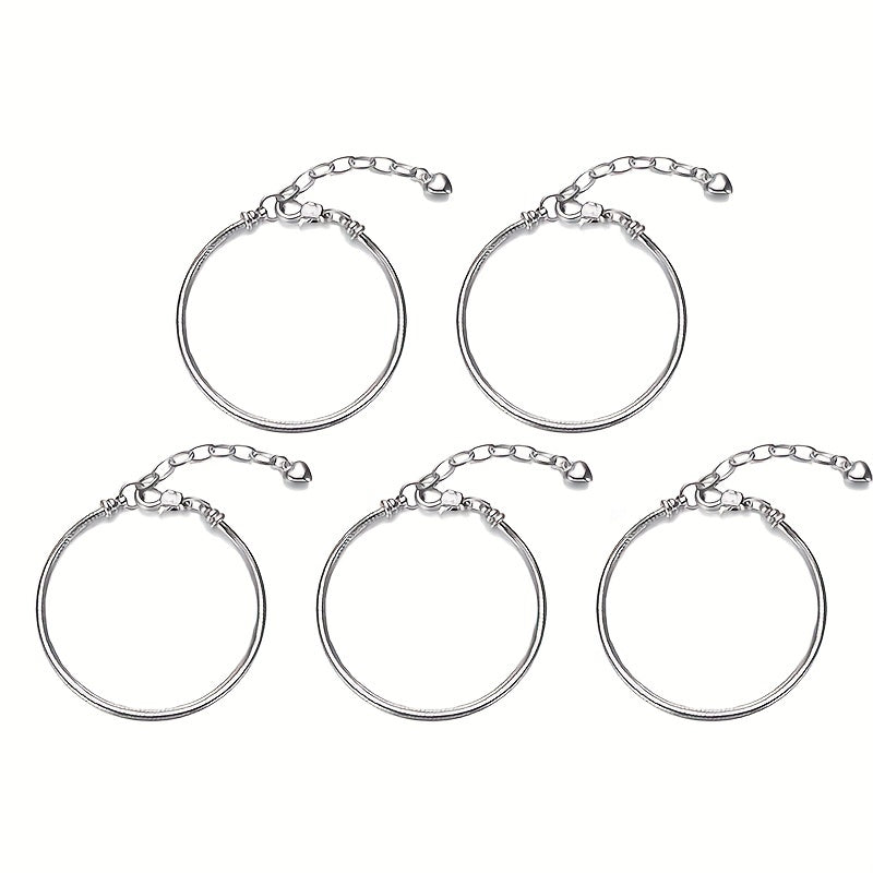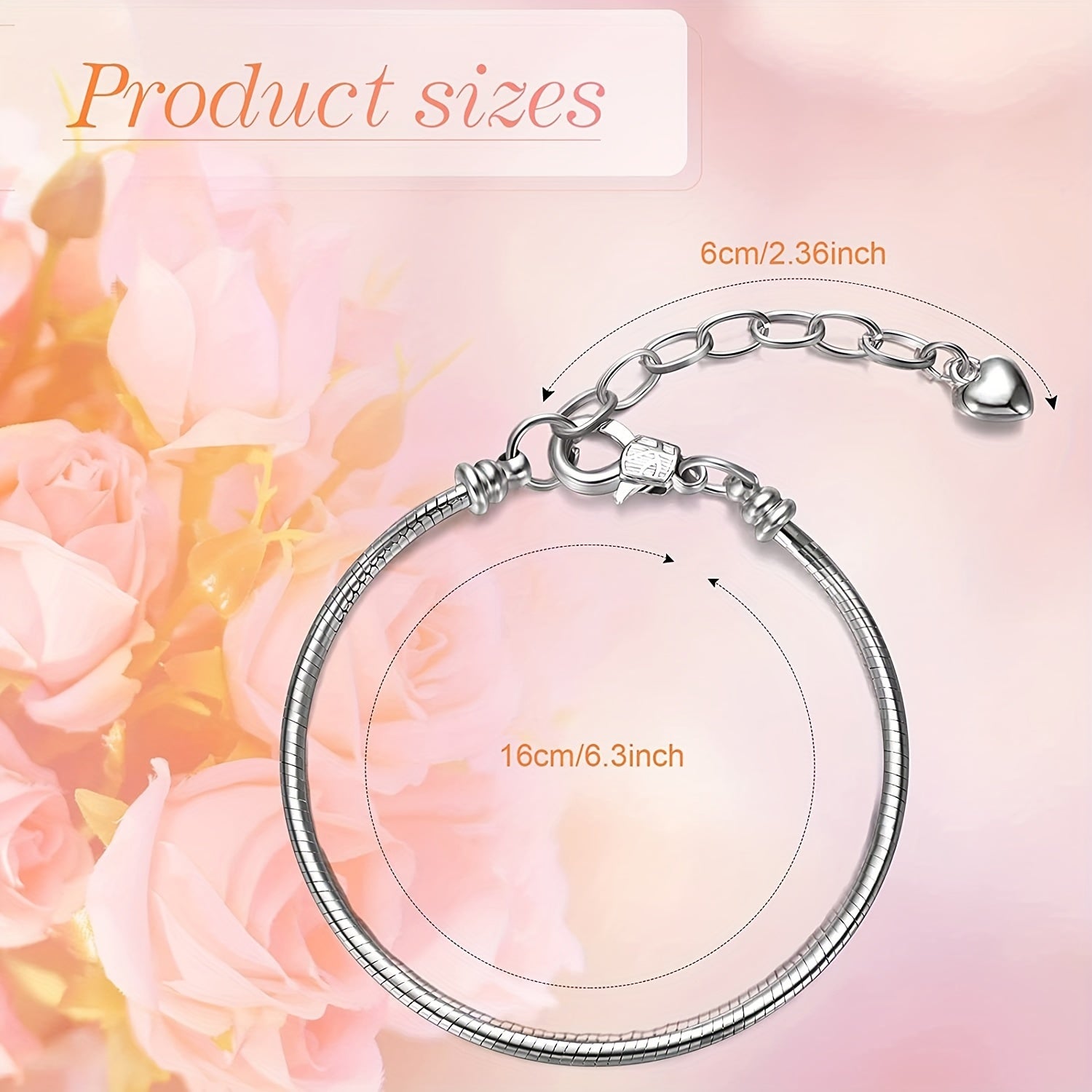 Create personalized jewelry with these 5 adjustable charm bracelets. Each bracelet features a 6.3-inch snake chain with a heart-shaped design.