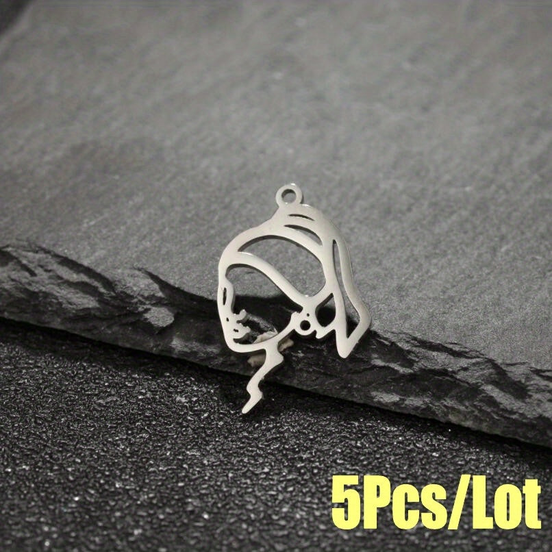 Create your own unique jewelry pieces with these 5 abstract girl face charm pendants. Perfect for earrings, bracelets, necklaces, and other accessories.