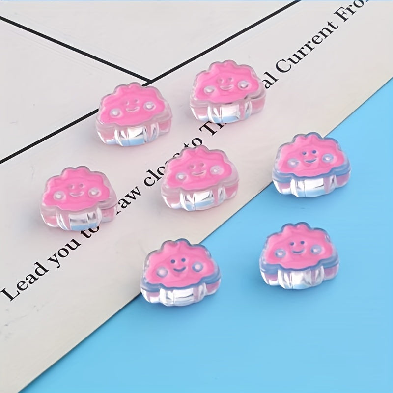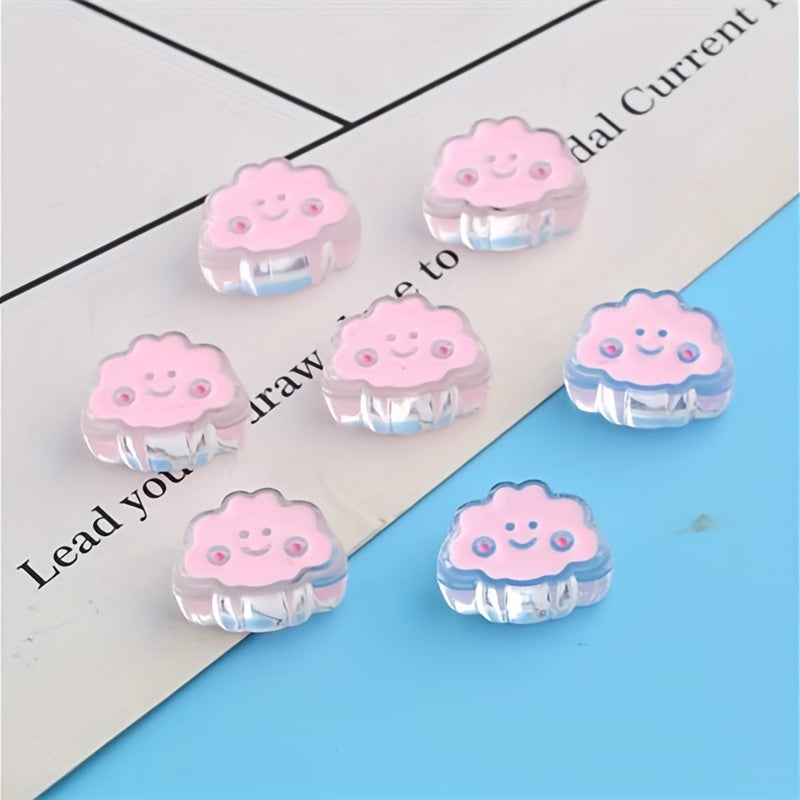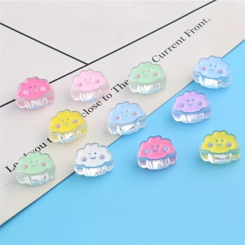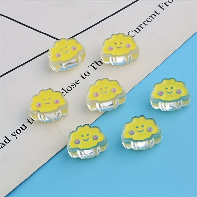 These transparent acrylic beads feature a dripping oil design with cartoon smiley face clouds. Perfect for creating headdresses, hair ropes, bracelets, necklaces, and mobile phone accessories.