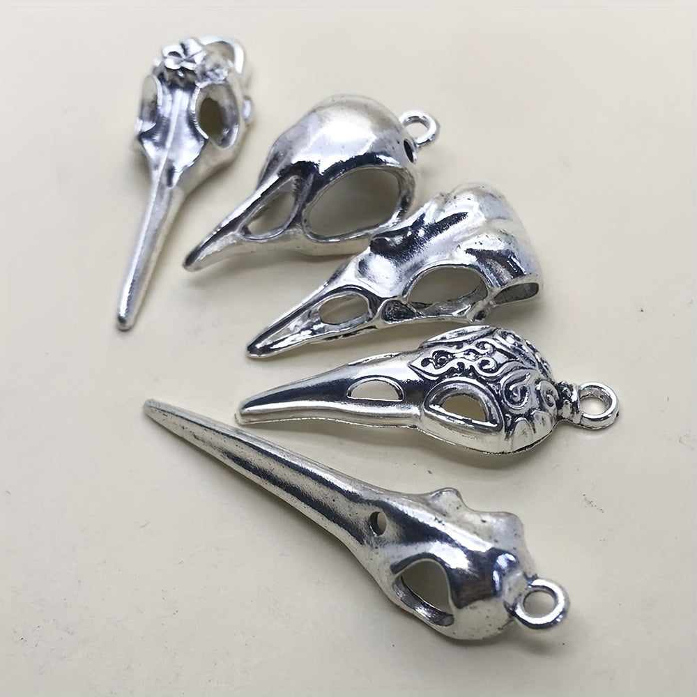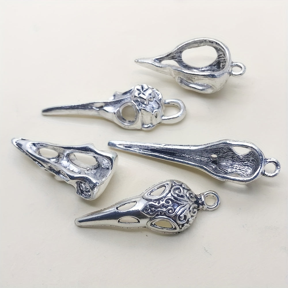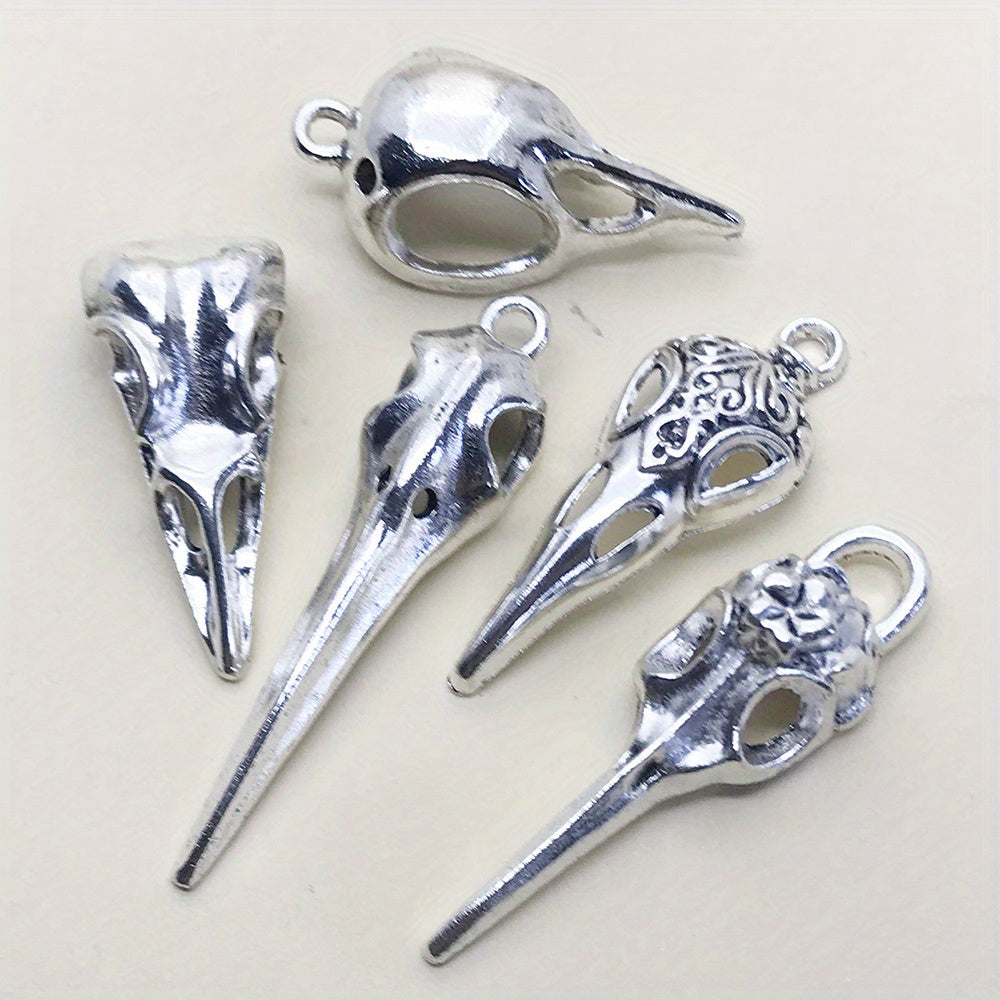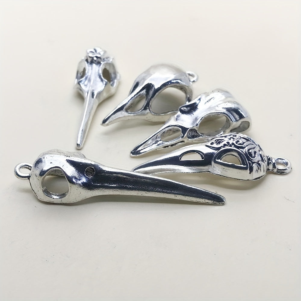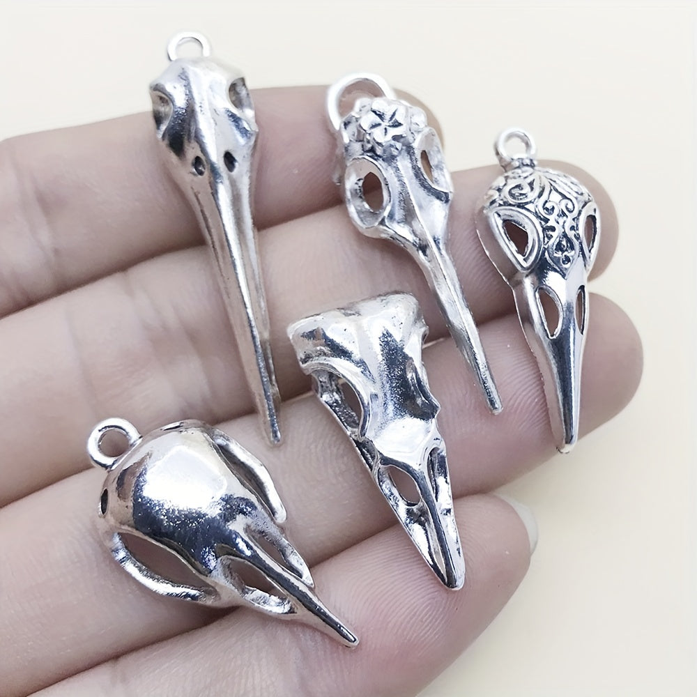 Add a touch of punk style with these antique silver vulture bird skull head bone charms pendants. Perfect for DIY jewelry making, crafting necklaces, and bracelets.
