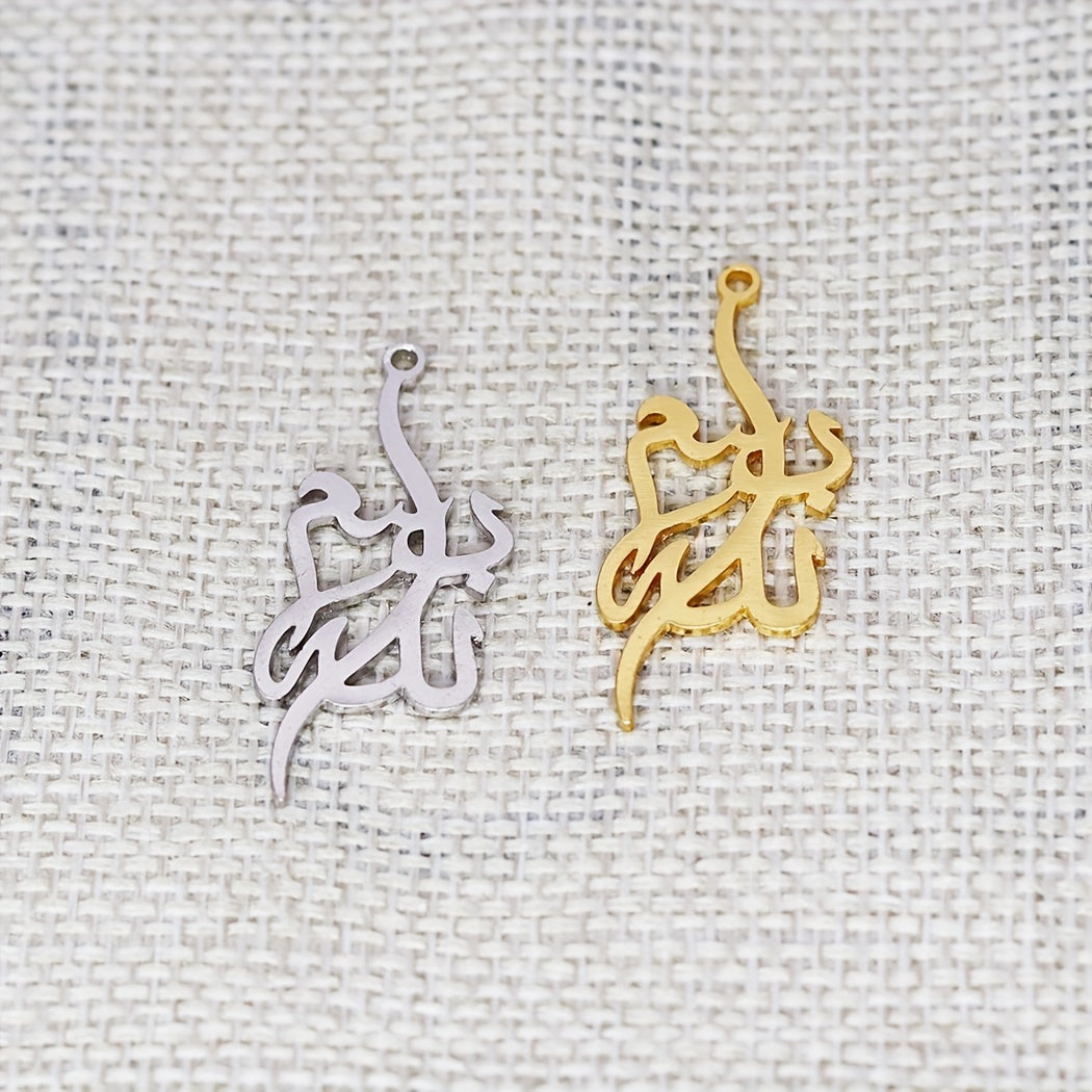 Add an elegant touch to your crafts with these minimalist Bismillah calligraphy charm pendants. Made of stainless steel, they are perfect for necklaces, bracelets, and other crafts.