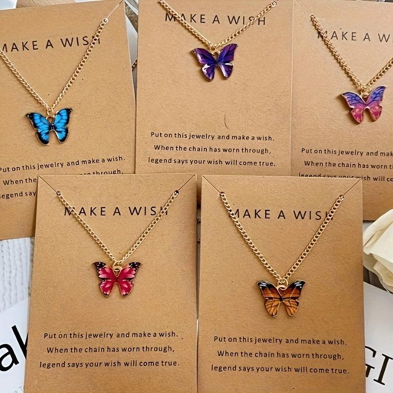 Enhance your style with this set of 5 bohemian style alloy butterfly pendant necklaces, perfect for adding a touch of elegance and charm to your look.