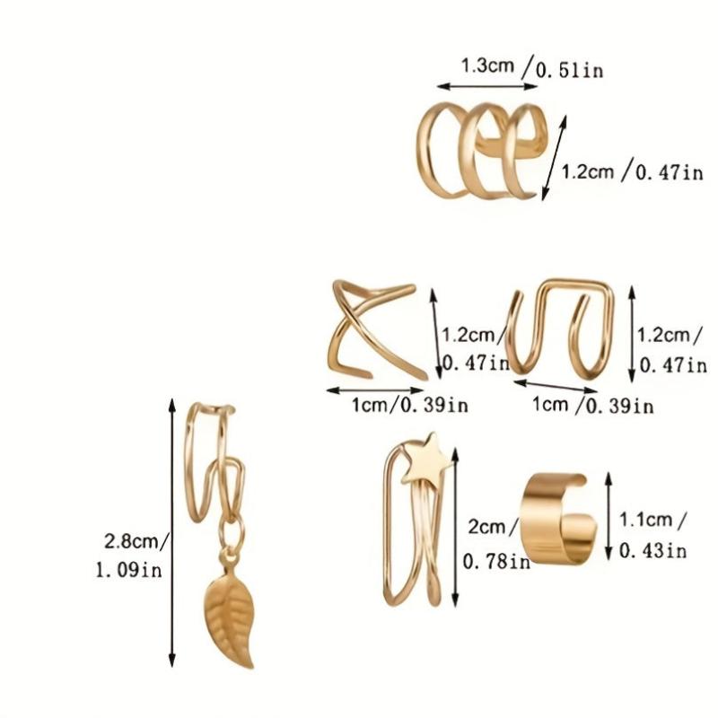 Add a touch of bohemian flair to your look with these 5pcs ear cuffs. Made of iron, these non-piercing cuffs feature a double layer design with star and leaf motifs. Perfect for daily wear or special occasions.