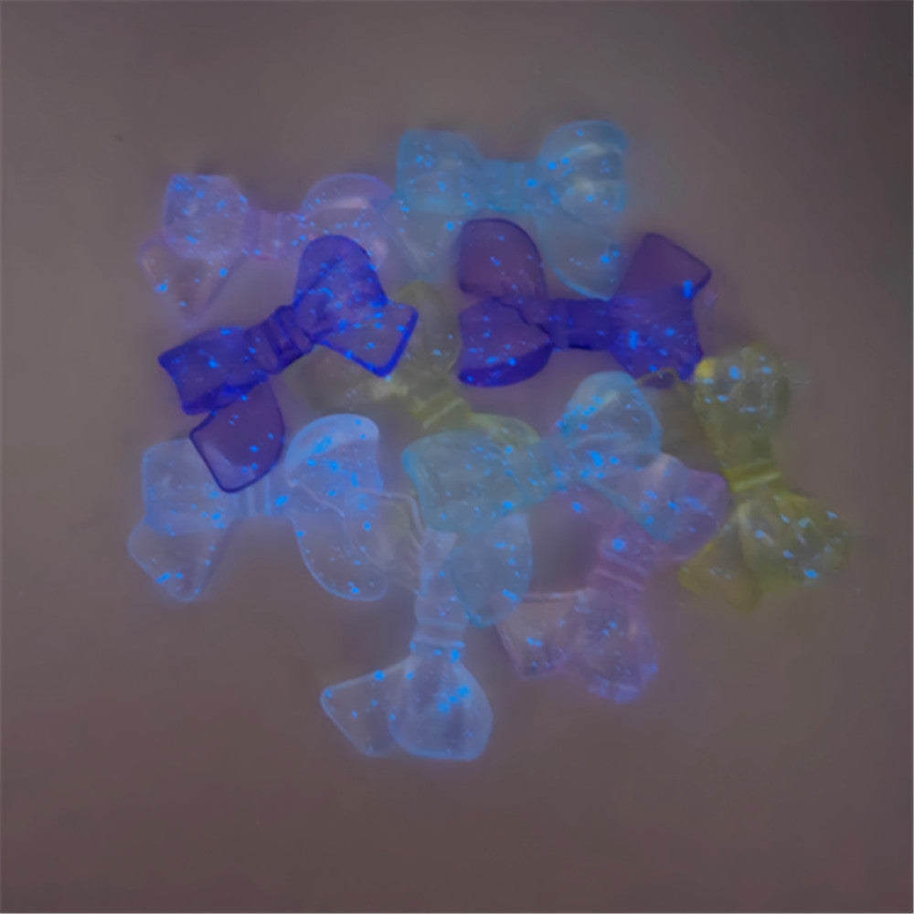 Create your own jewelry with this set of 5 luminous bow knot beads. Perfect for making necklaces, phone chains, earrings, and more.