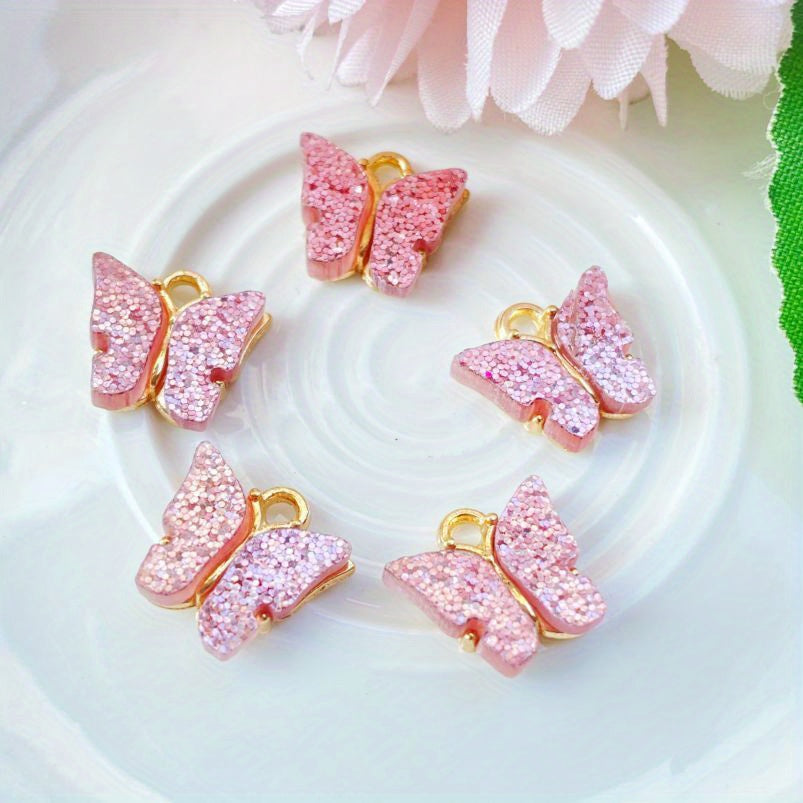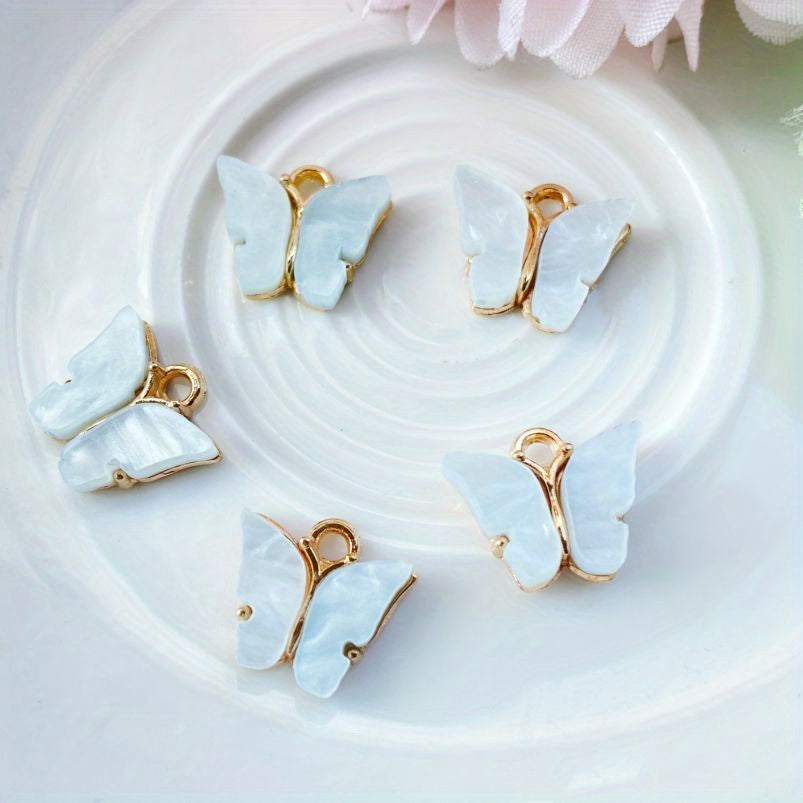 Enhance your jewelry-making projects with this set of 5 butterfly series acrylic DIY hanging bracelet and necklace alloy accessories.