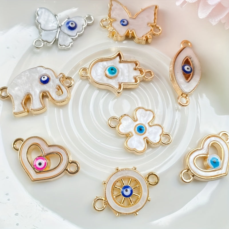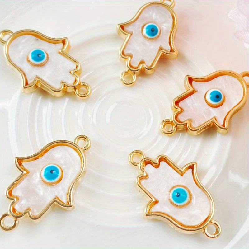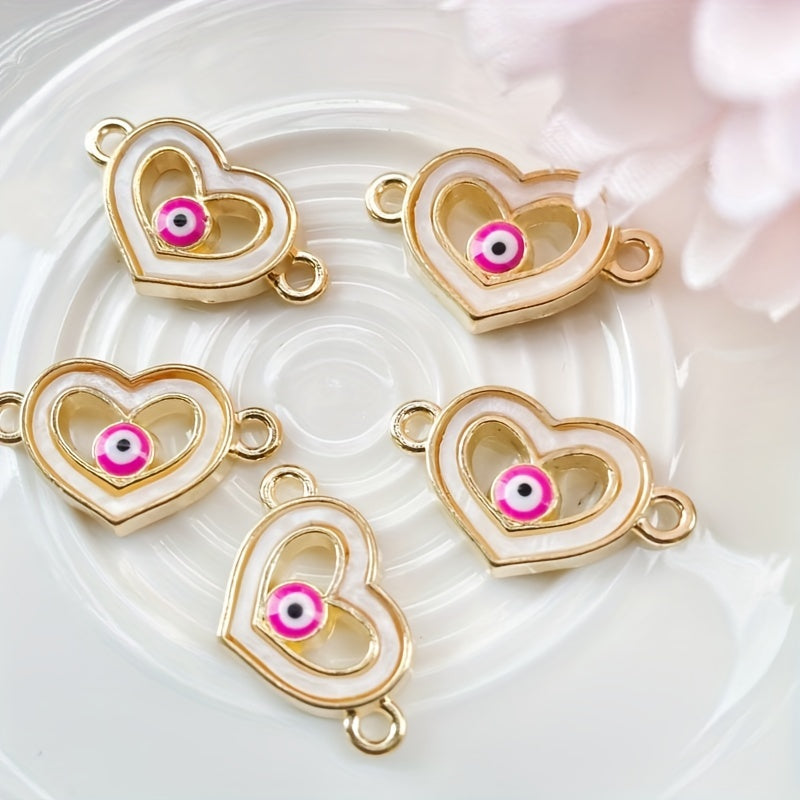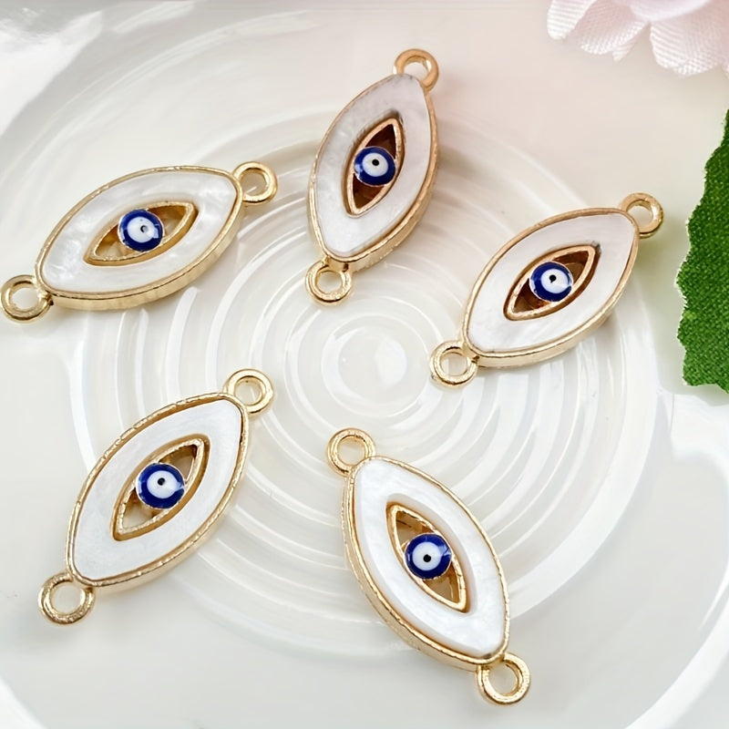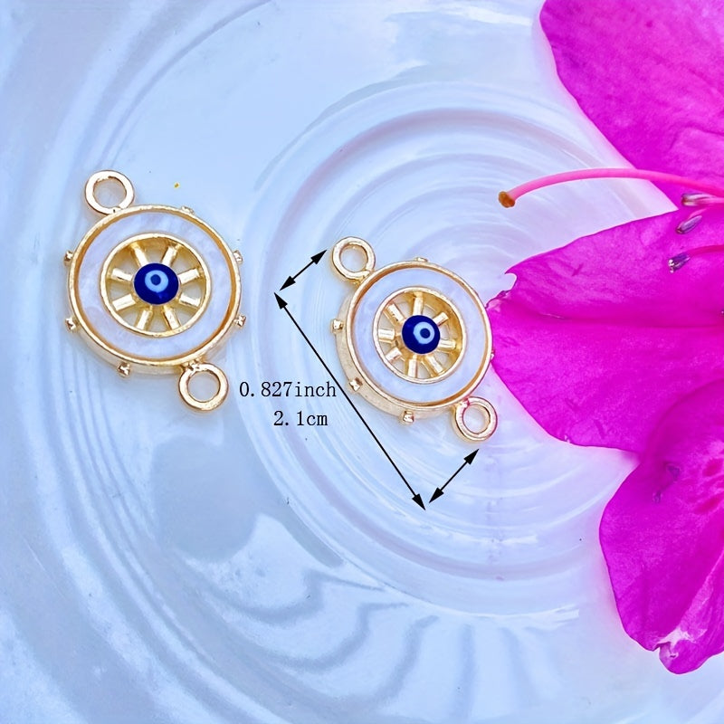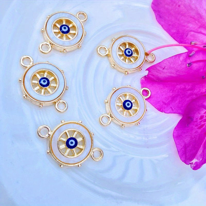 Enhance your accessories with this set of 5pcs double hanging car wheel drip oil devil's eye pendants. Made of alloy, perfect for creating your own unique necklace or bracelet.