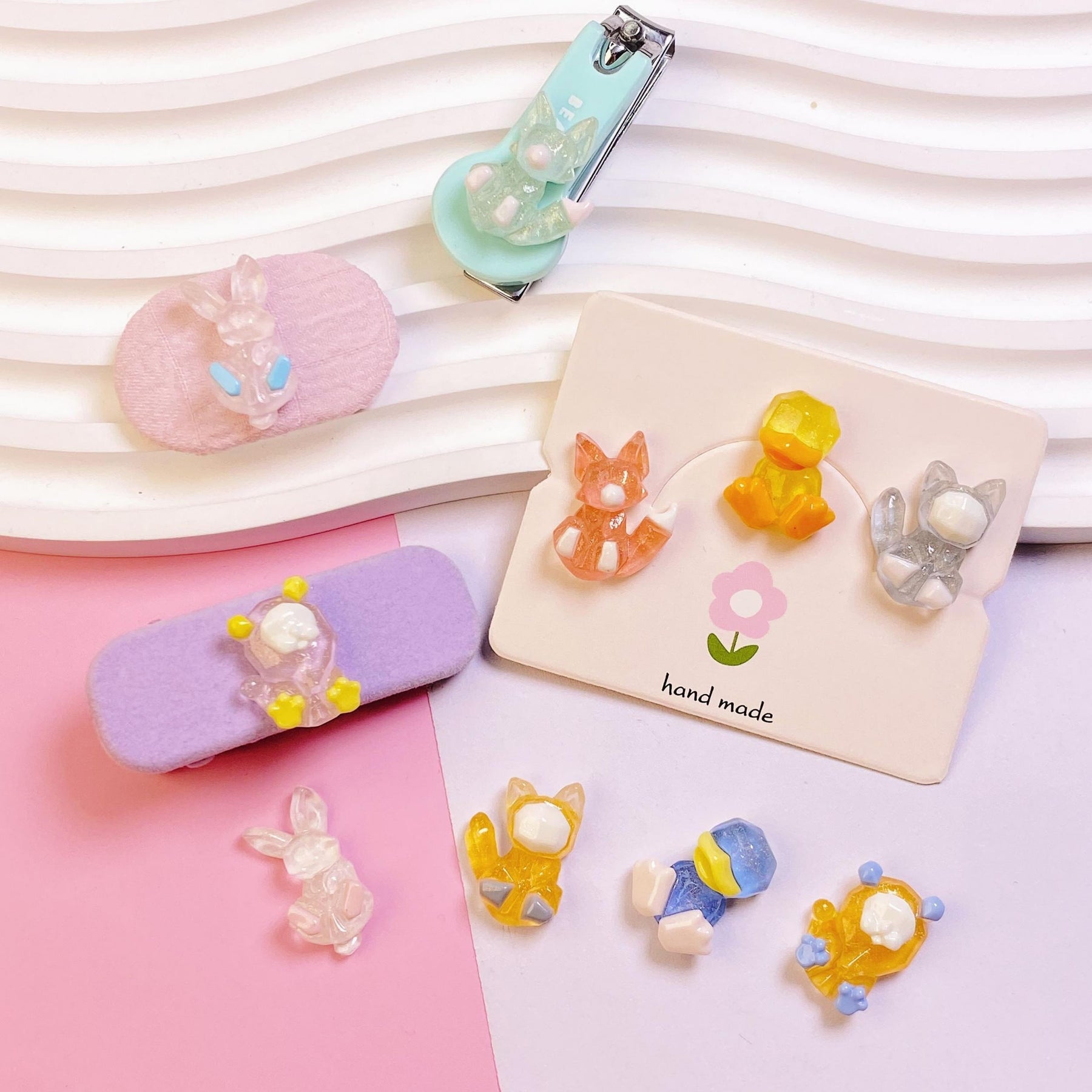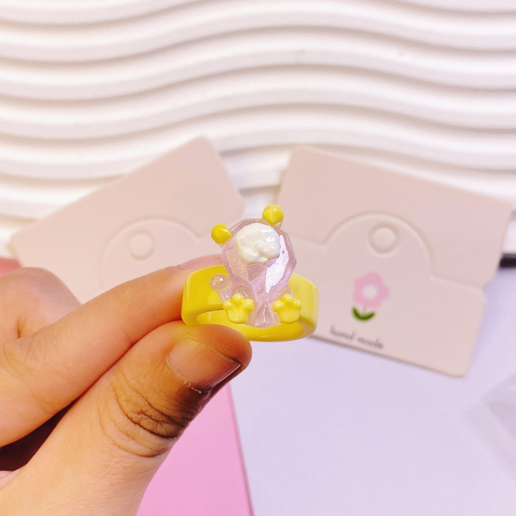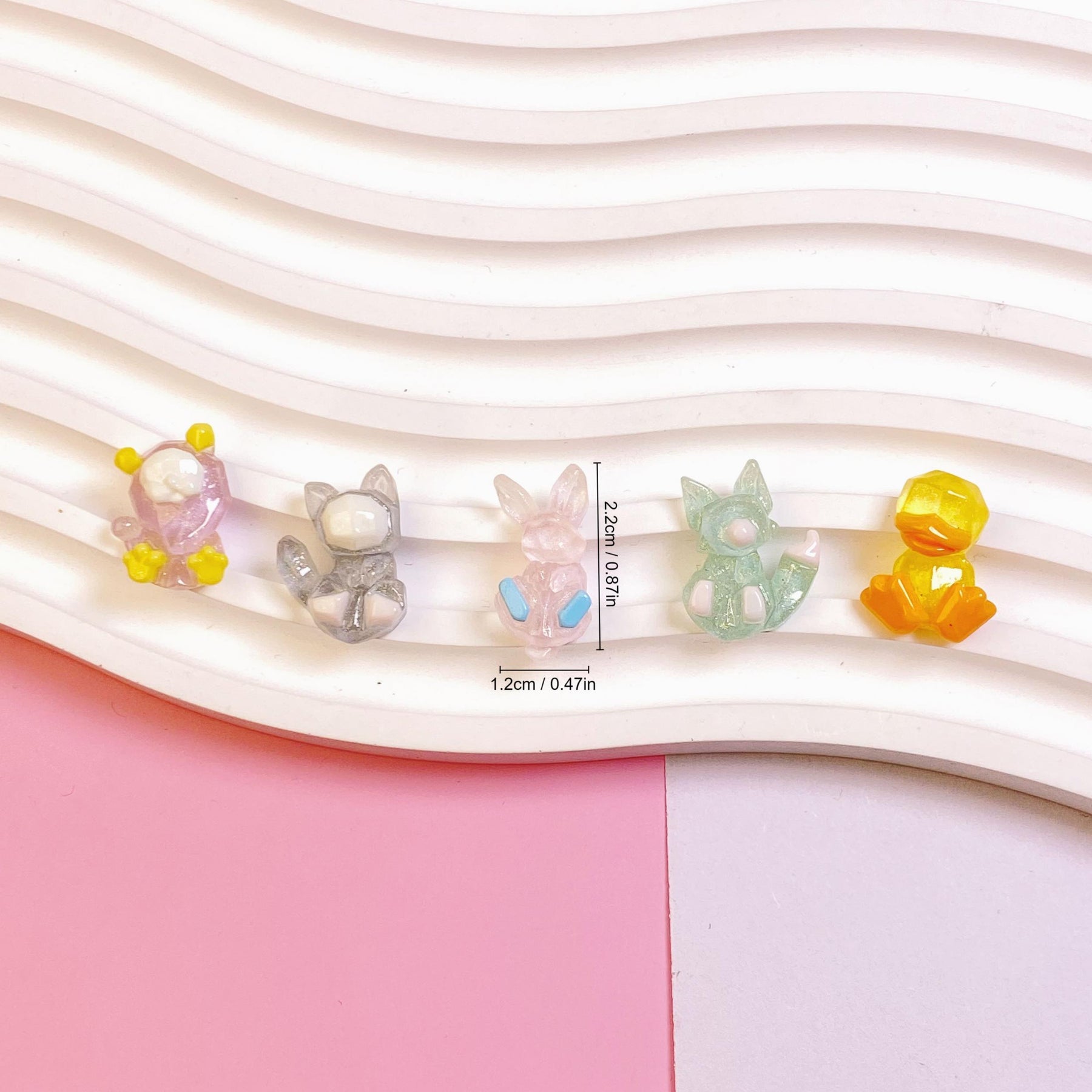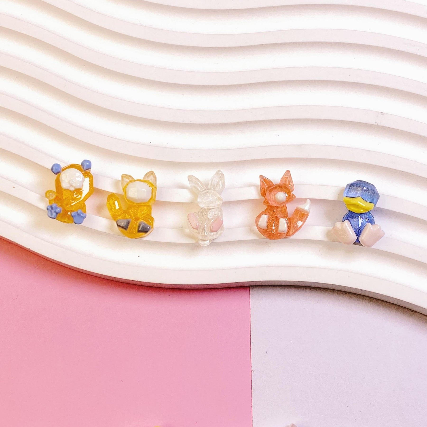 This set includes 5 cute dual clear resin rings with small cartoon animal designs, perfect accessories for kids.