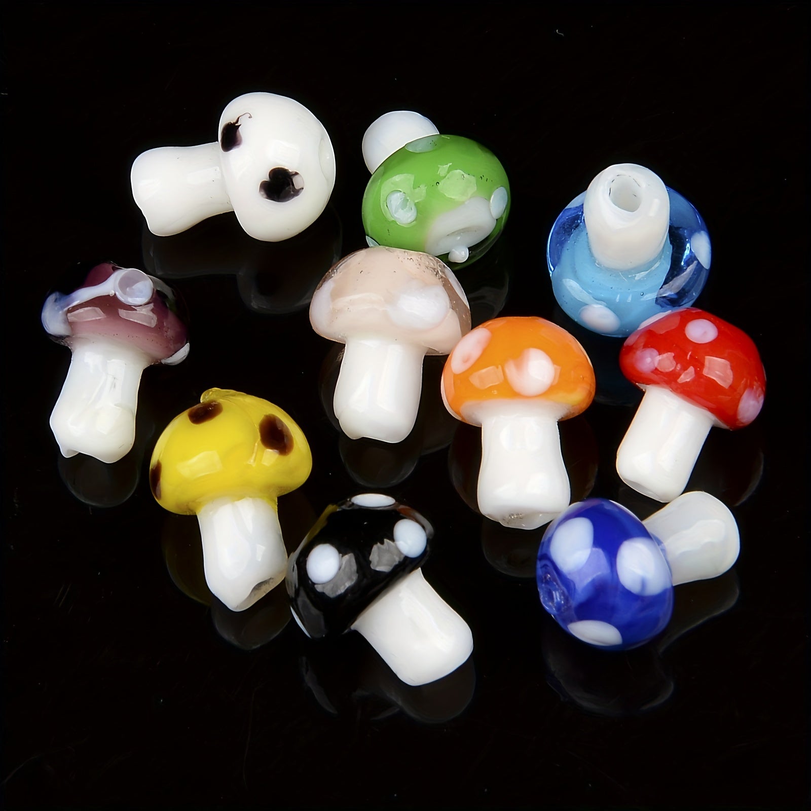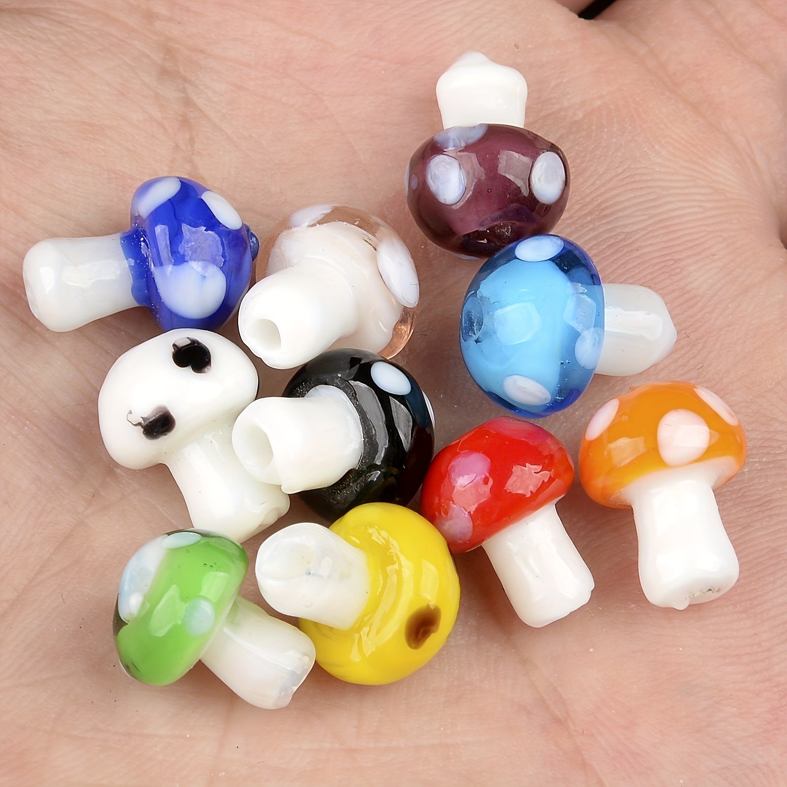 Enhance your jewelry creations with these 5 colourful mushroom glass beads. Ideal for bracelets, necklaces, and earrings. Each bead measures 10x13mm.