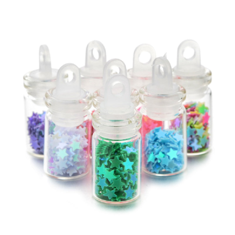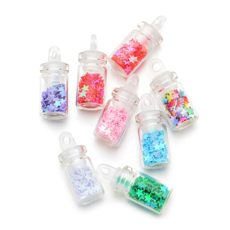 These mini glass bottles can be used as pendants and are perfect for storing star sequins or making personalized wishing bottles.