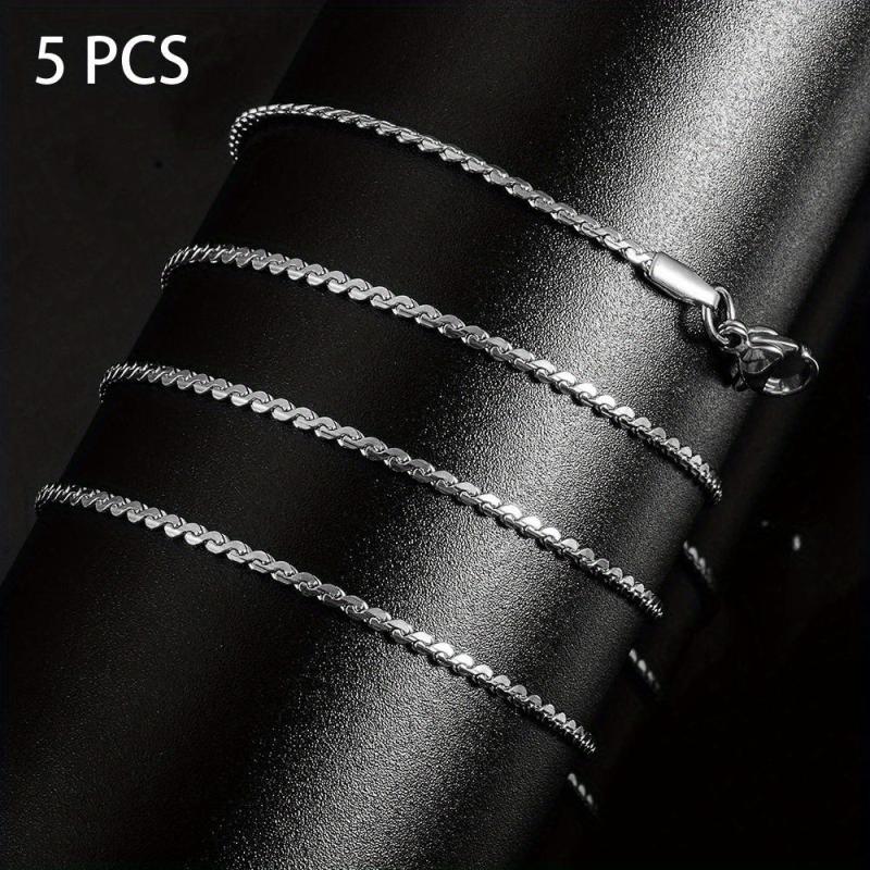 Get 5pcs of fine French style S shaped stainless steel chains without pendants. Ideal for daily wear, holidays, parties, banquets, and accessorizing.