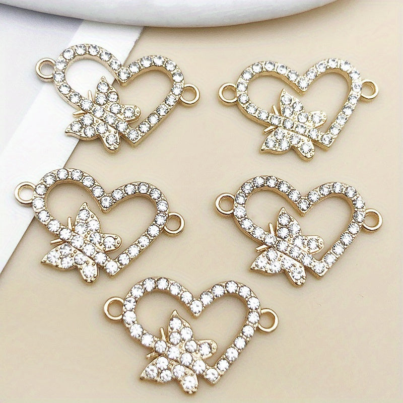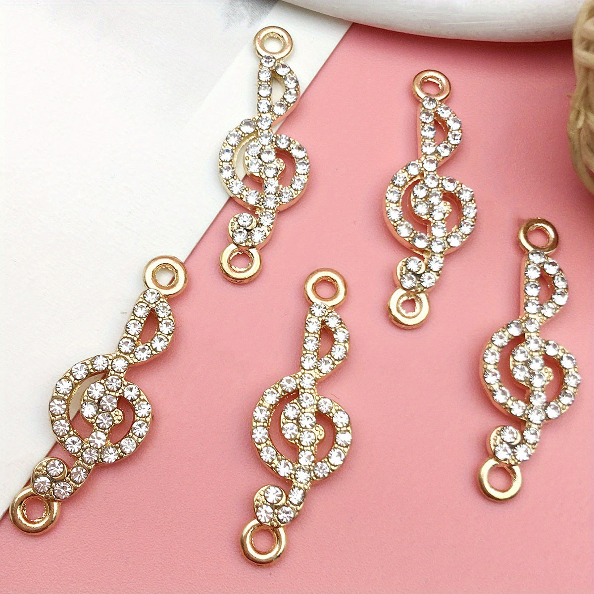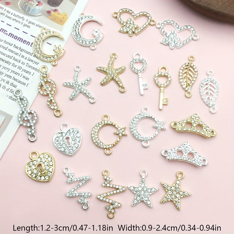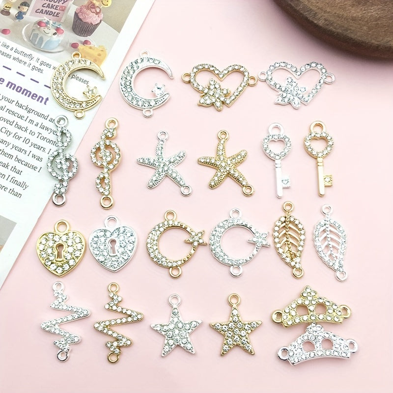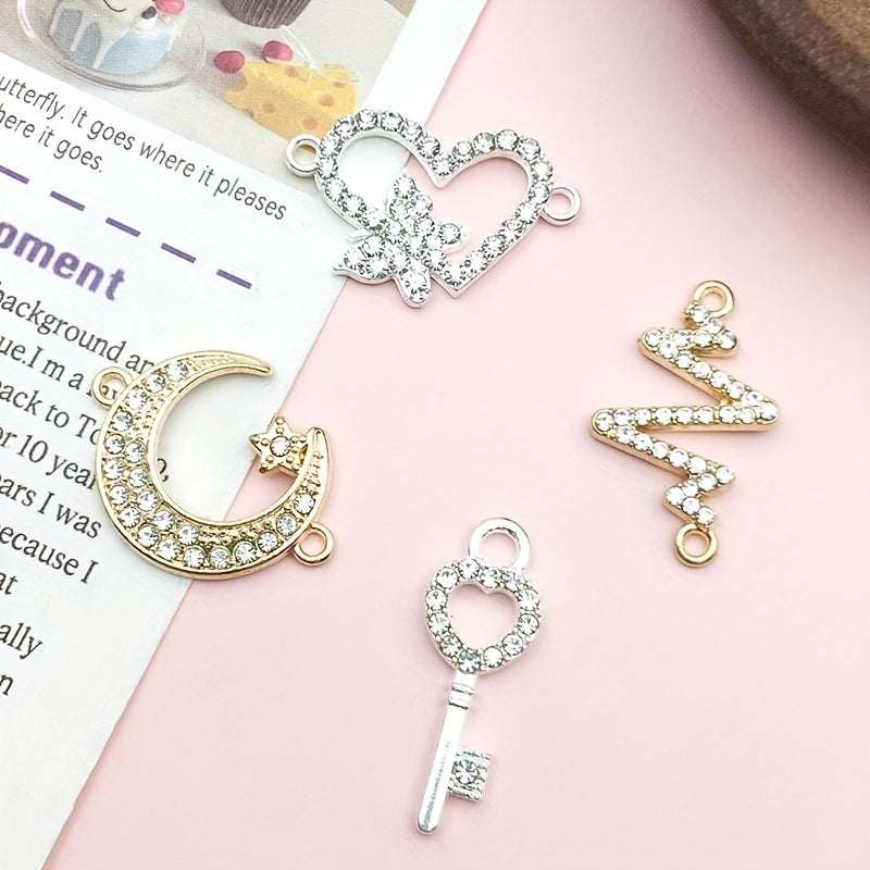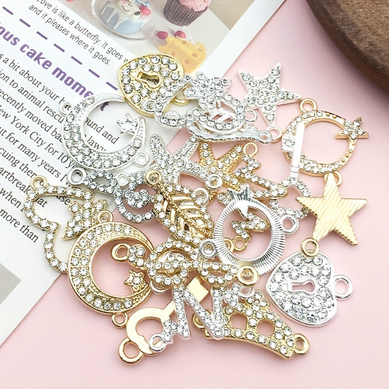 Enhance your jewelry making projects with this set of 5 assorted shaped golden pendants adorned with sparkling rhinestones. Perfect for creating earrings, bracelets, necklaces, and other accessories.