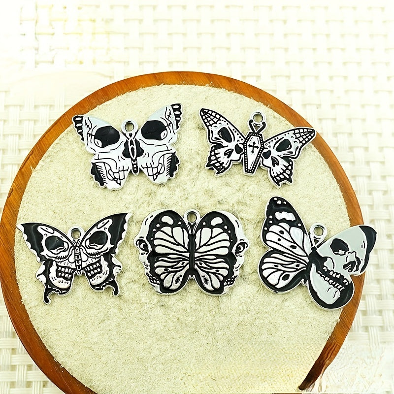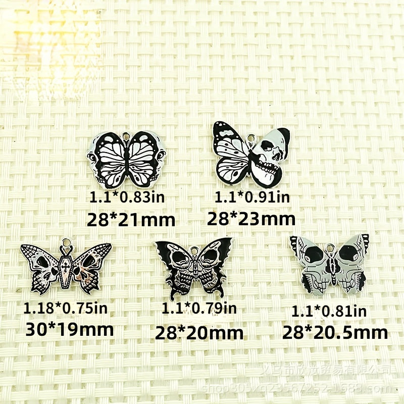 Get creative with these mixed style gothic skeleton pattern butterfly shaped pendants. Perfect for crafting bracelets, necklaces, key chains, earrings, and anklets.