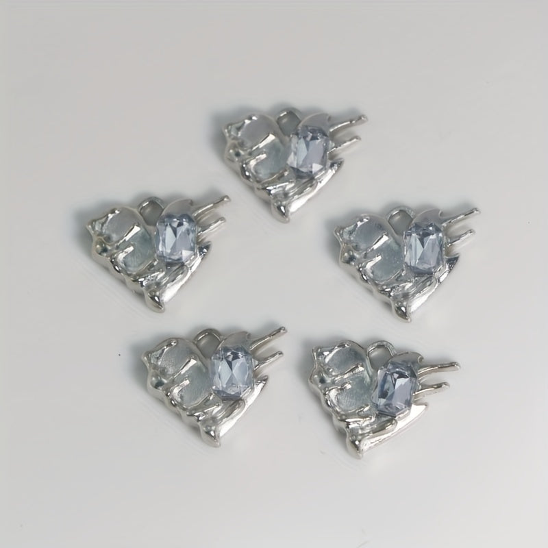 This set includes 5 heart-shaped alloy pendants that can be used for creating earrings, bracelets, necklaces, and other accessories. Perfect for DIY projects.
