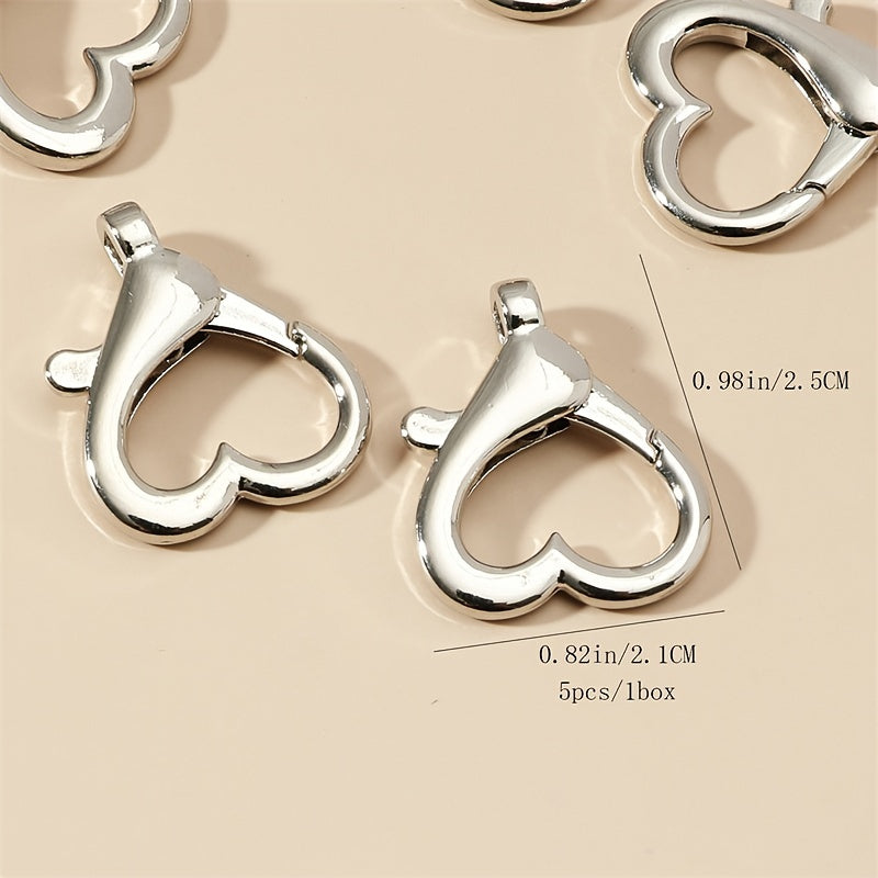 Enhance your keychain or jewelry designs with this pack of 5 heart shaped clasps. Made of high quality materials, these clasps are durable and easy to use.