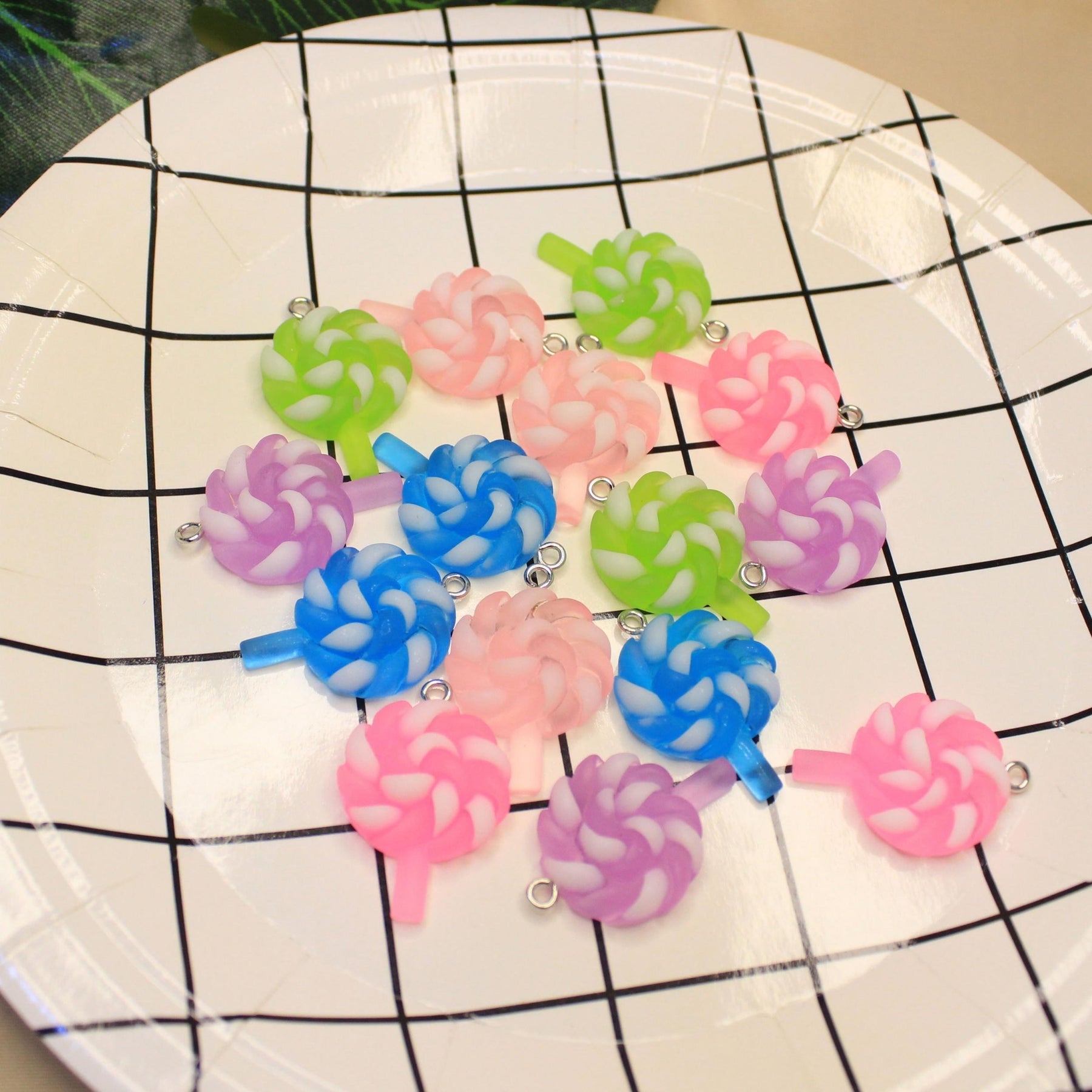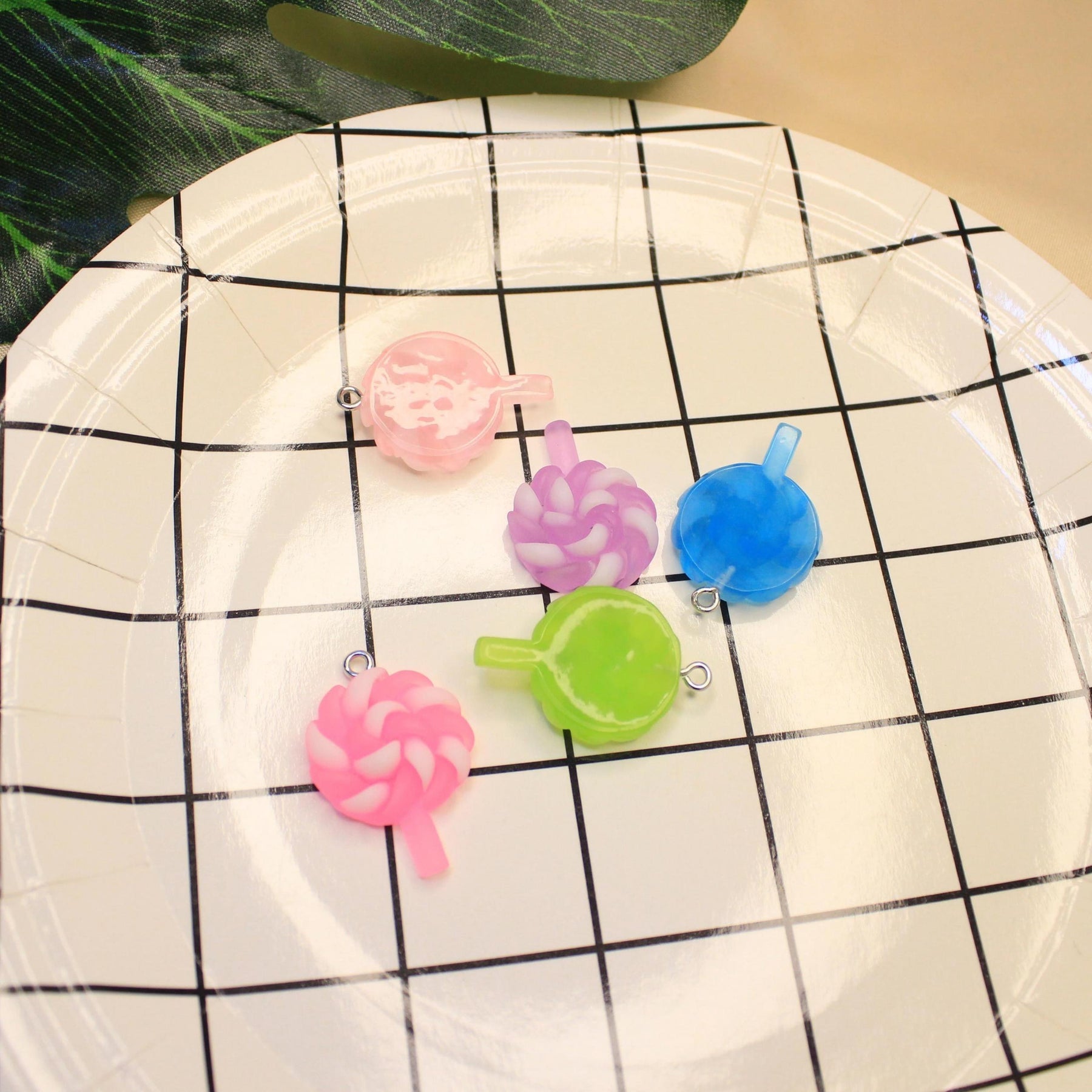 Get creative with these colorful lollipop resin pendants that glow in the dark. Perfect for crafting bracelets, earrings, necklaces, and keychains.