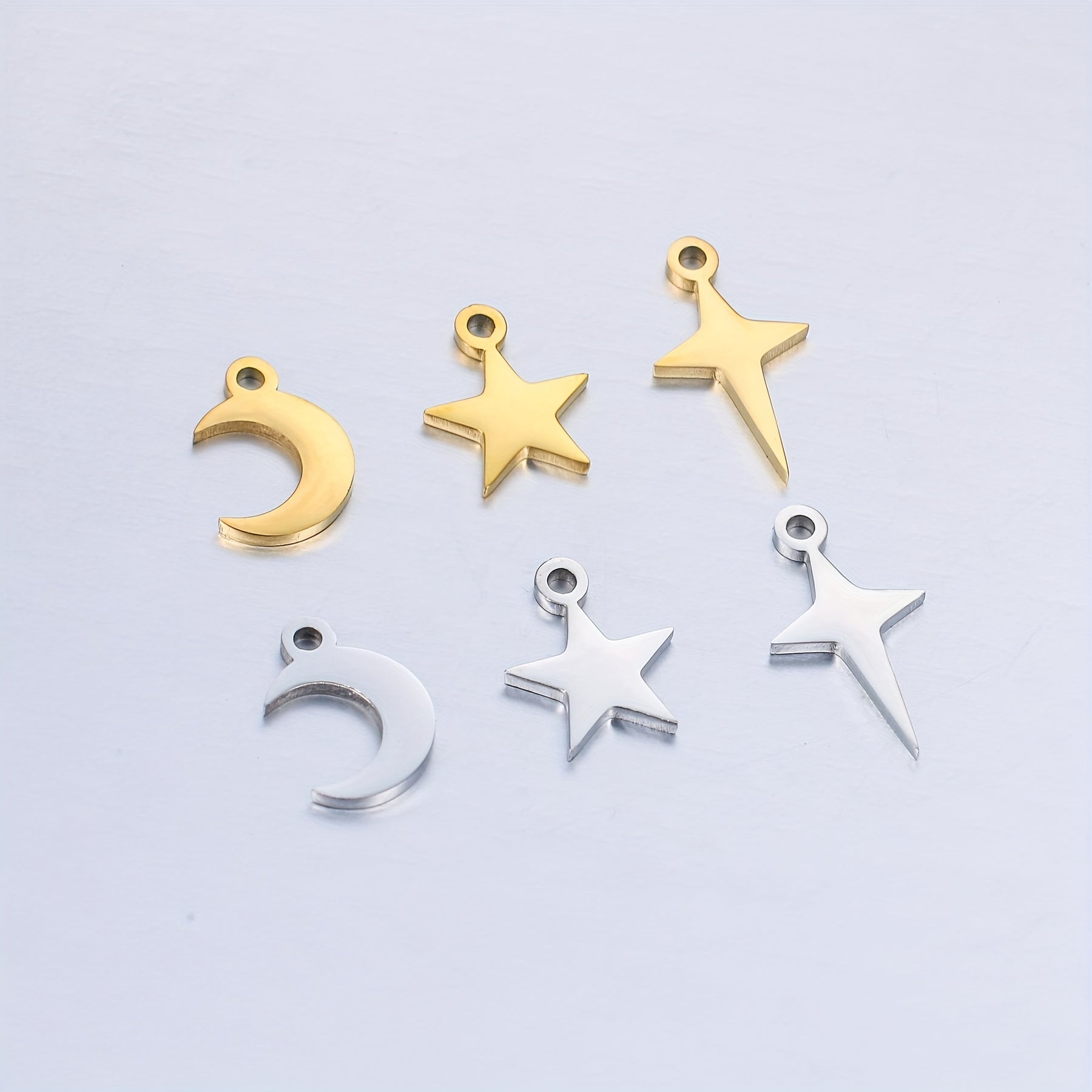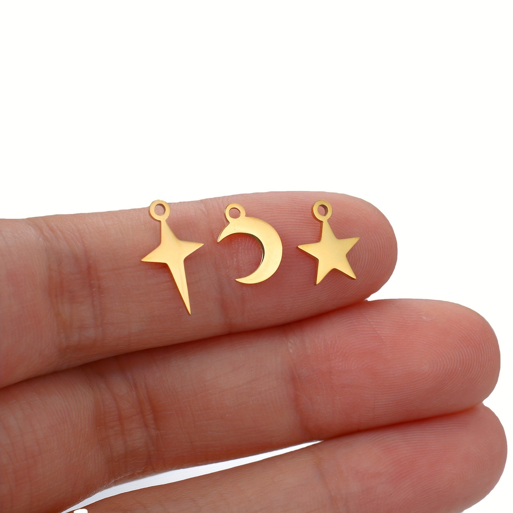 This set includes 5 stainless steel mini star and moon charms, perfect for DIY jewelry making projects. Each charm is durable and high-quality.