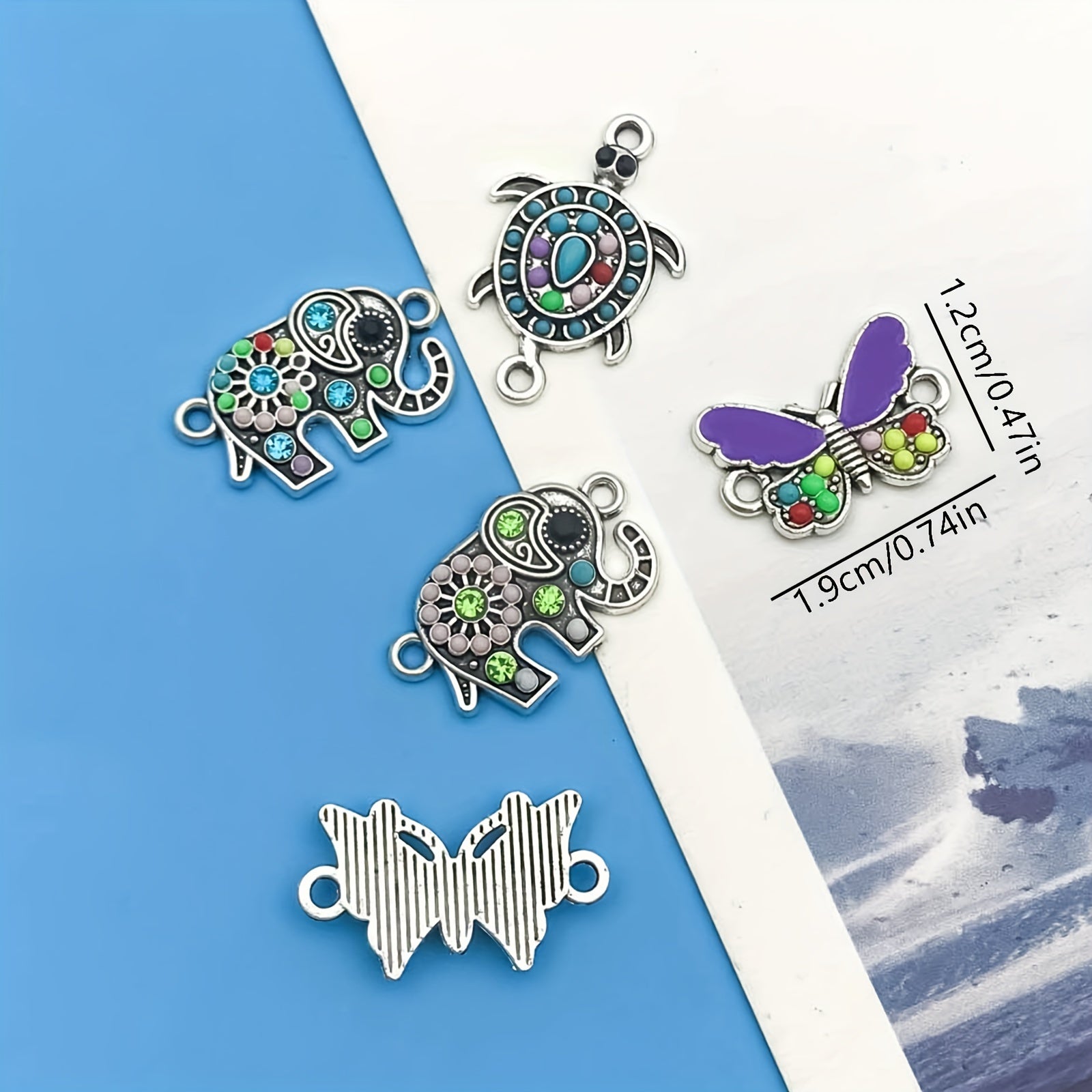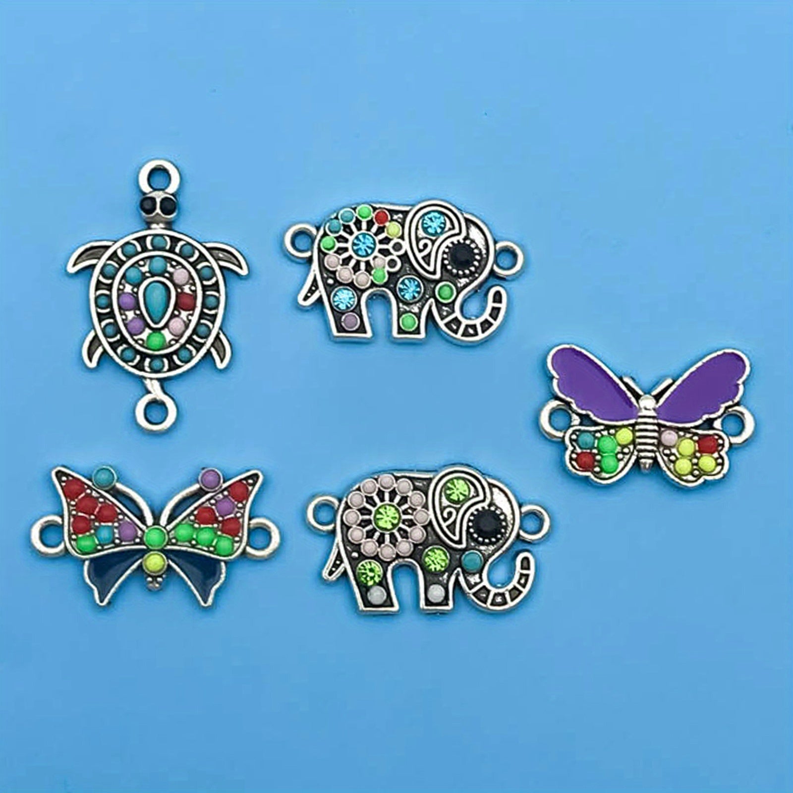 This set includes 5pcs of alloy pendants in turtle, elephant, butterfly, and owl shapes. Perfect for crafting unique jewelry pieces.