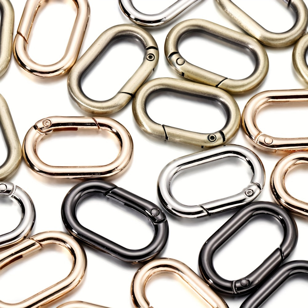 These oval spring snap clip trigger spring keyring buckles are perfect for attaching to bags, purses, and keychains. Made of durable material, they ensure secure and reliable usage.