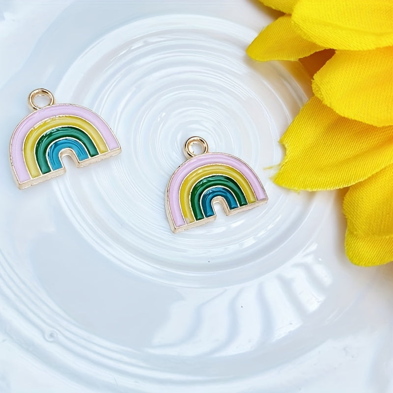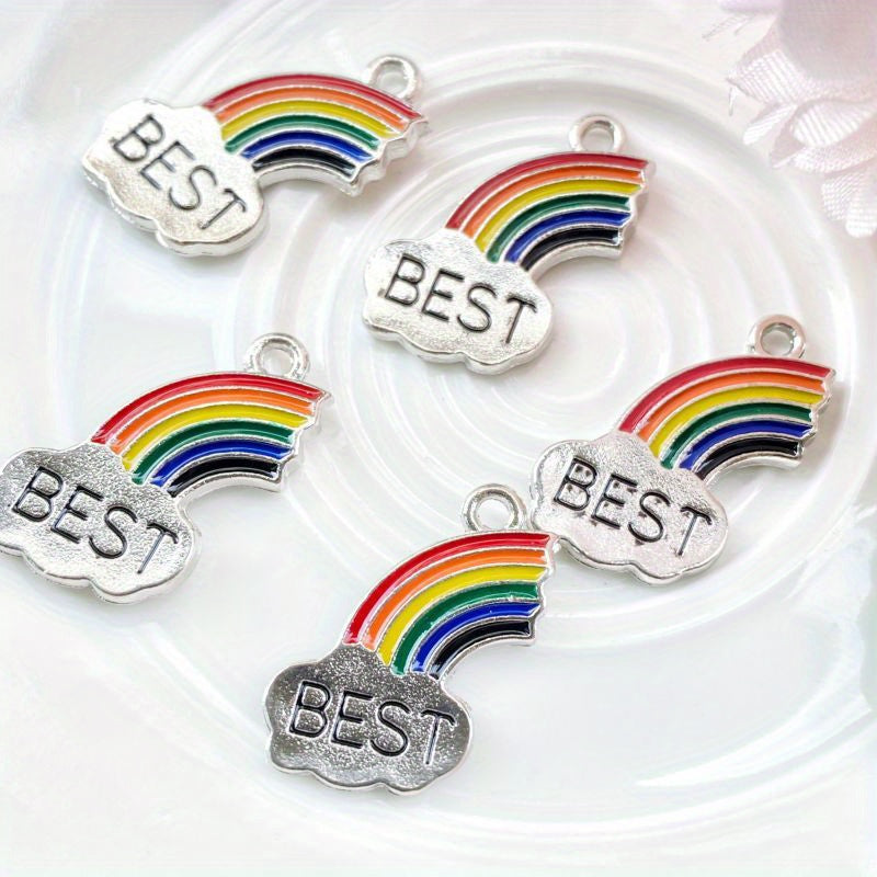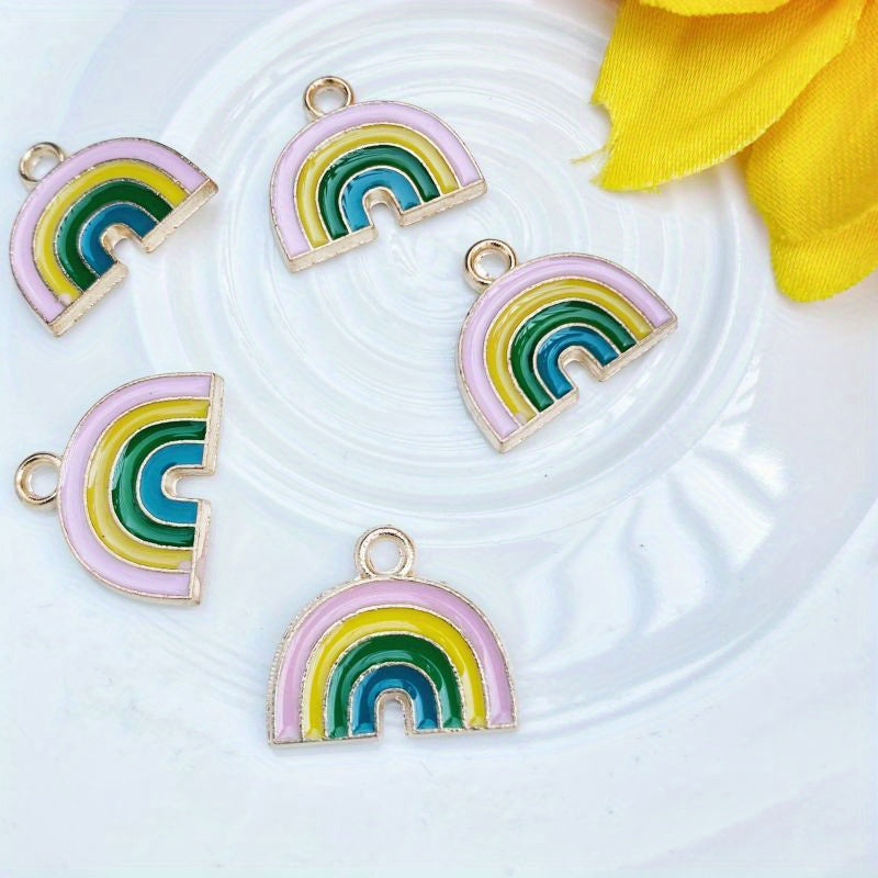 Add a colorful touch to your DIY jewelry projects with these 5pcs Rainbow Alloy Pendants. Perfect for creating unique necklaces, bracelets, and more.