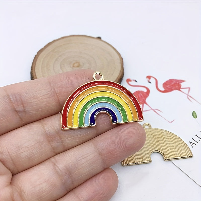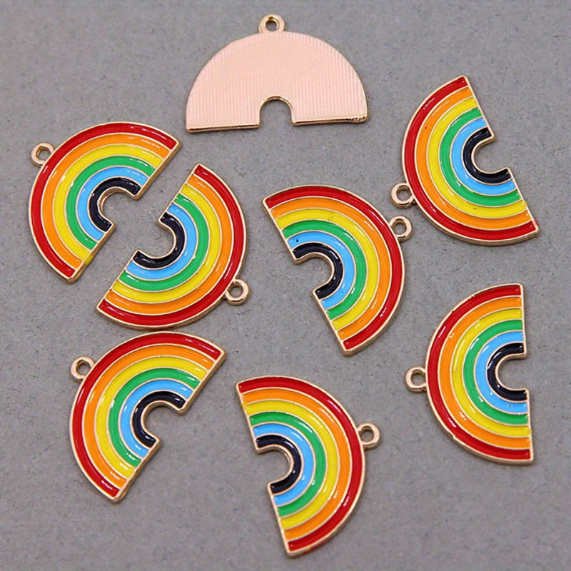 These colorful rainbow enamel pendants are perfect for making your own jewelry, such as earrings and necklaces. The silver and golden alloy charms add a touch of elegance to your accessories.