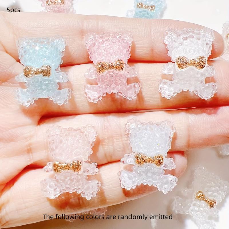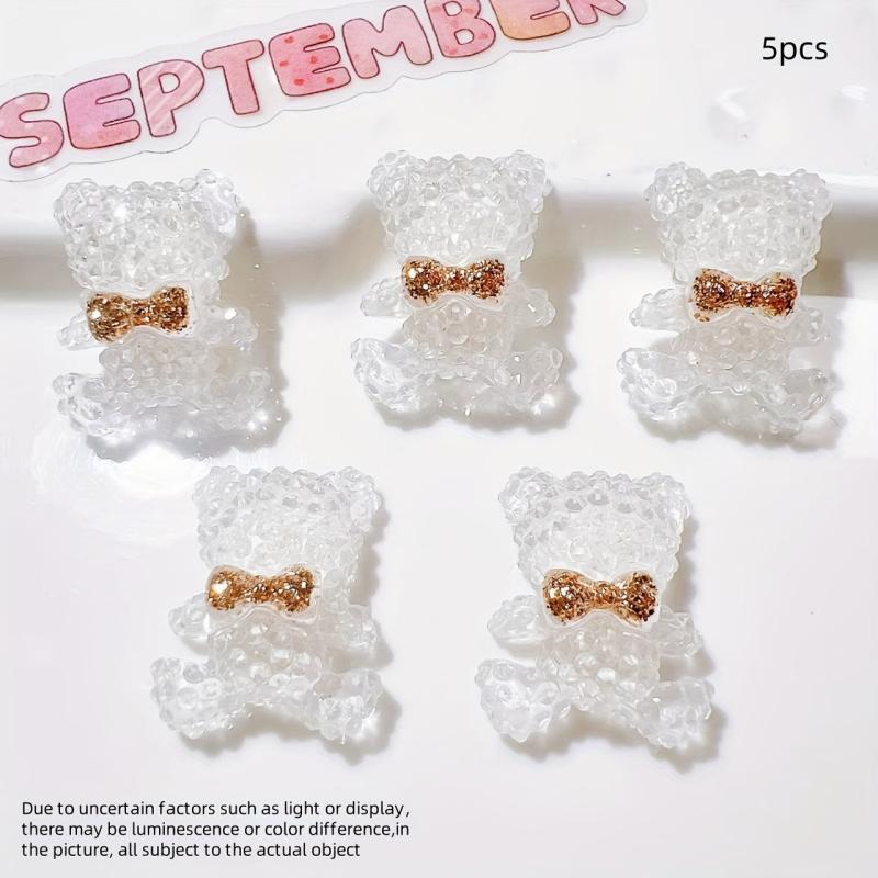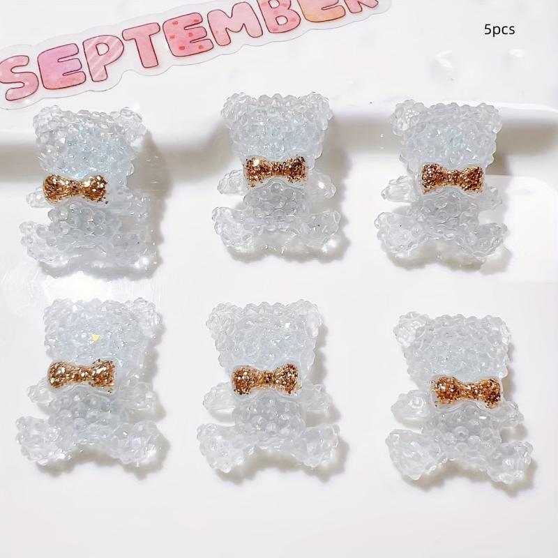 These 5pcs resin bear earrings are perfect for DIY craft projects. They come with cream glue, flower, and bow designs, ideal for shoe jewelry making and as Valentine's & Christmas accessories for jewelry making.