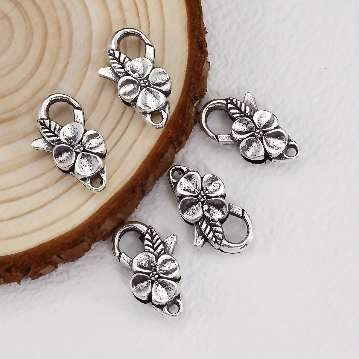 Add a touch of retro charm to your jewelry creations with these flower-shaped silver pendants. Perfect for DIY projects.
