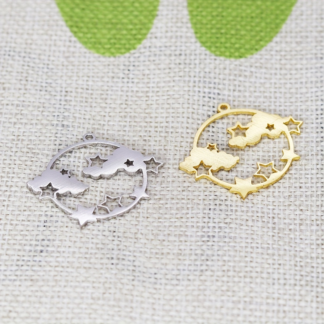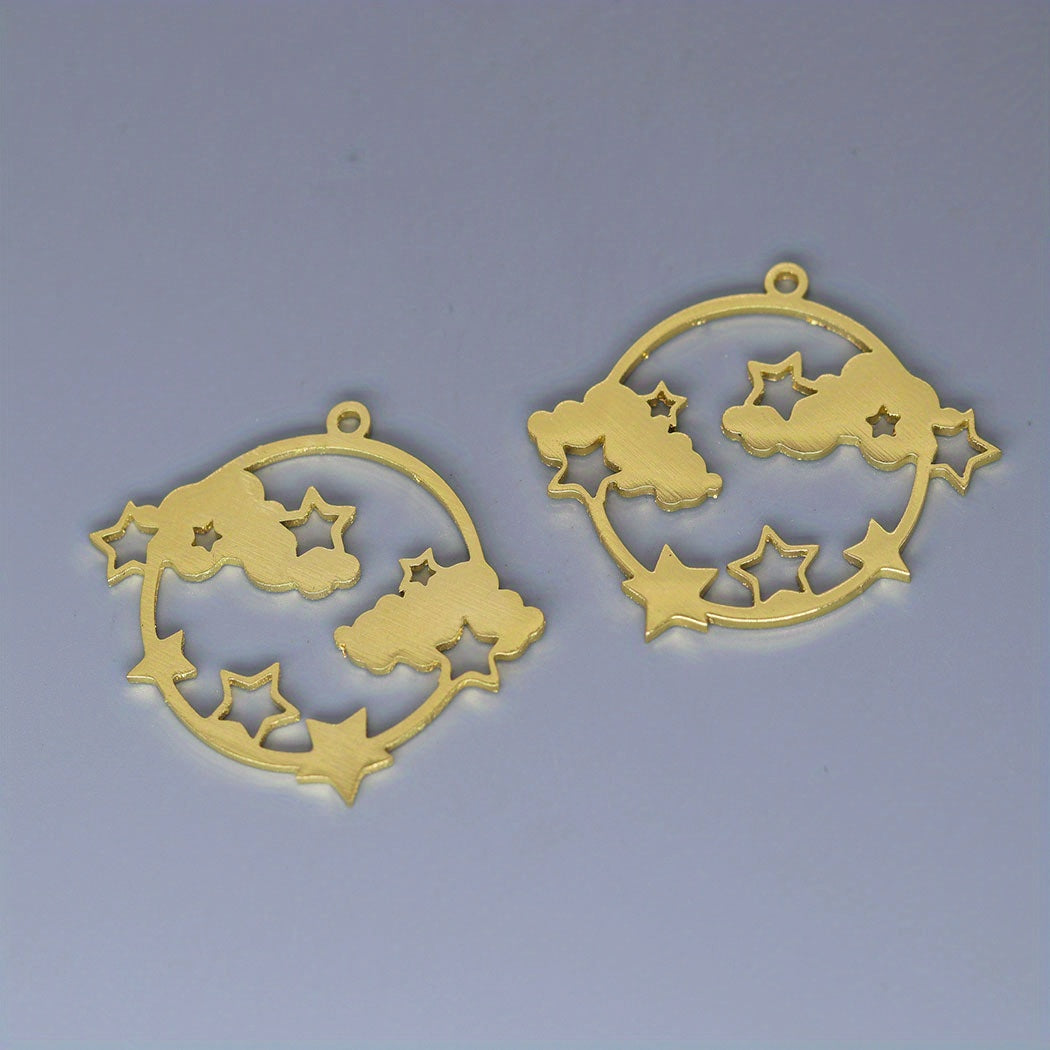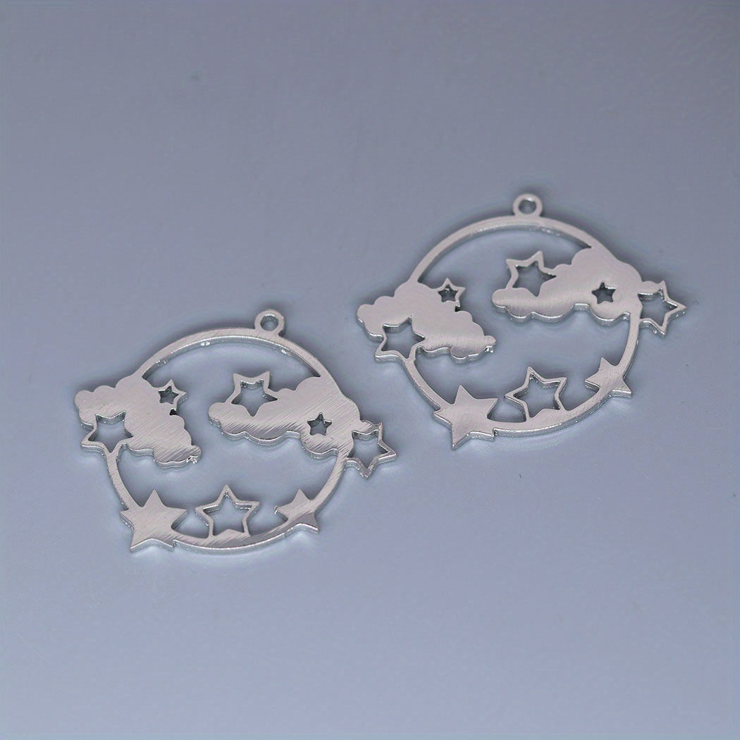 5pcs Round Sky Cloud Stars Charm Pendant For Jewelry Making