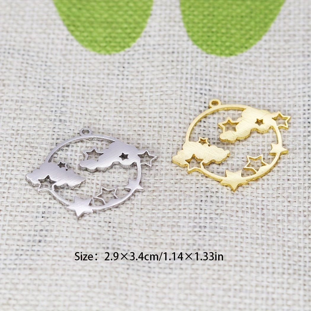 This set includes 5 round sky cloud stars charm pendants suitable for necklaces, bracelets, and various crafts making. Add a celestial touch to your jewelry projects.