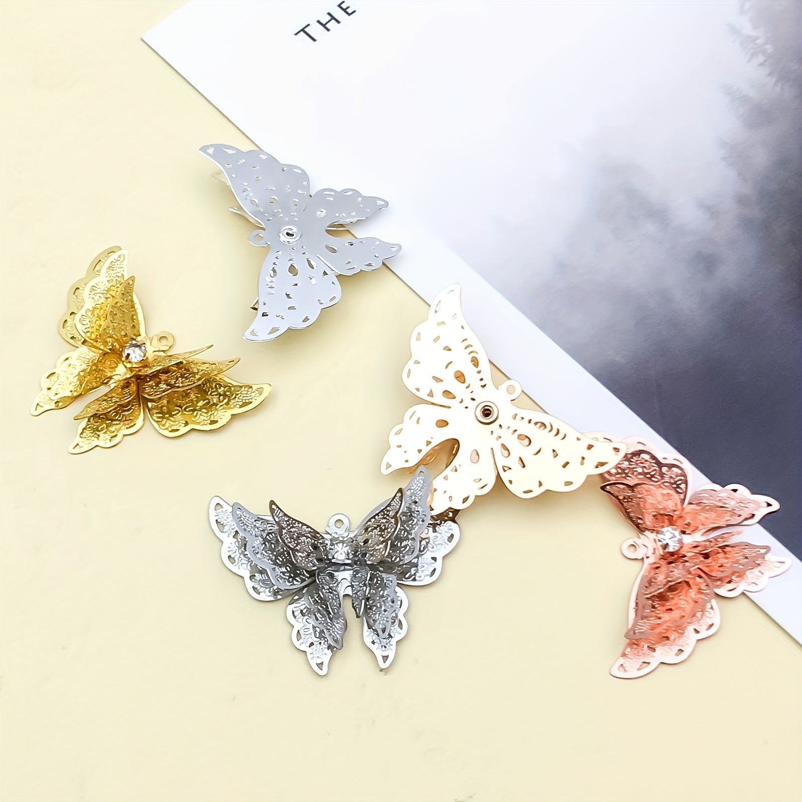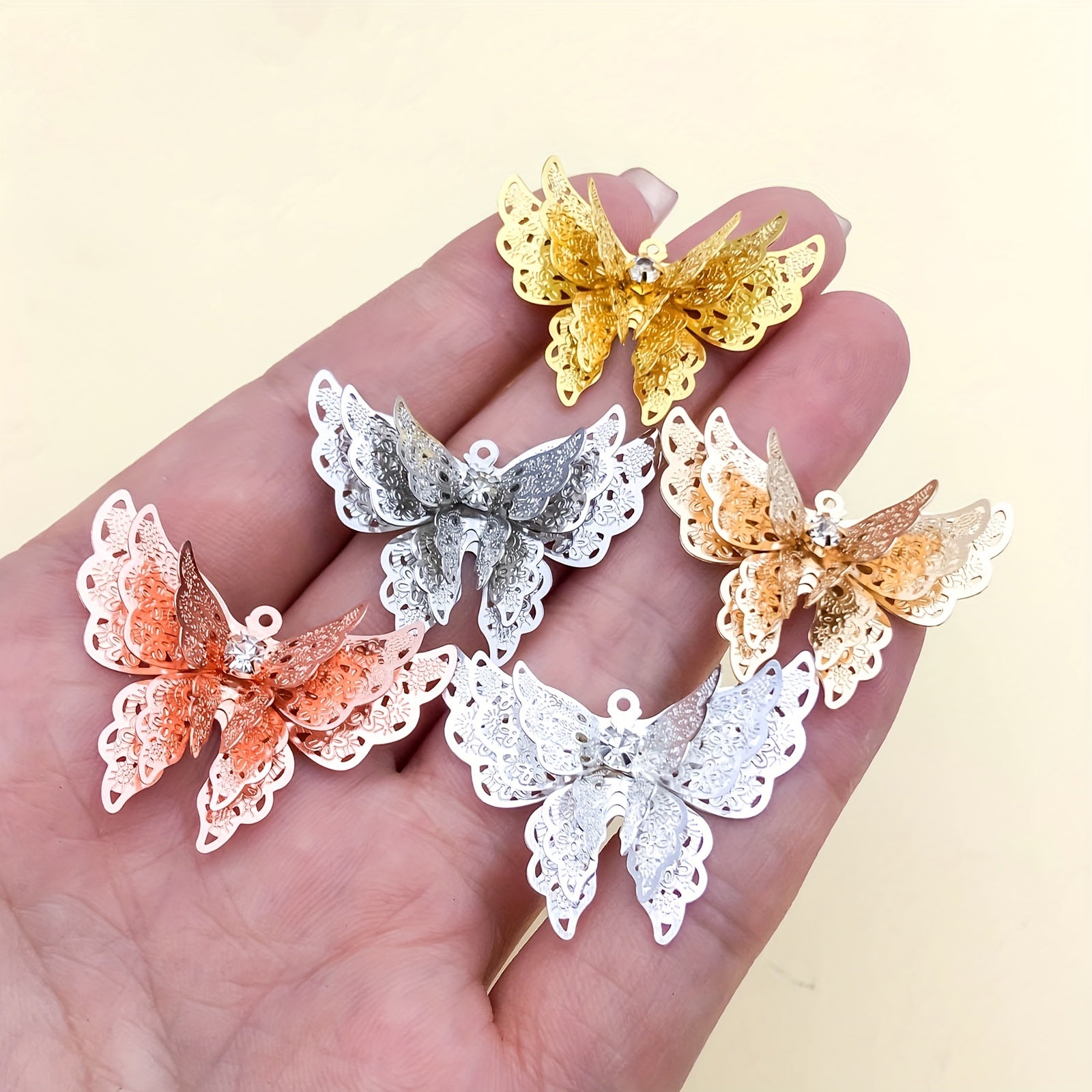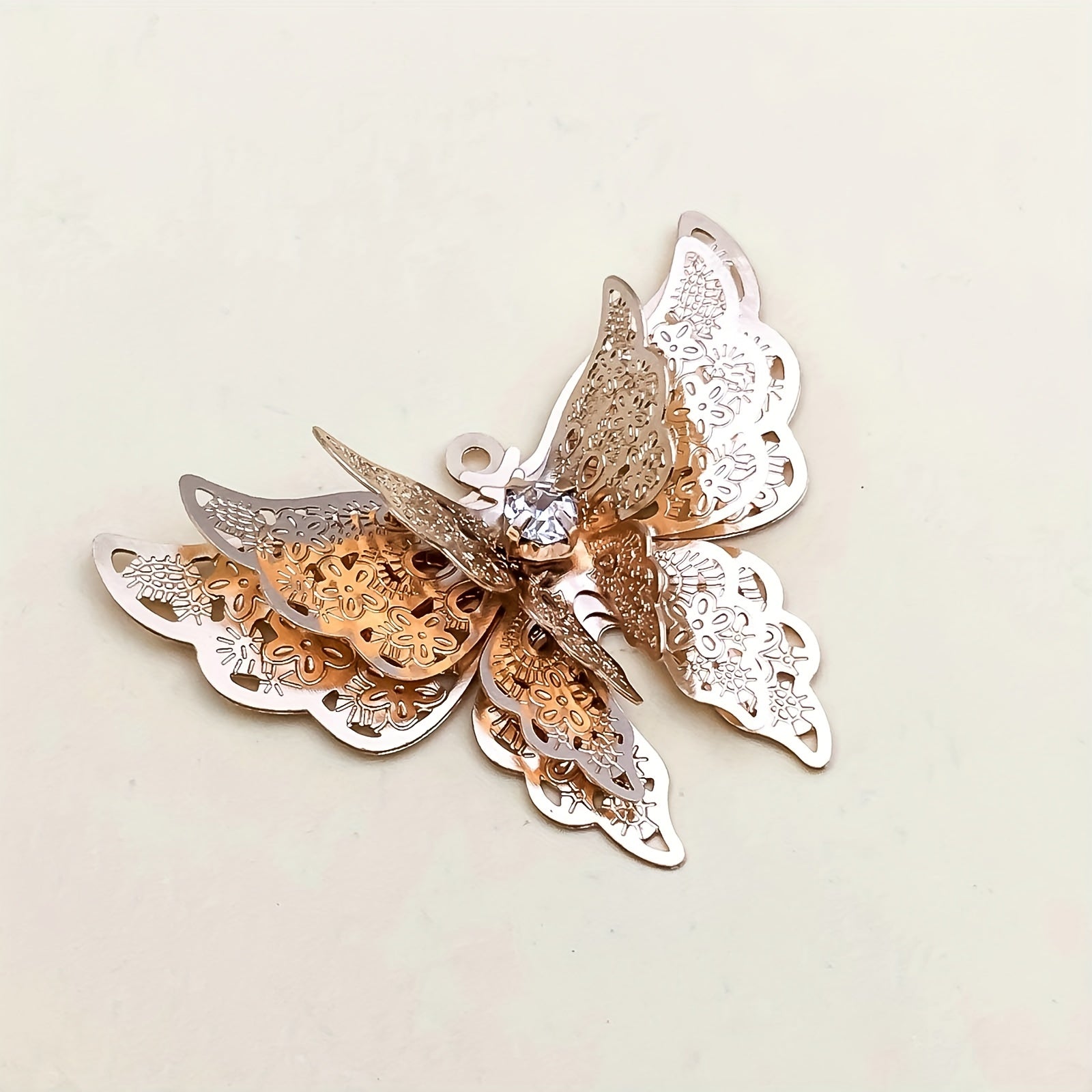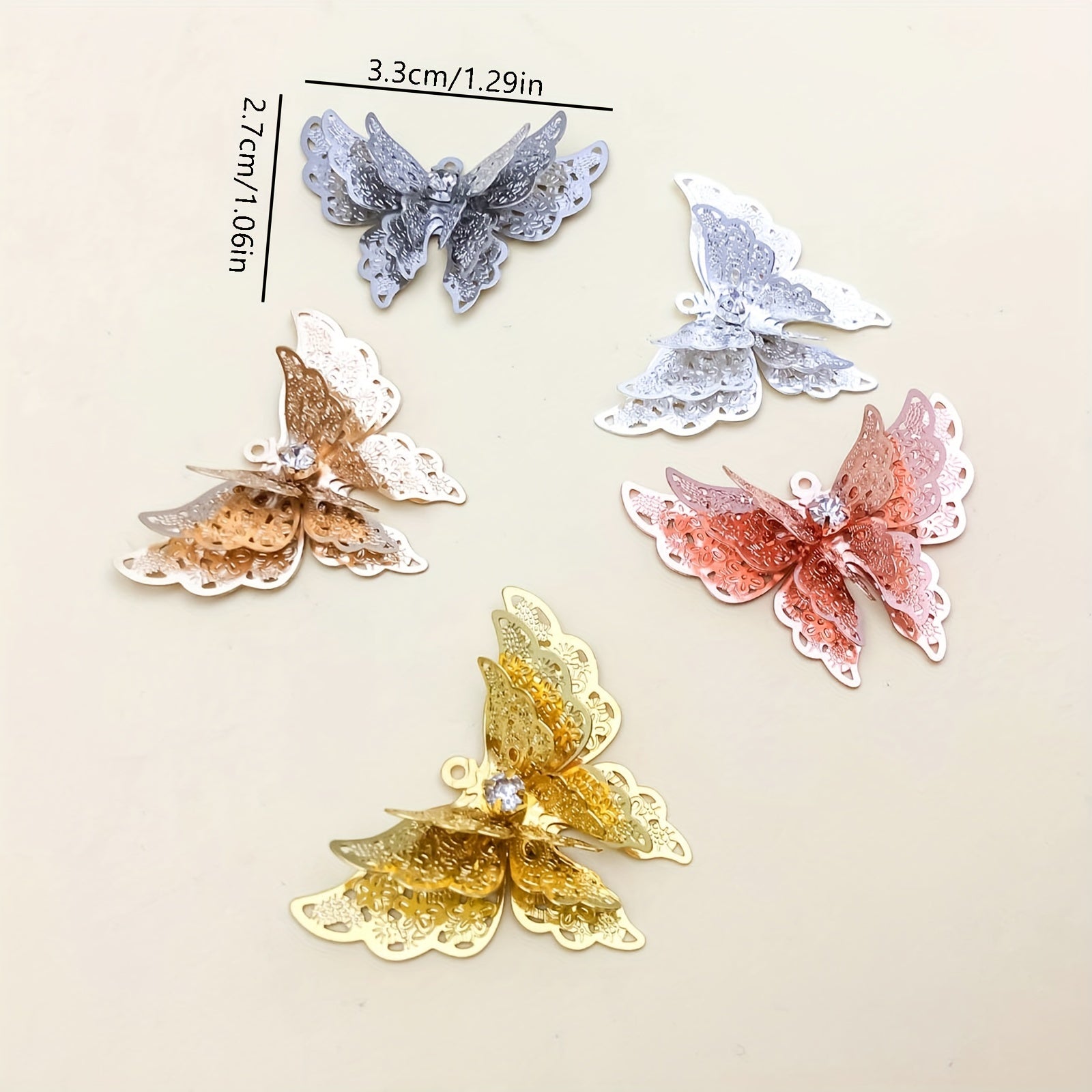 Add a touch of elegance to your jewelry creations with this 5pcs set of copper plated three-dimensional butterfly hairpin pendants. Perfect for making necklaces, bracelets, and earrings.