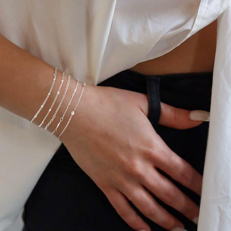 Make a fashion statement with this 5-piece bracelet set designed for women. The minimalist design and copper material create a stylish look that complements any outfit. These bracelets are allergy-free and perfect for everyday wear.