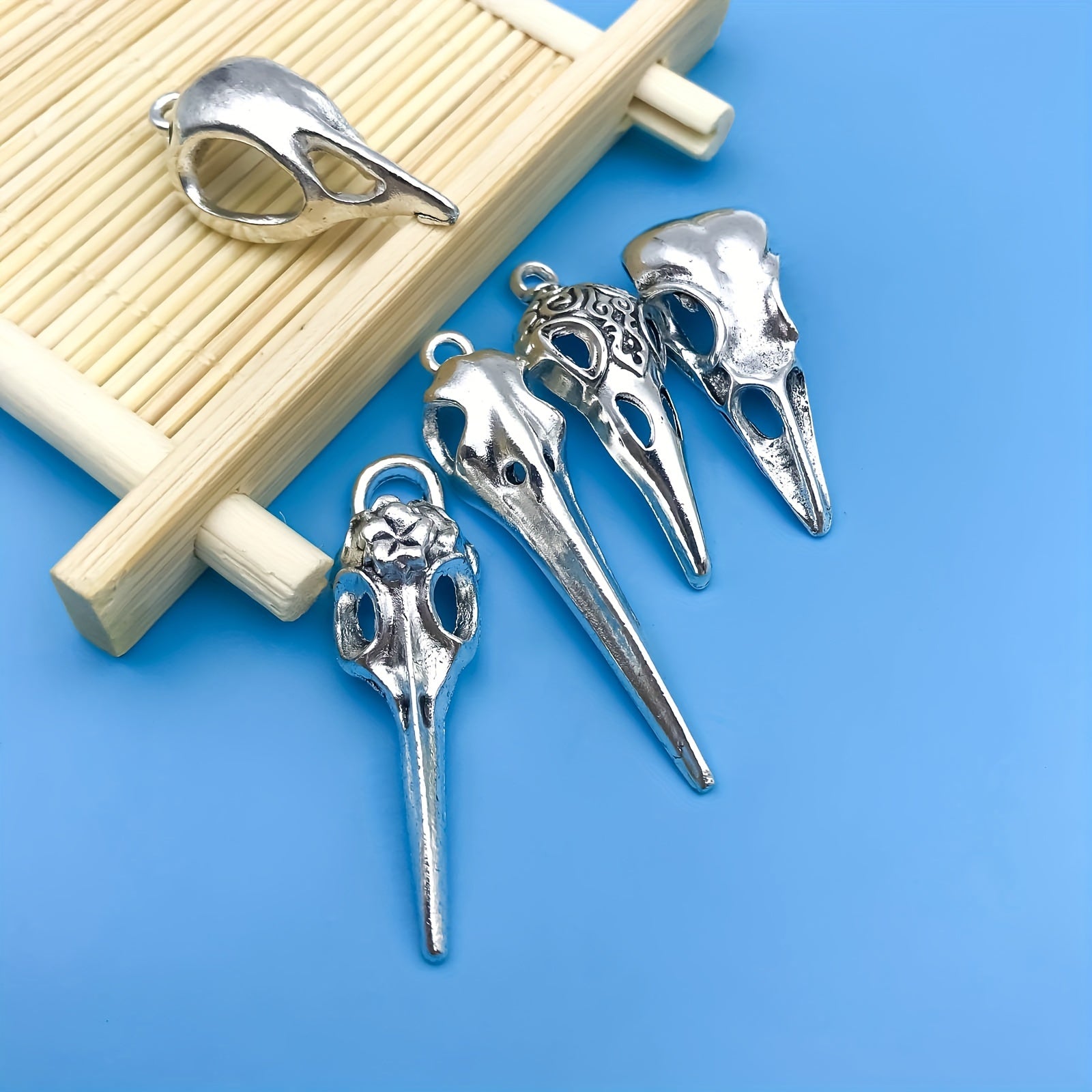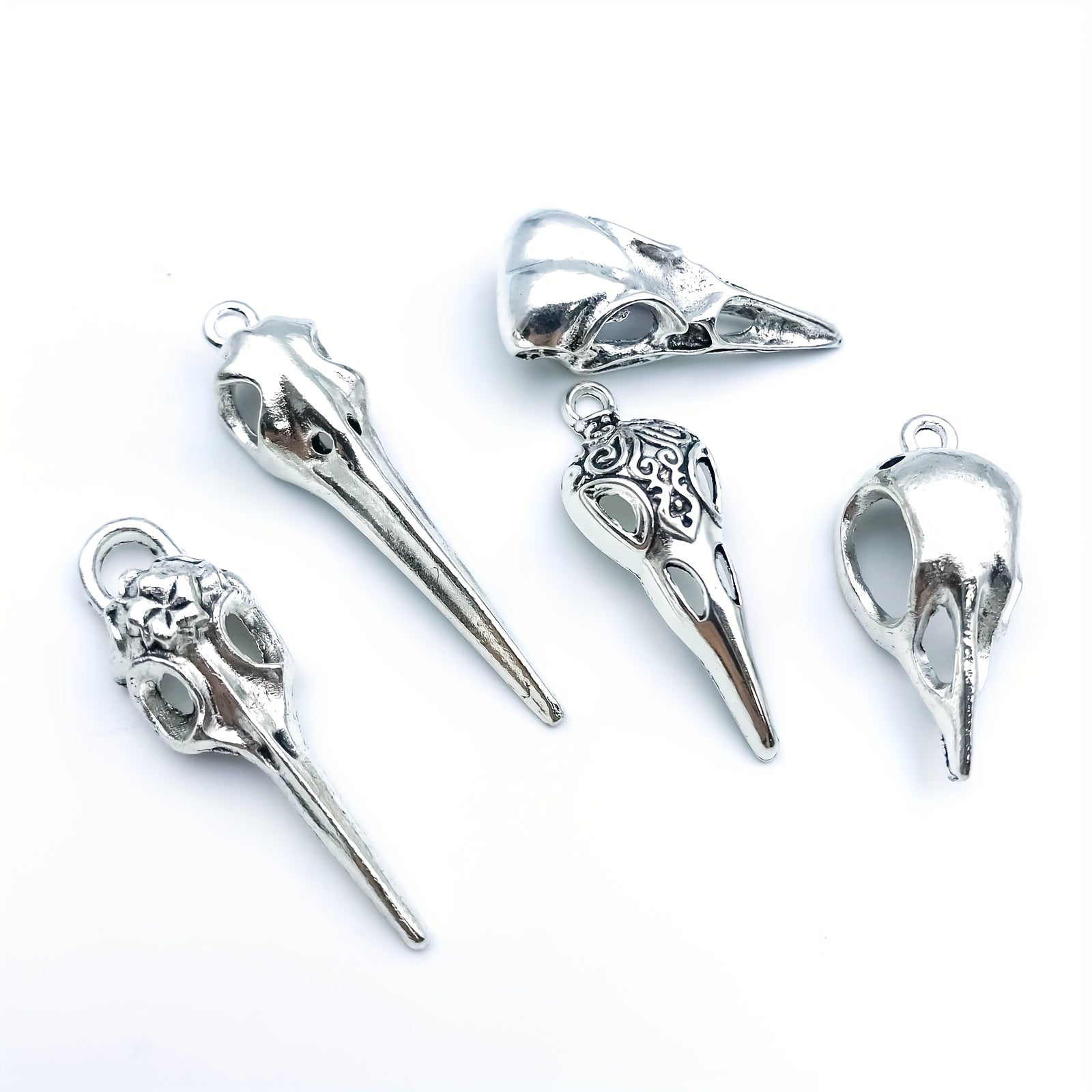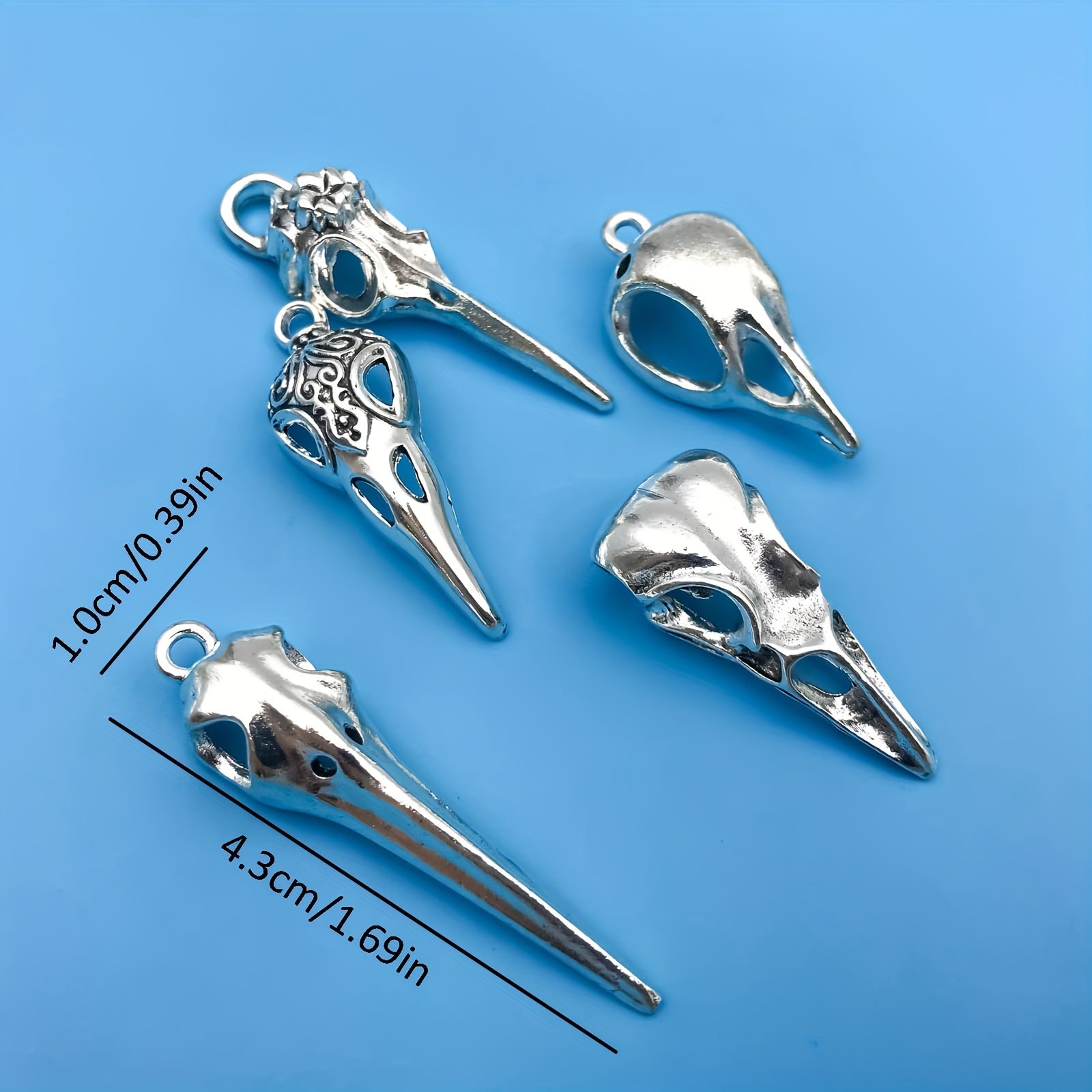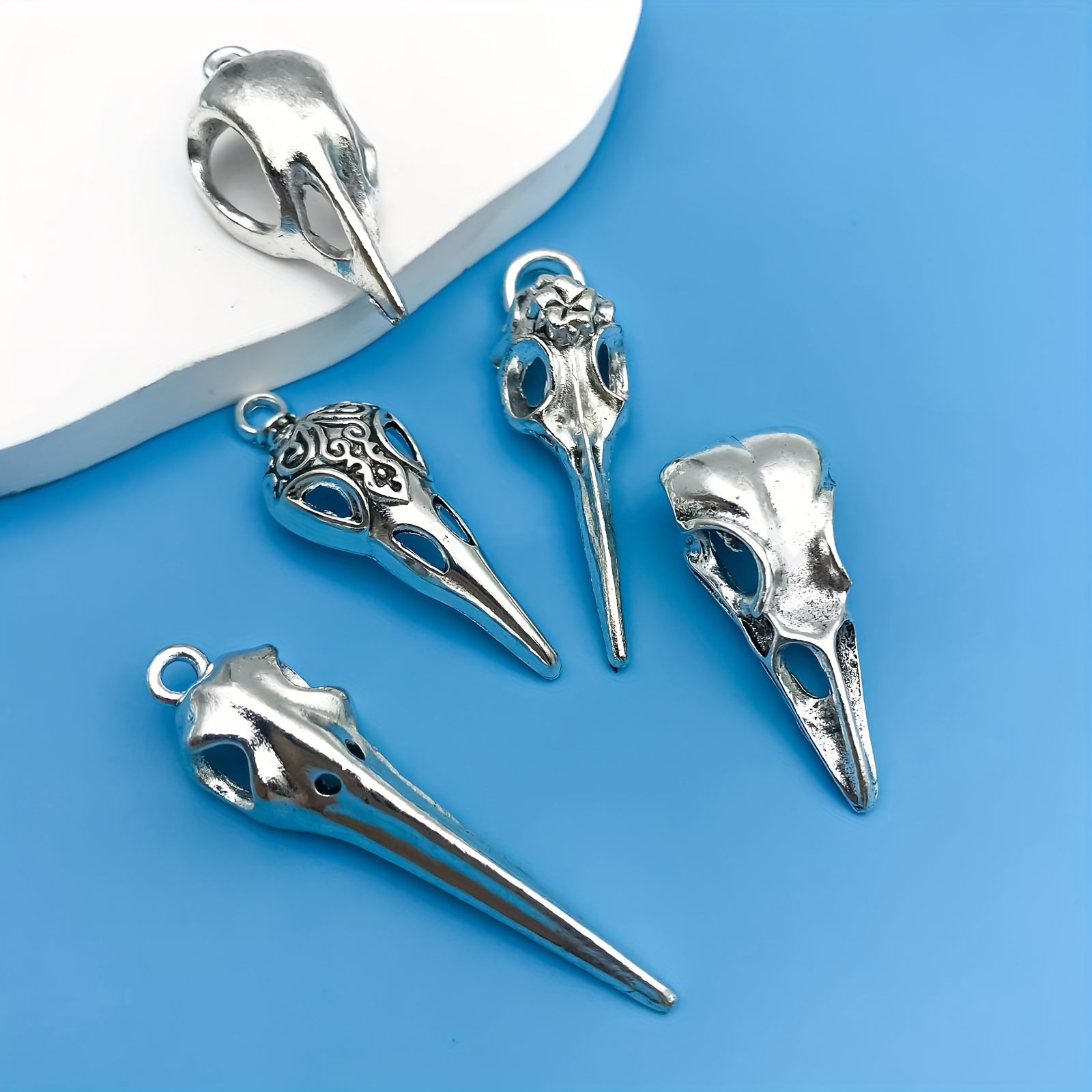 This set includes 5 zinc alloy antique silver bird head shaped charms pendants ideal for creating necklaces, bracelets, and earrings. Perfect for DIY jewelry projects.