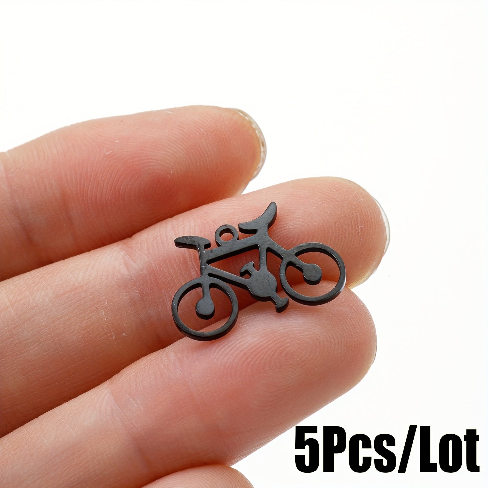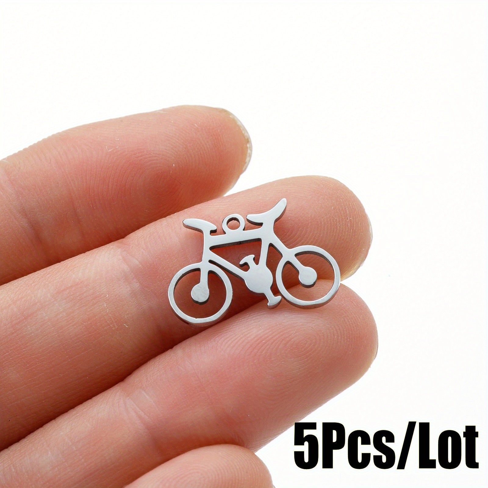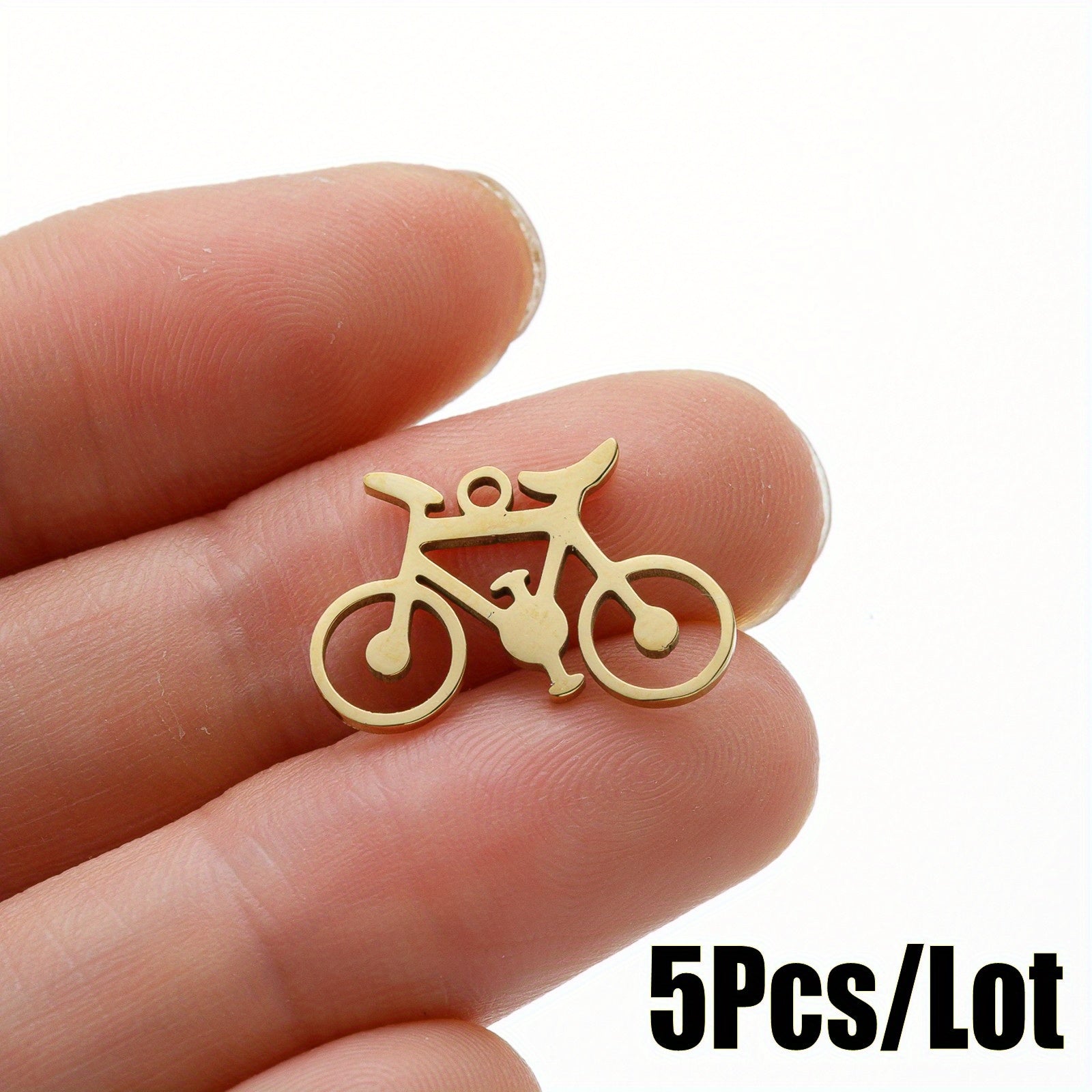 Get creative with these 5pcs silver and gold hollow bike pendants made from stainless steel. Perfect for earrings, bracelets, necklaces, and more.